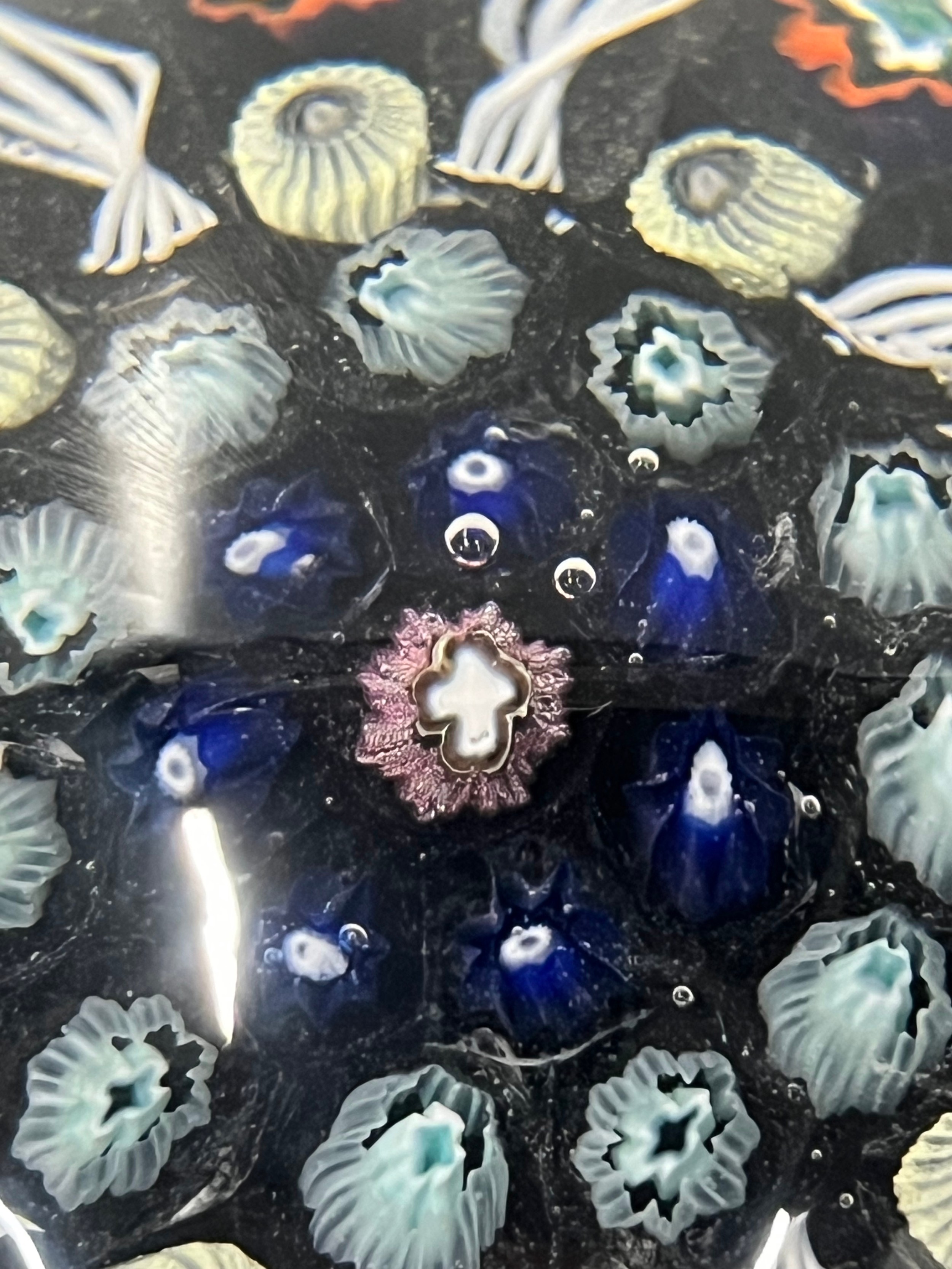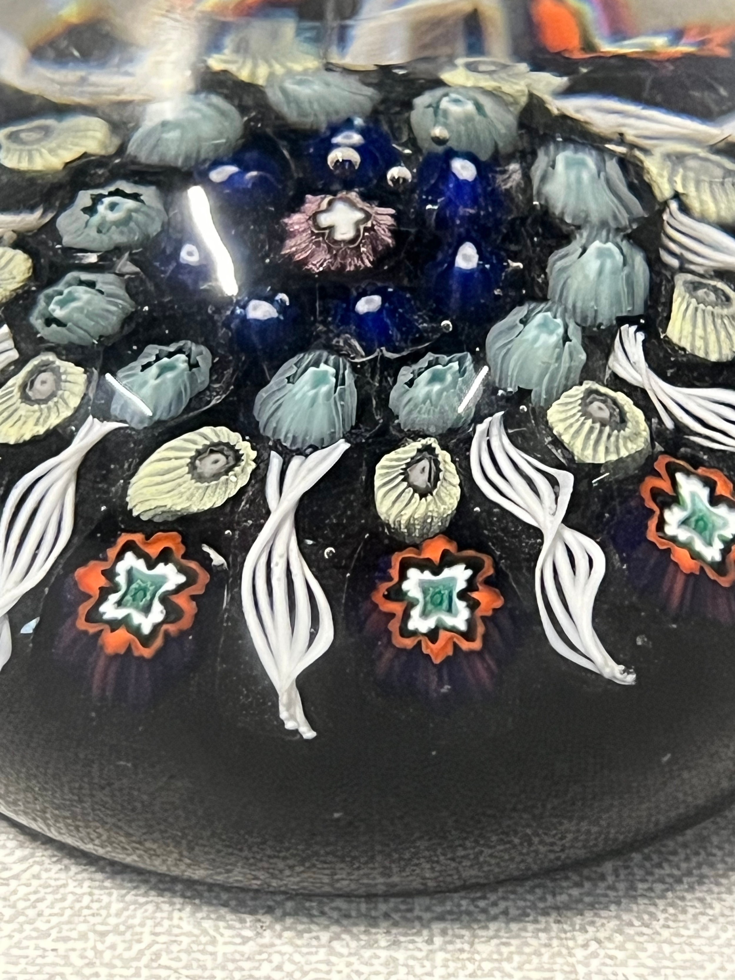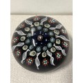 Perthshire paperweight or possibly Paul Ysart featuring radial millefiori cane design with cross in centre.