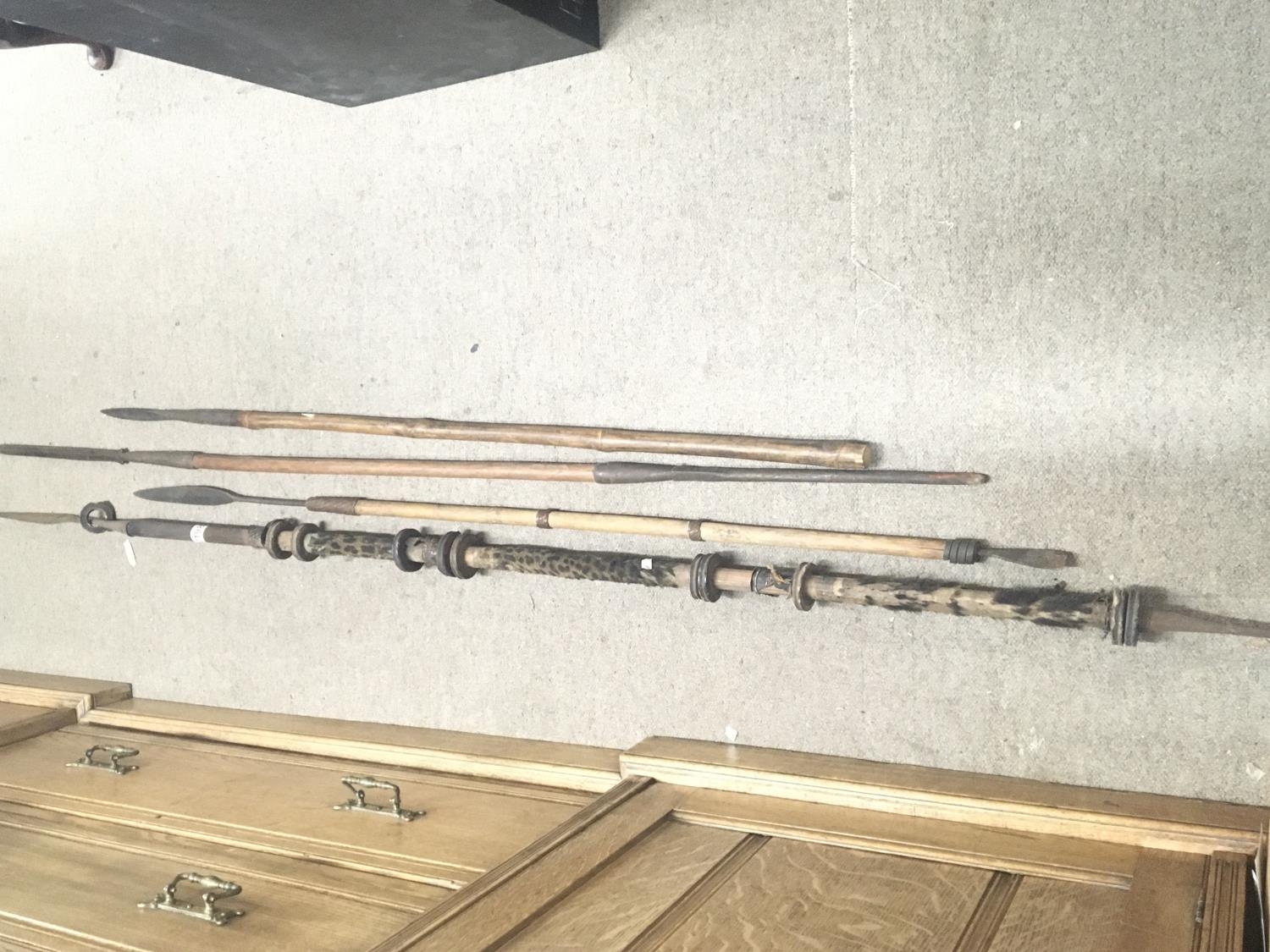 An old Maasai lion spear and other old tribal spears