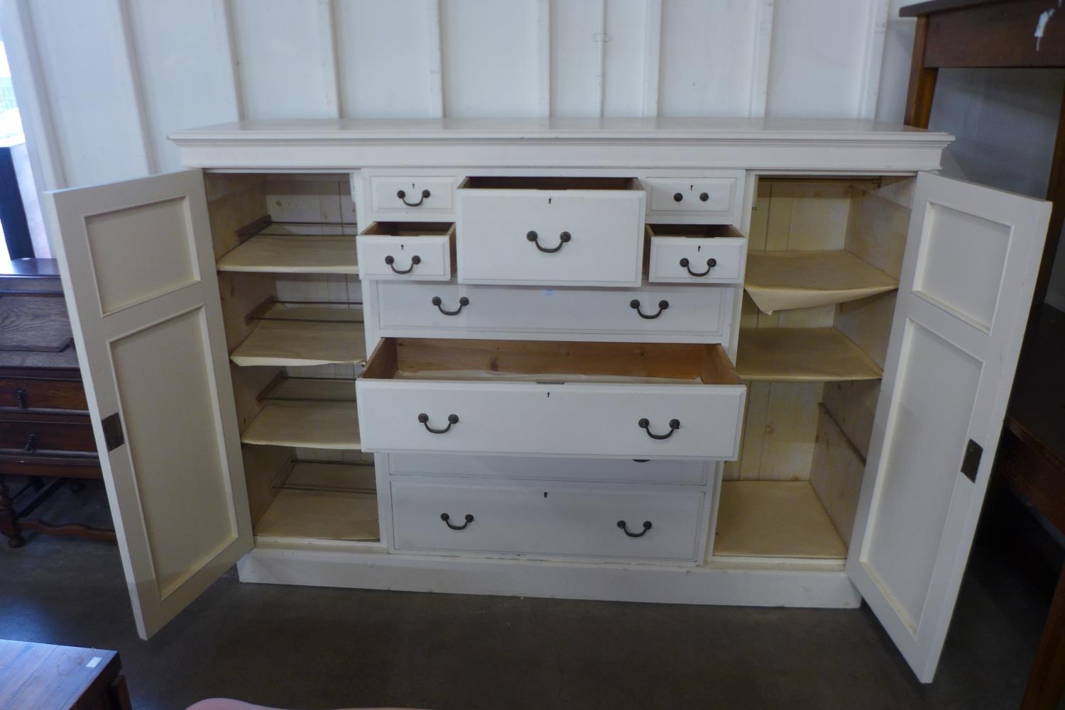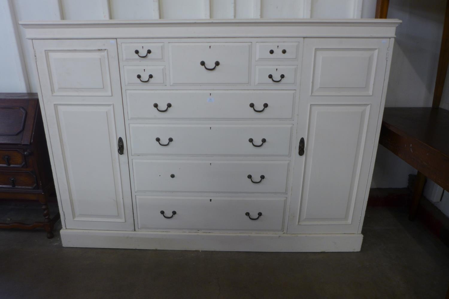 A Victorian style painted pine low wardrobe