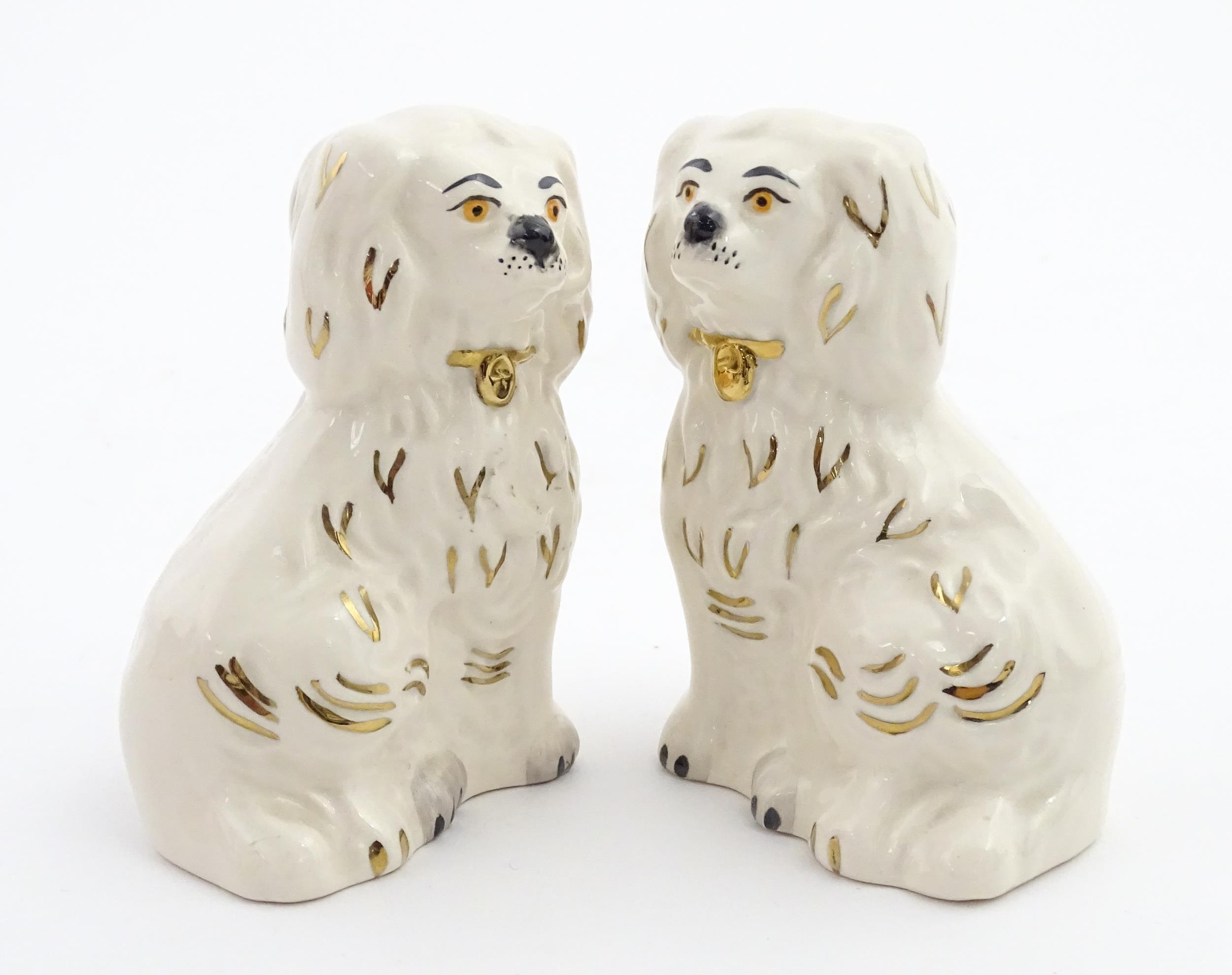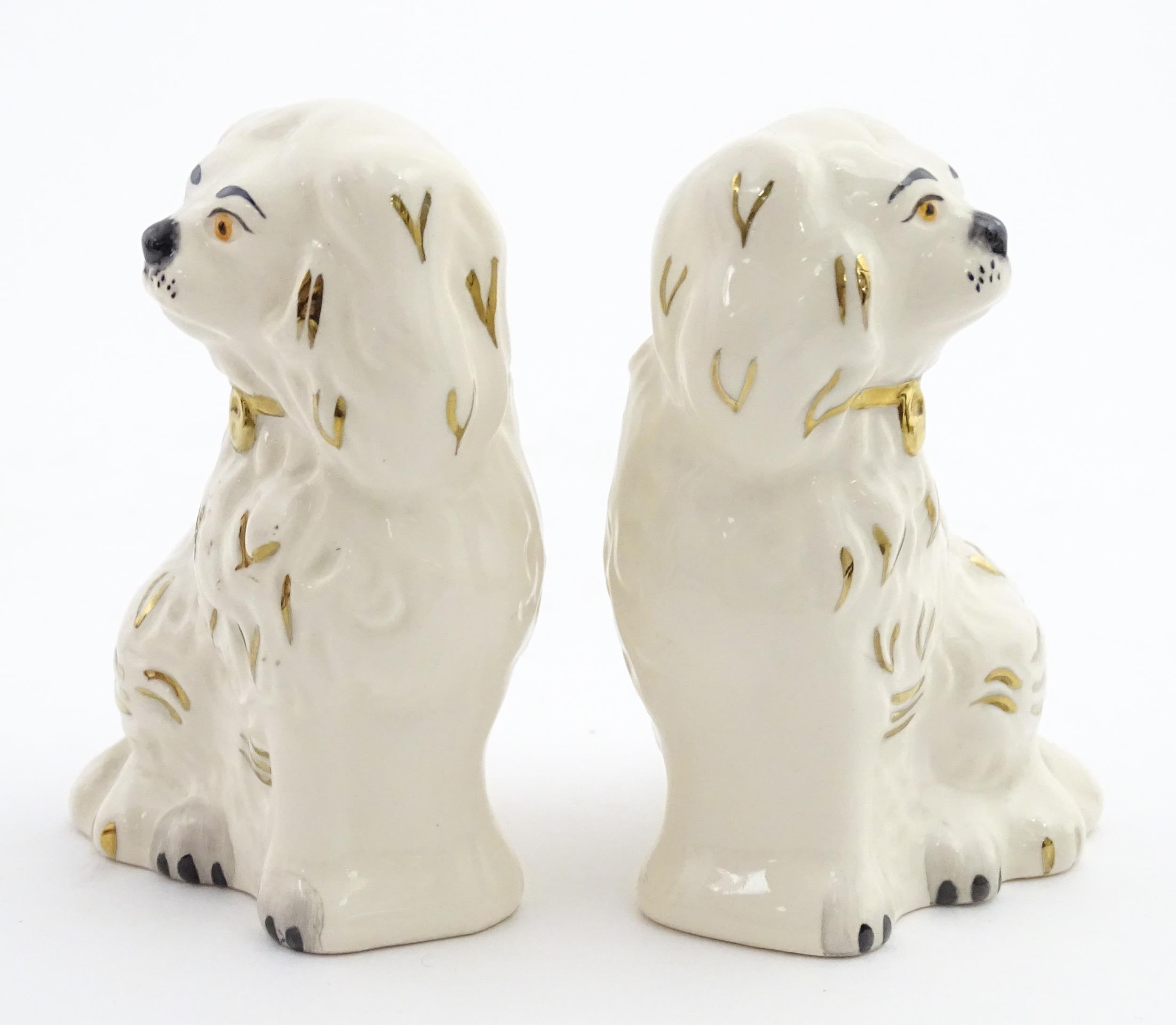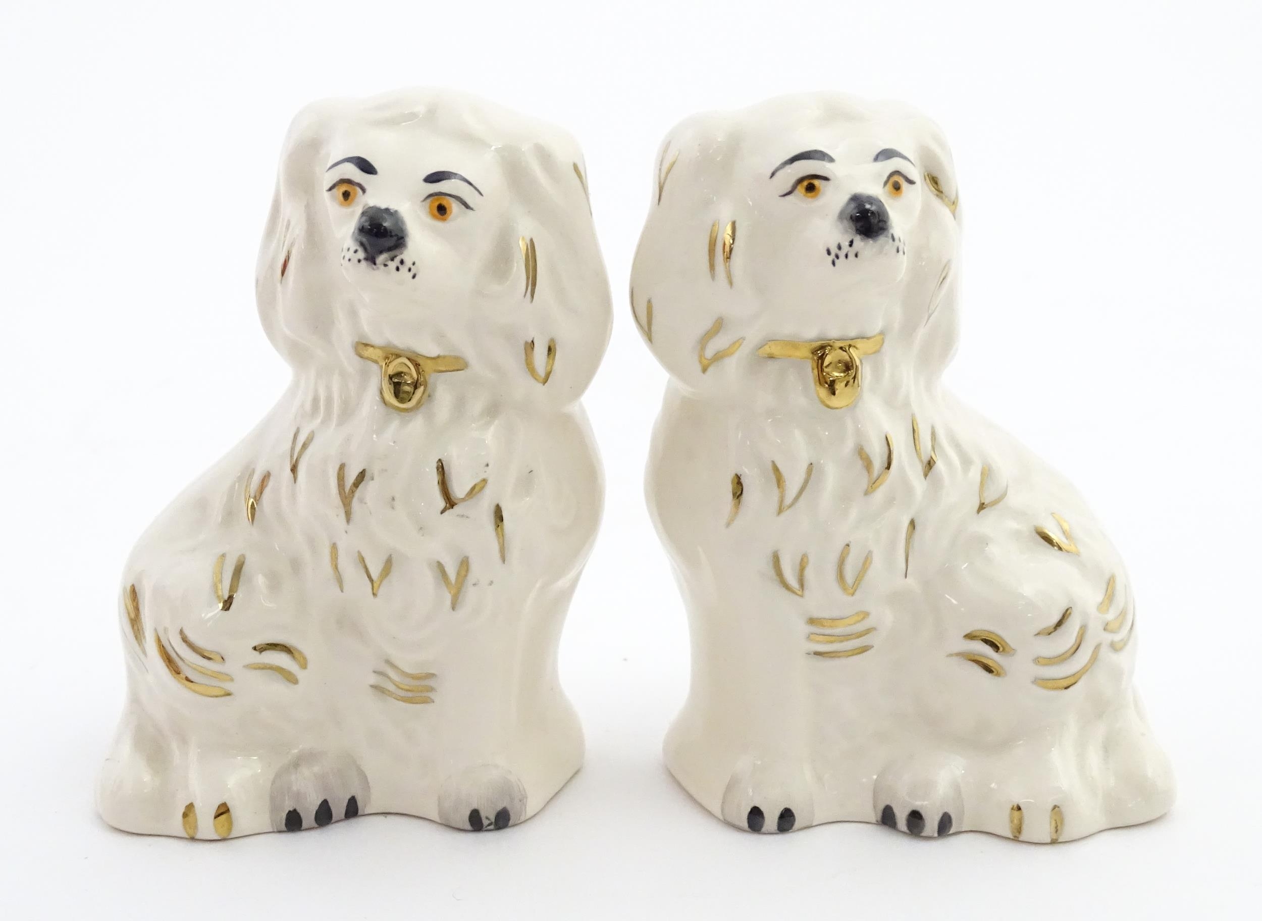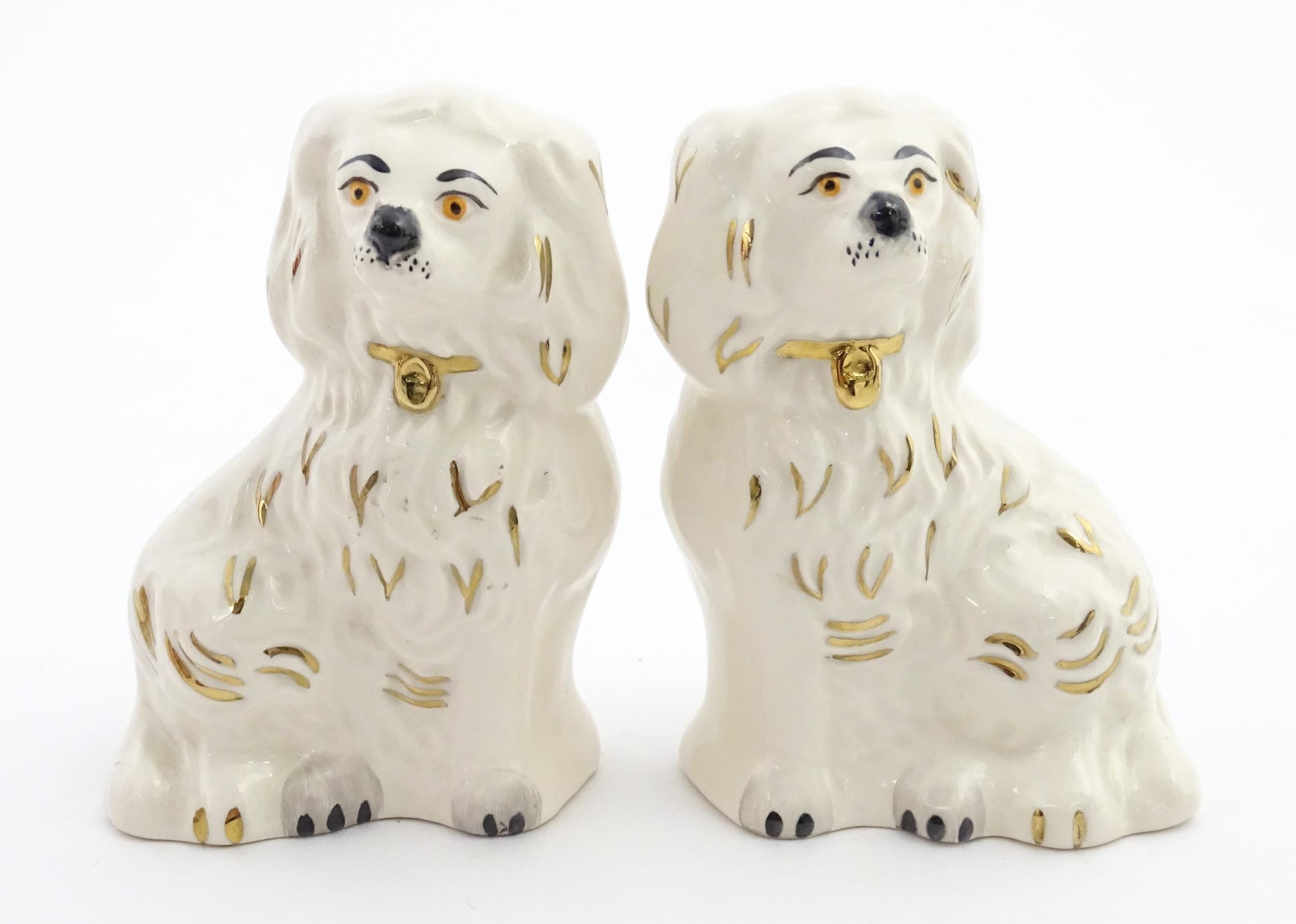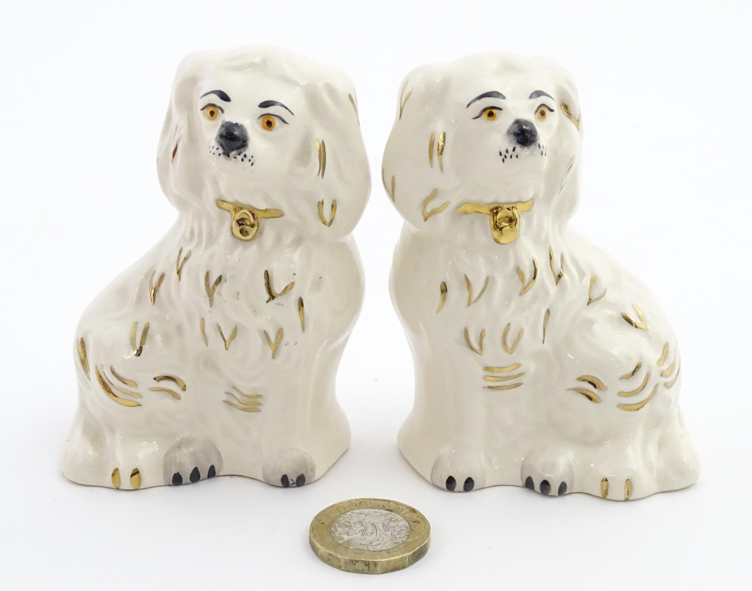 A pair of small Royal Doulton Staffordshire style seated spaniels. Approx. 3 1/2" high (2)