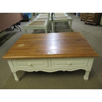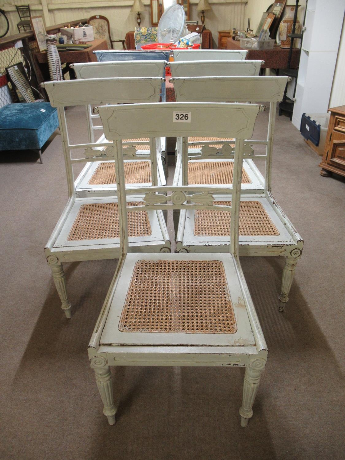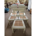 Set of 7 Painted and destressed dining chairs with cane seats.
