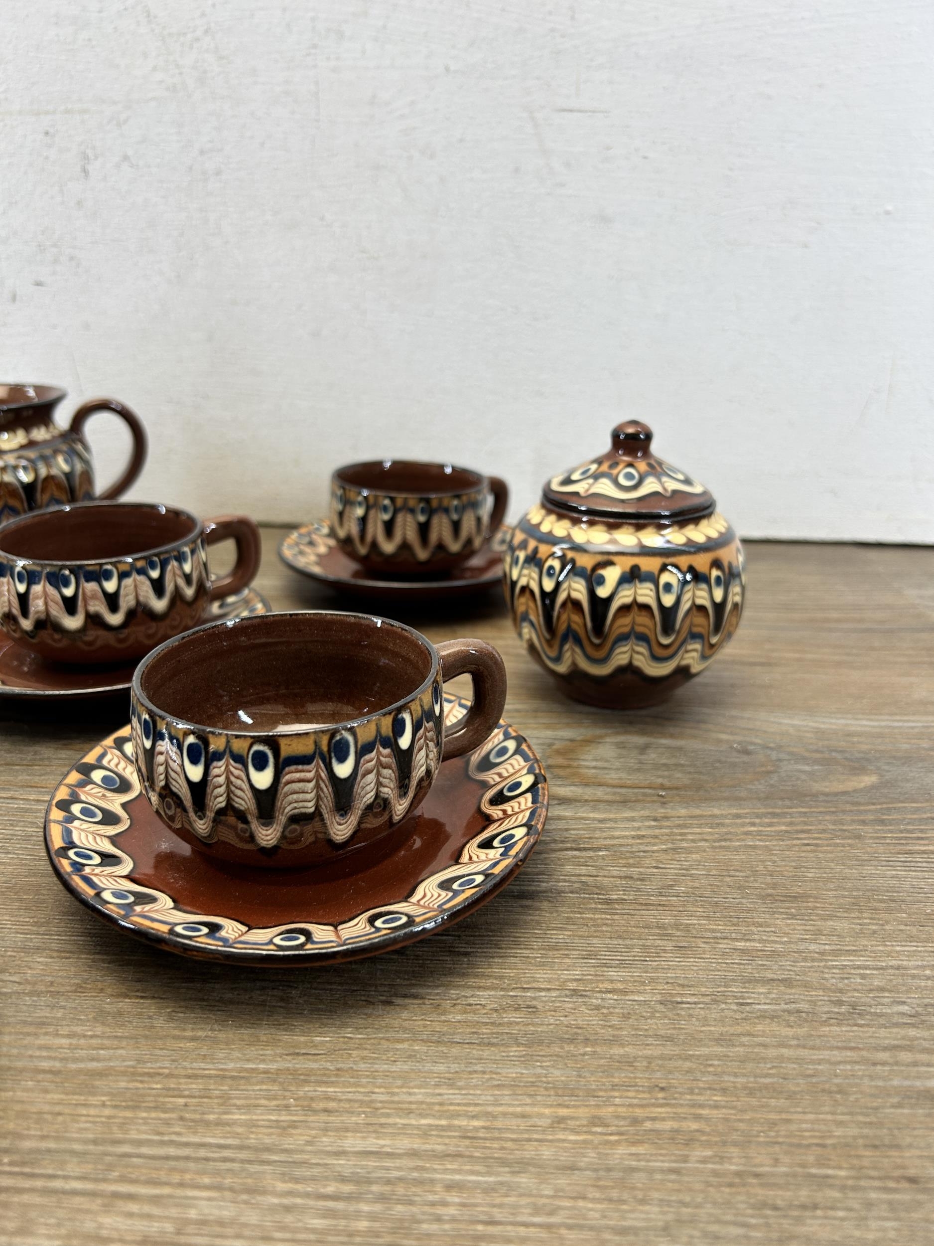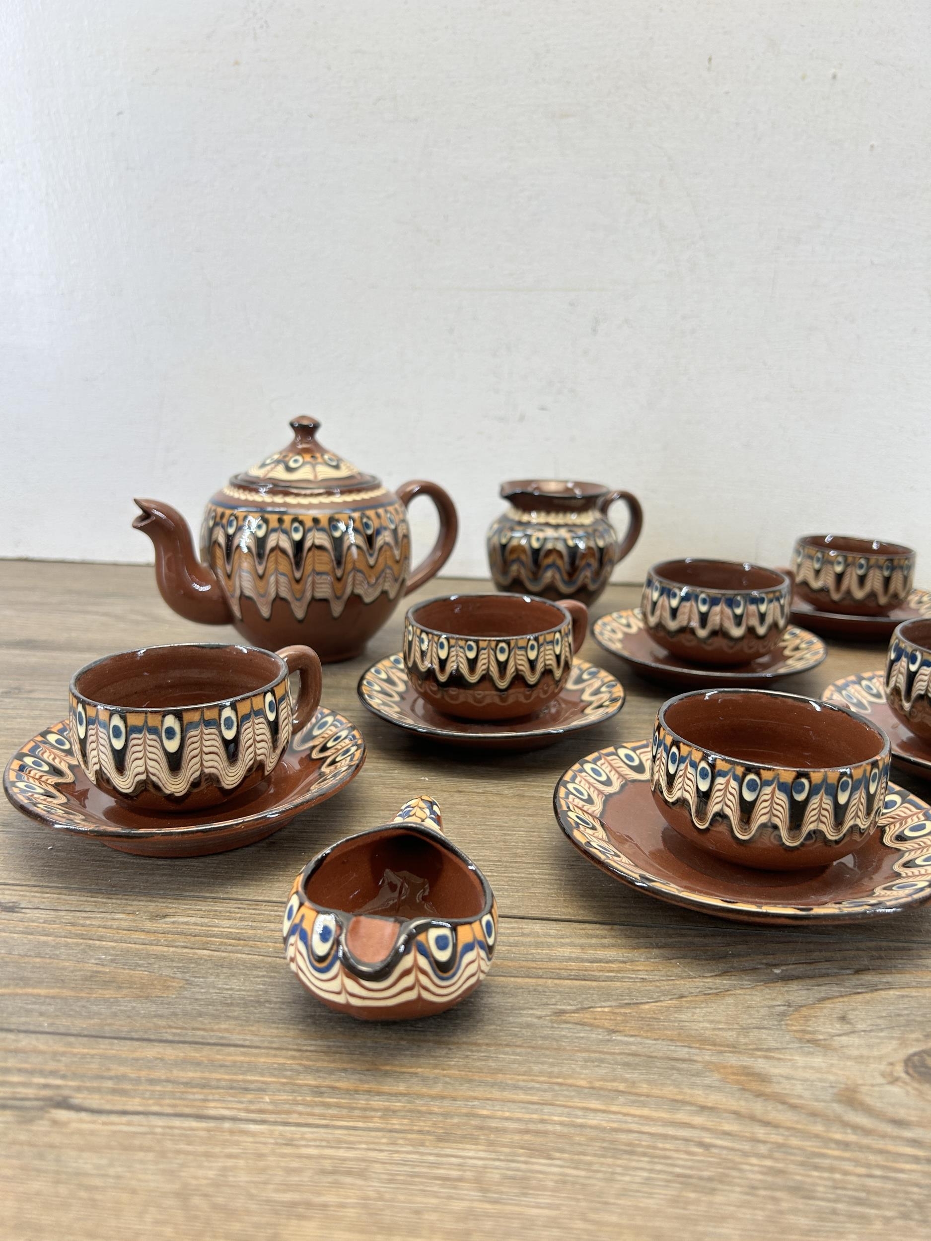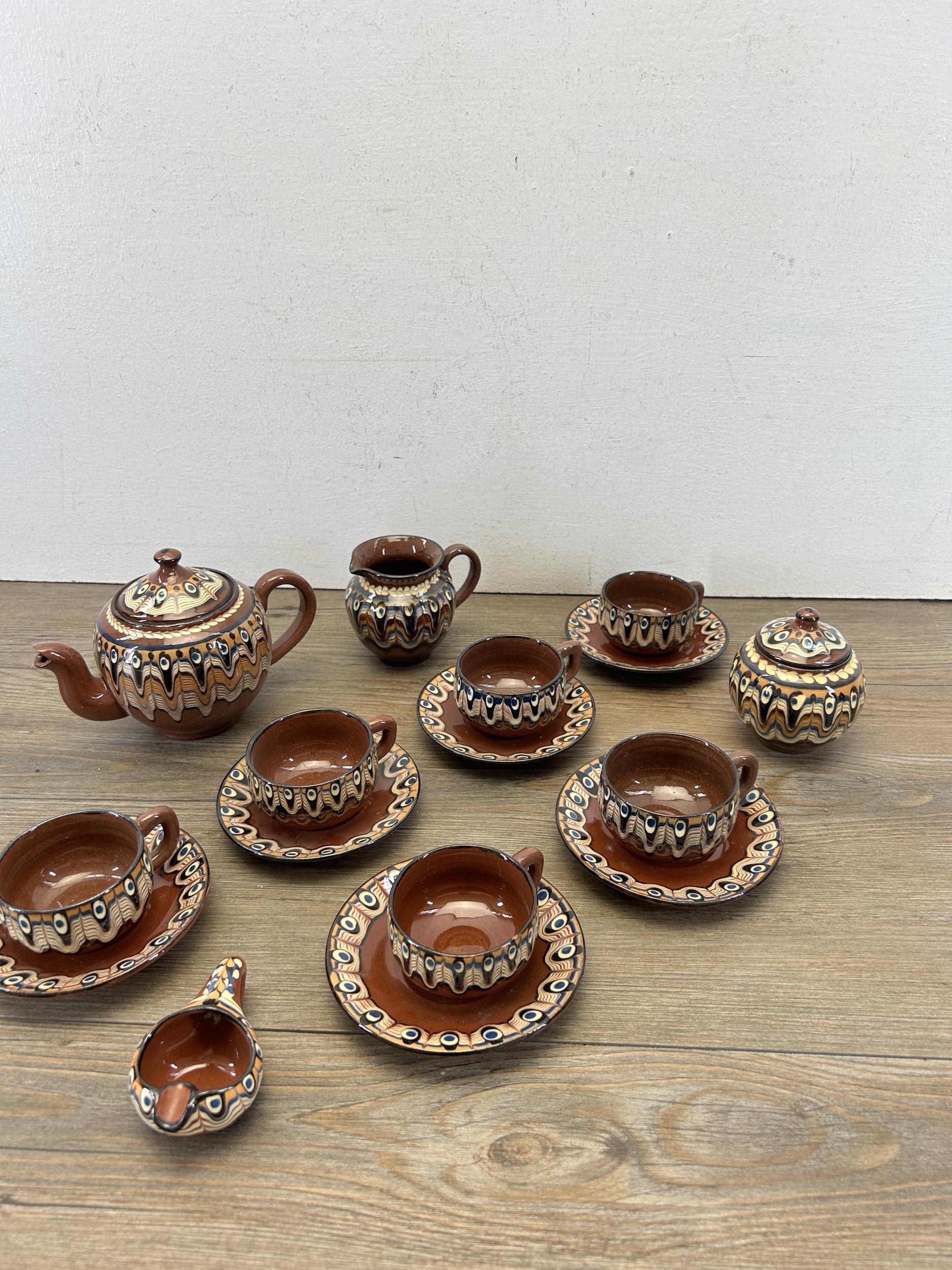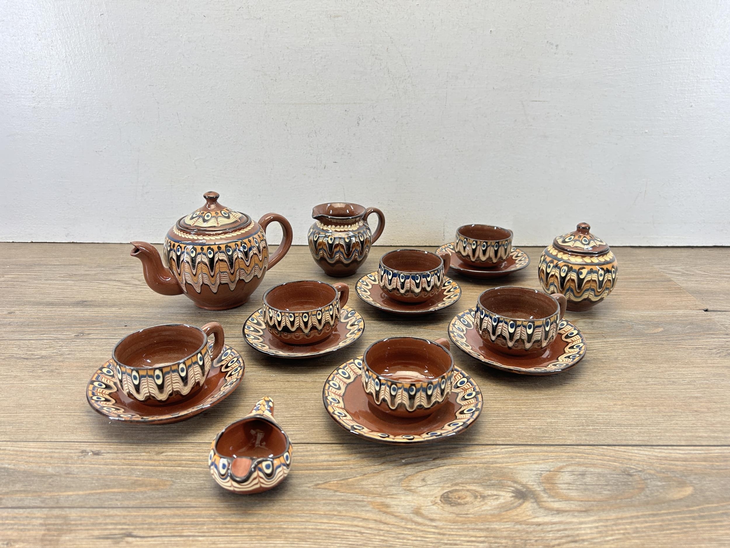A 1960s Romanian drip glazed sixteen piece miniature teaset