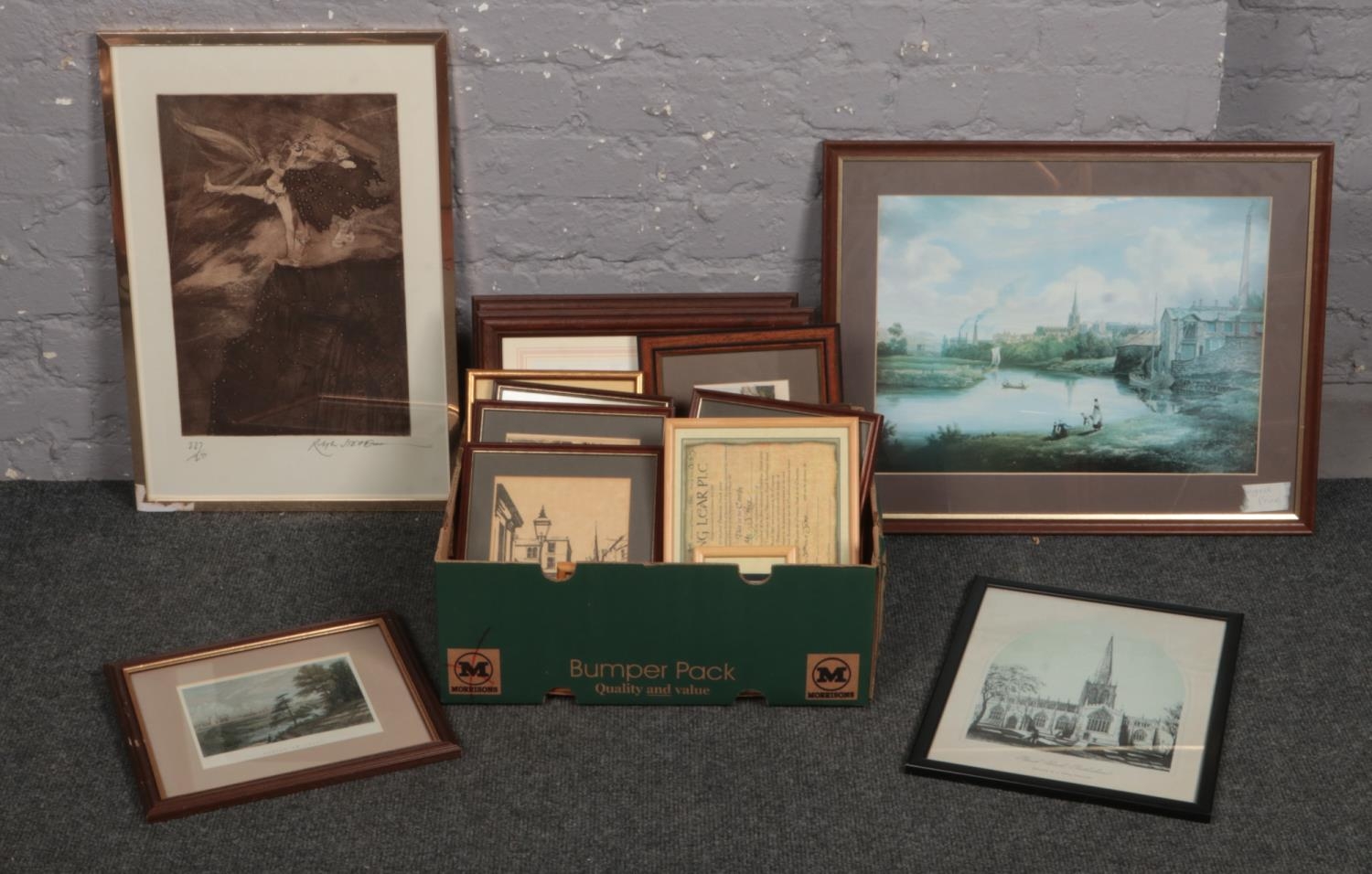 A quantity of framed pictures and prints to include coloured engraving, limited edition print etc.