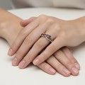 A pretty Sterling Silver 925 four Garnet gemstone ring. Size - L, Weight - 2.48 grams. Please note, the image of the modelled item was created by a new imaging/ staging software called showiton.ai. Upload a simple image of a piece of jewellery and the software stages it on a model for you. Paste the URL (showiton.ai) into your browser and try it for free. It’s a very simple, user-friendly platform.
