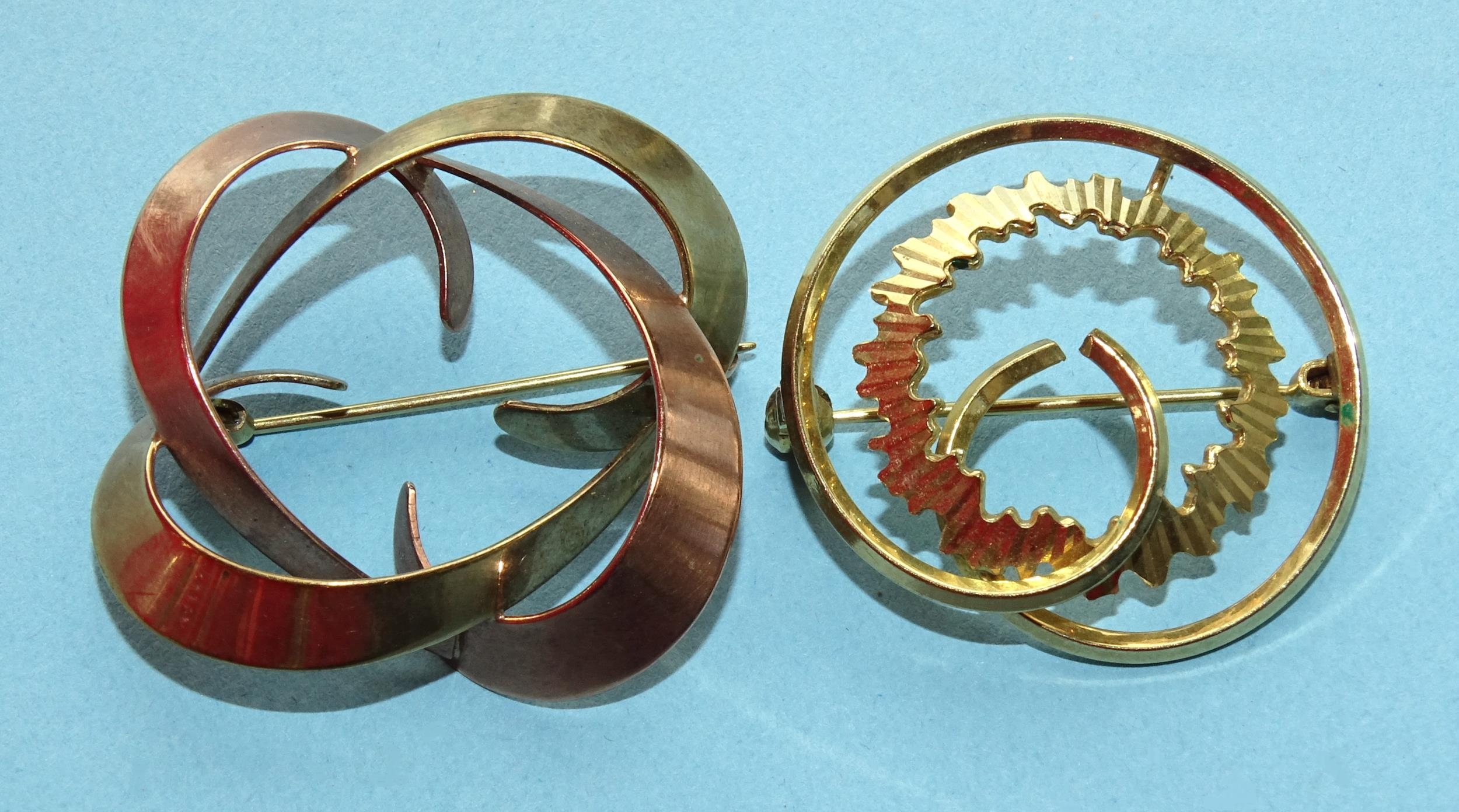 Two 333 standard gold brooches of abstract design, 8.9g, (2).