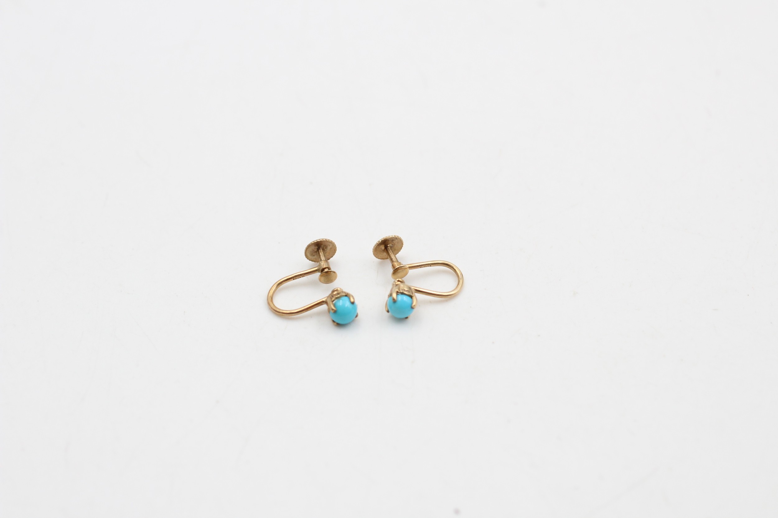 9ct Gold Vintage Turquoise Screw-Back Earrings (1.5g) 2789