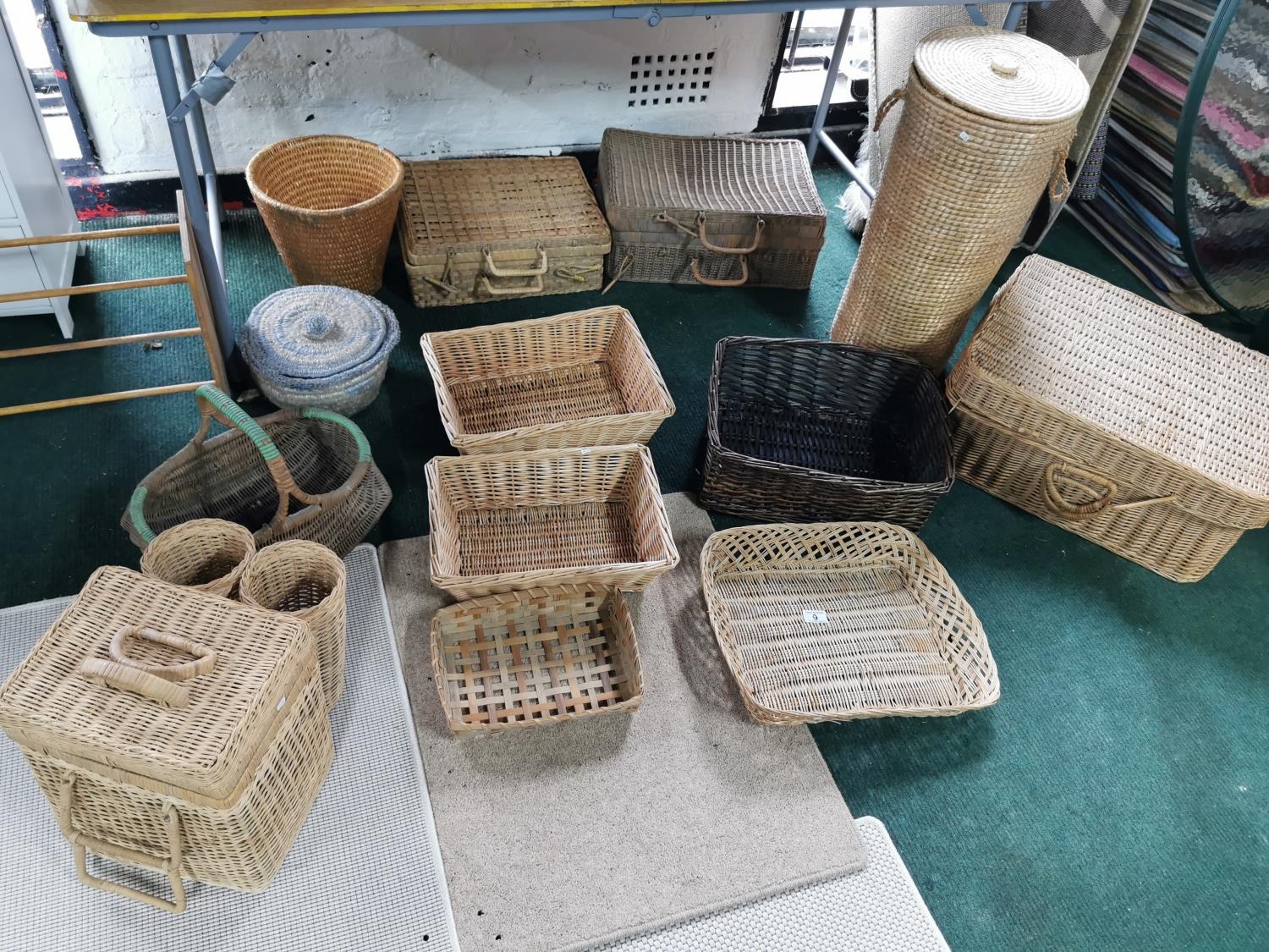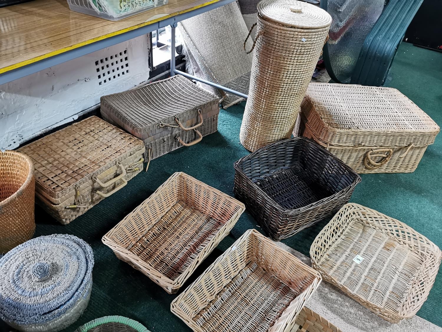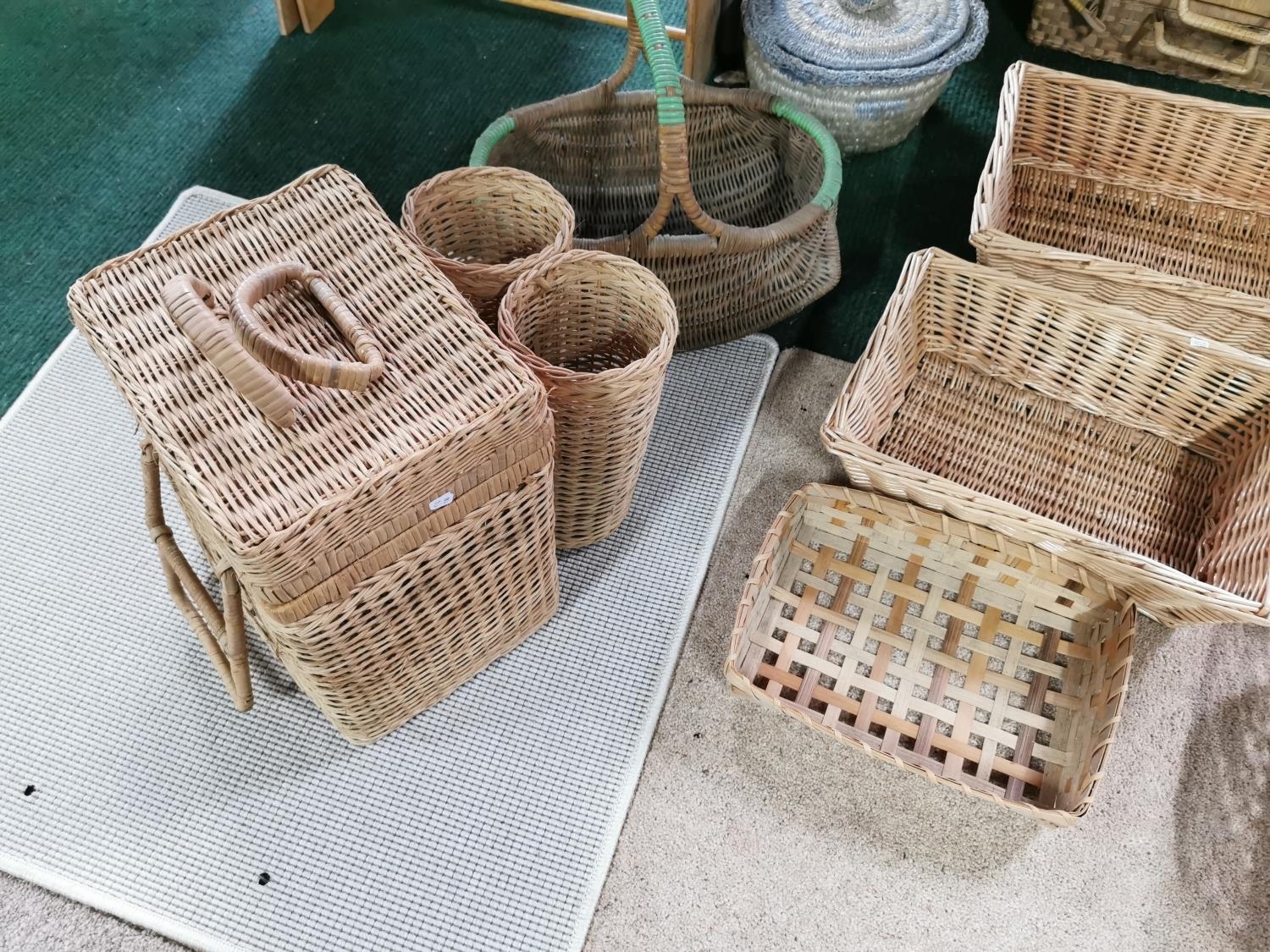Job Lot Of Wicker Items Inc Wicker Basket & Picnic Basket With Bottle Holders