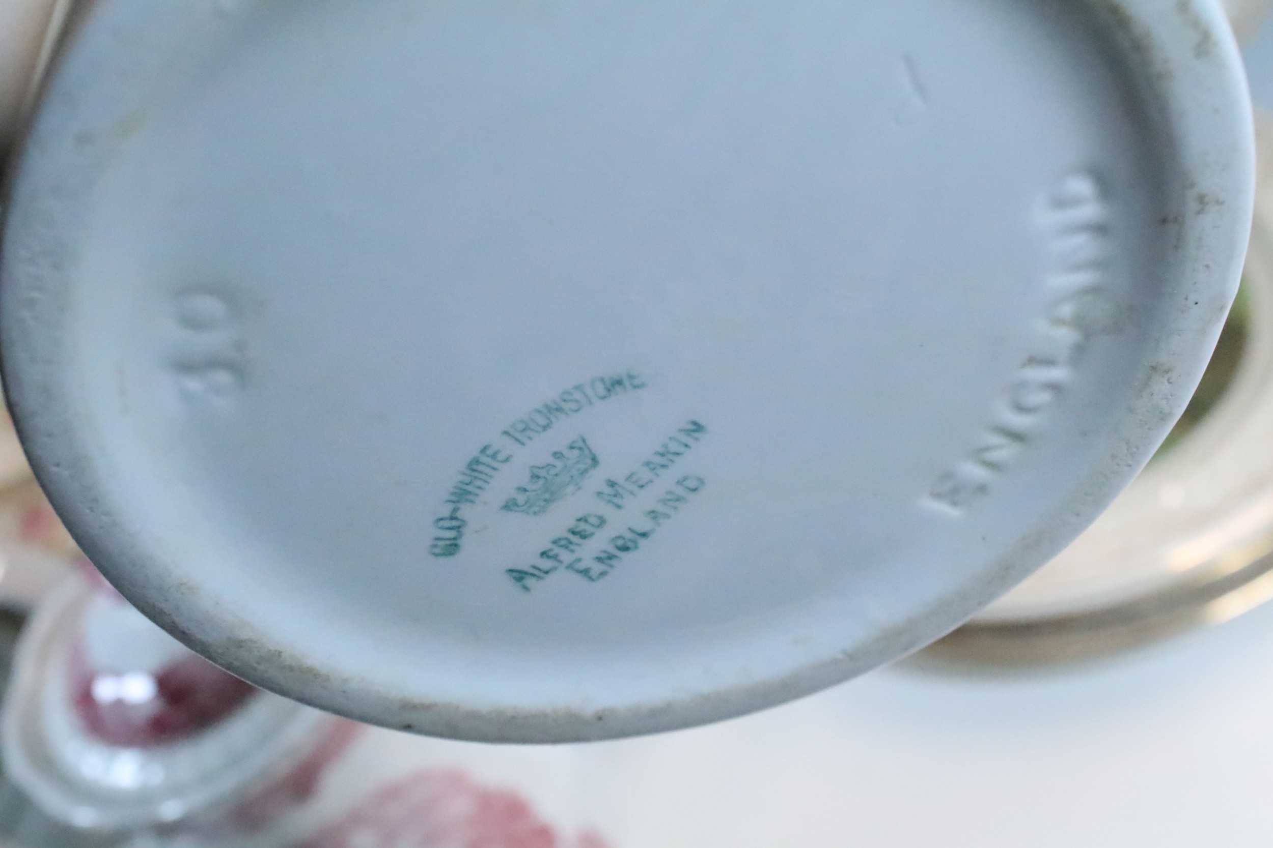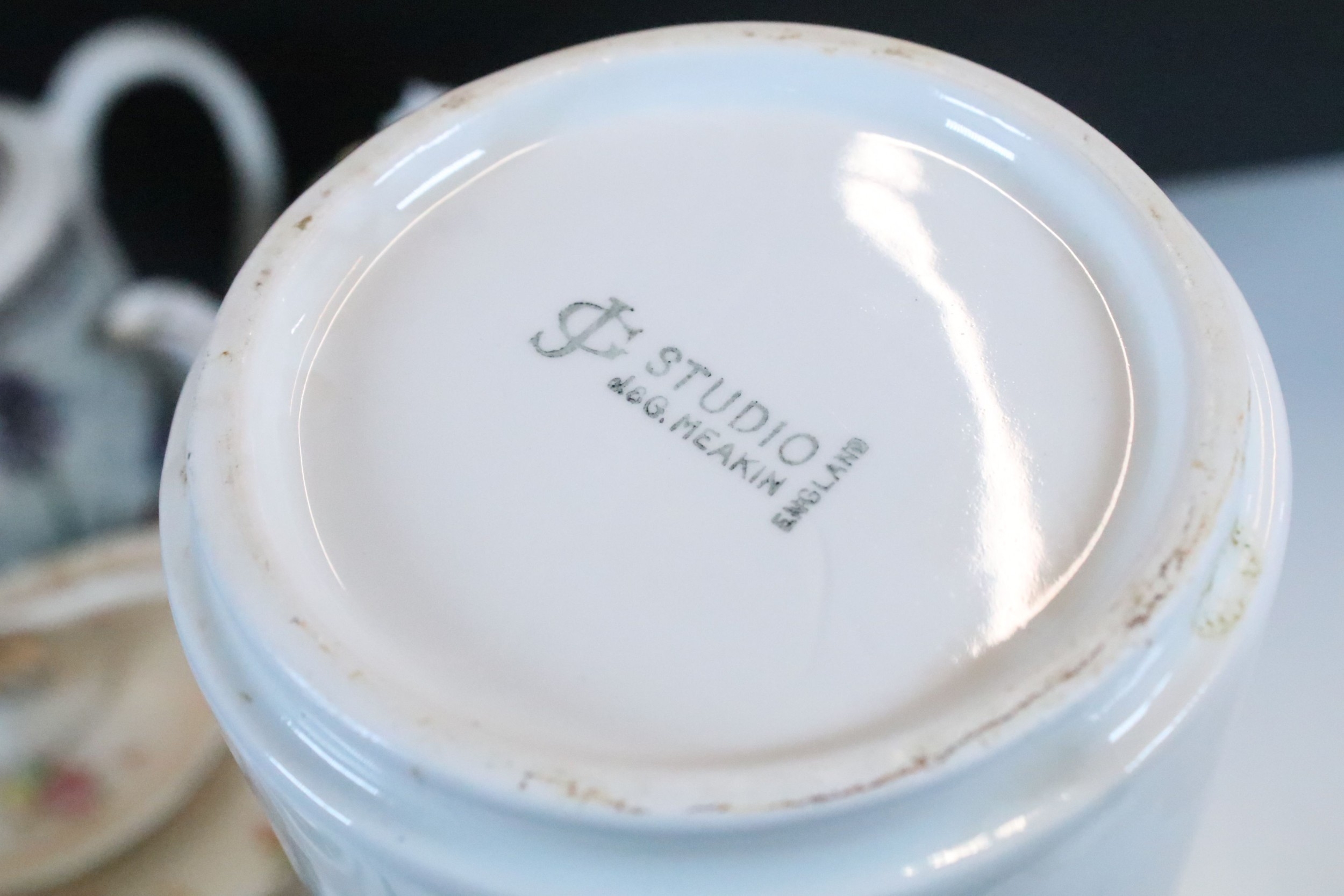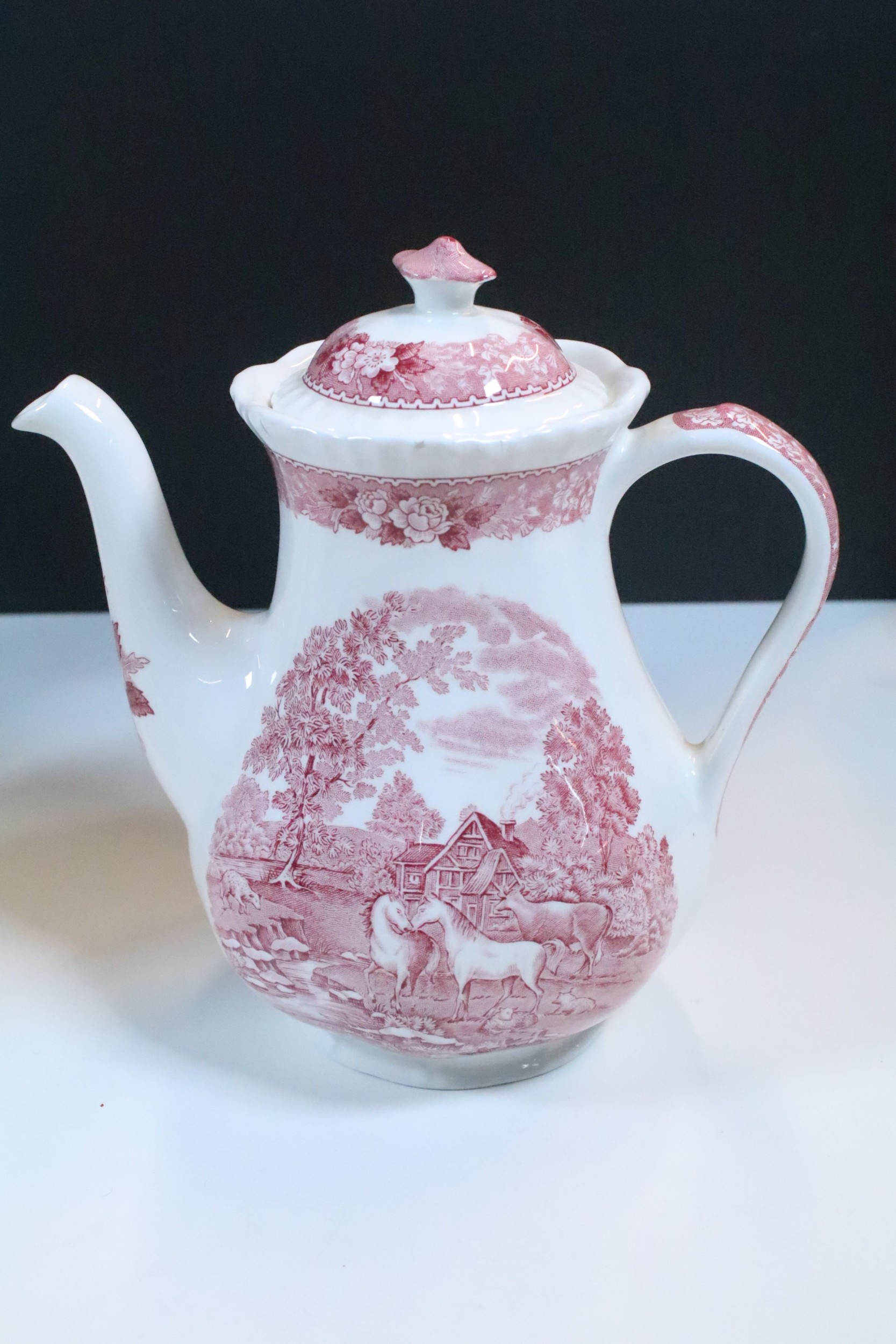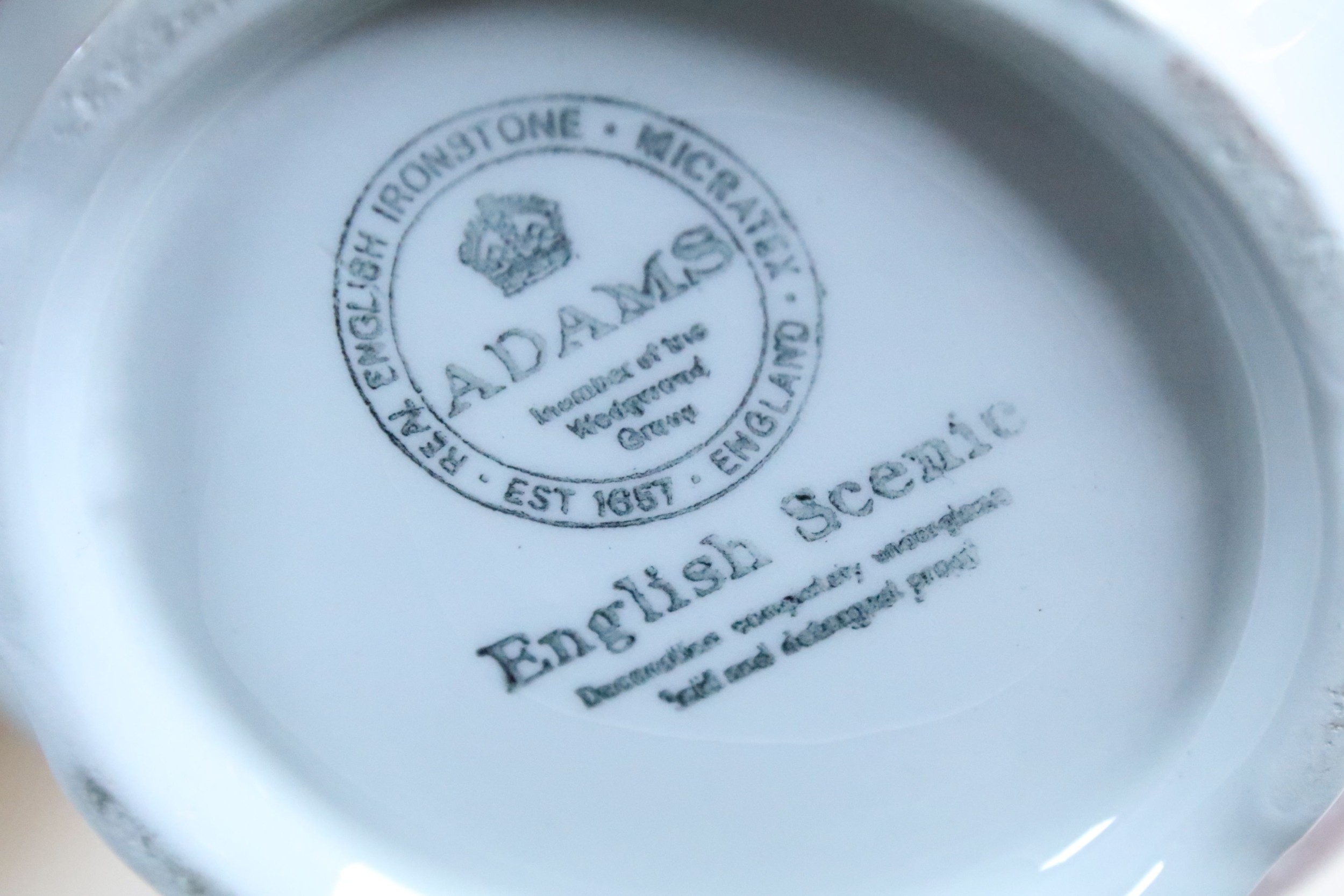 Quantity of tea and coffee pots to include Royal Albert, Crown Devon, Wedgwood and Adams examples together with a set of four Palissy 'Herring Hunting scene' Plates (1 box)