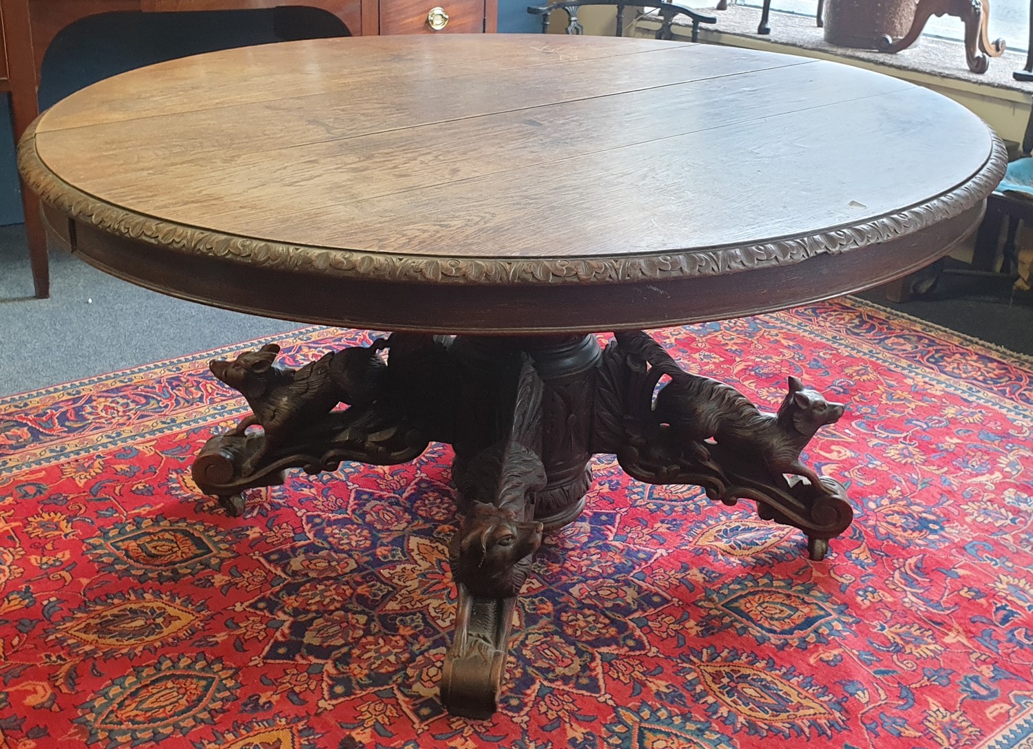 Antique Oak Animal Pod Leg Circular Dining Table (H:72 x W:143 x D:128cm)