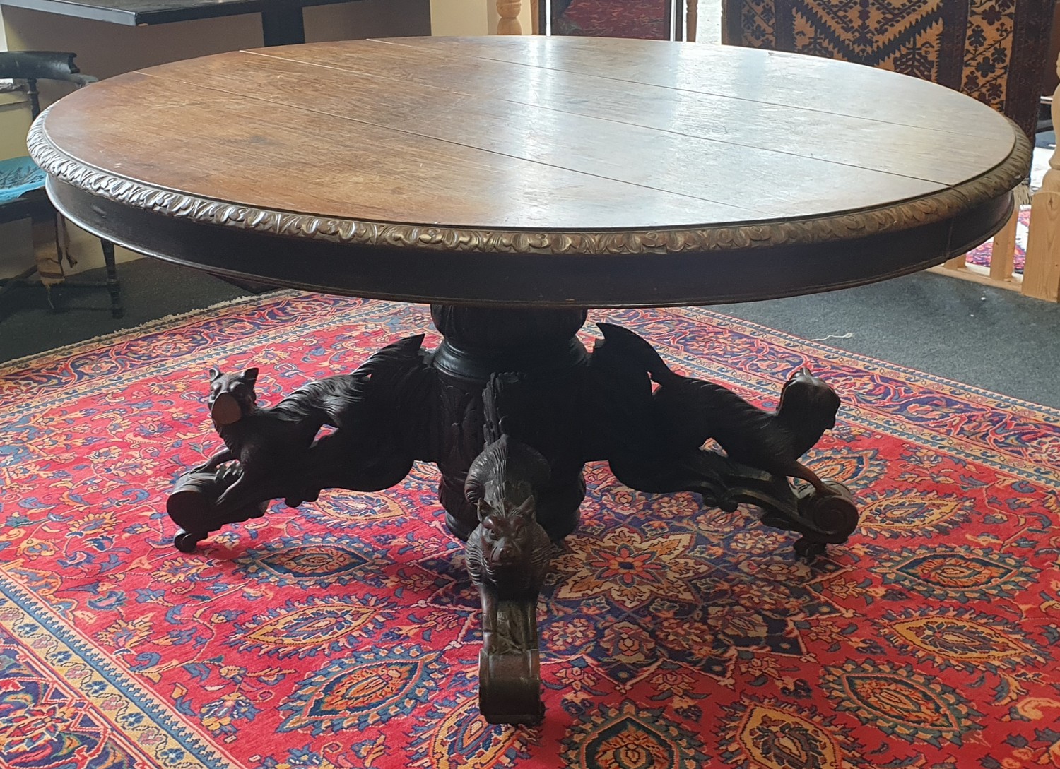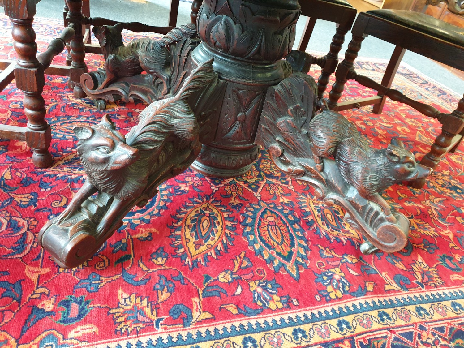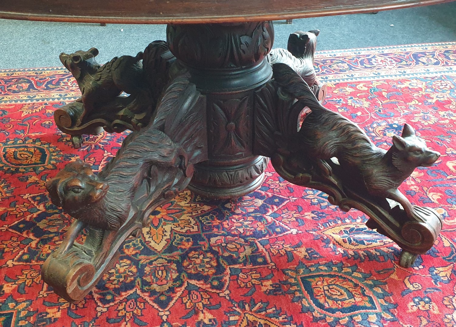(no leaves with table, one support leg missing - see picture) - one animal face with repair - (see picture)