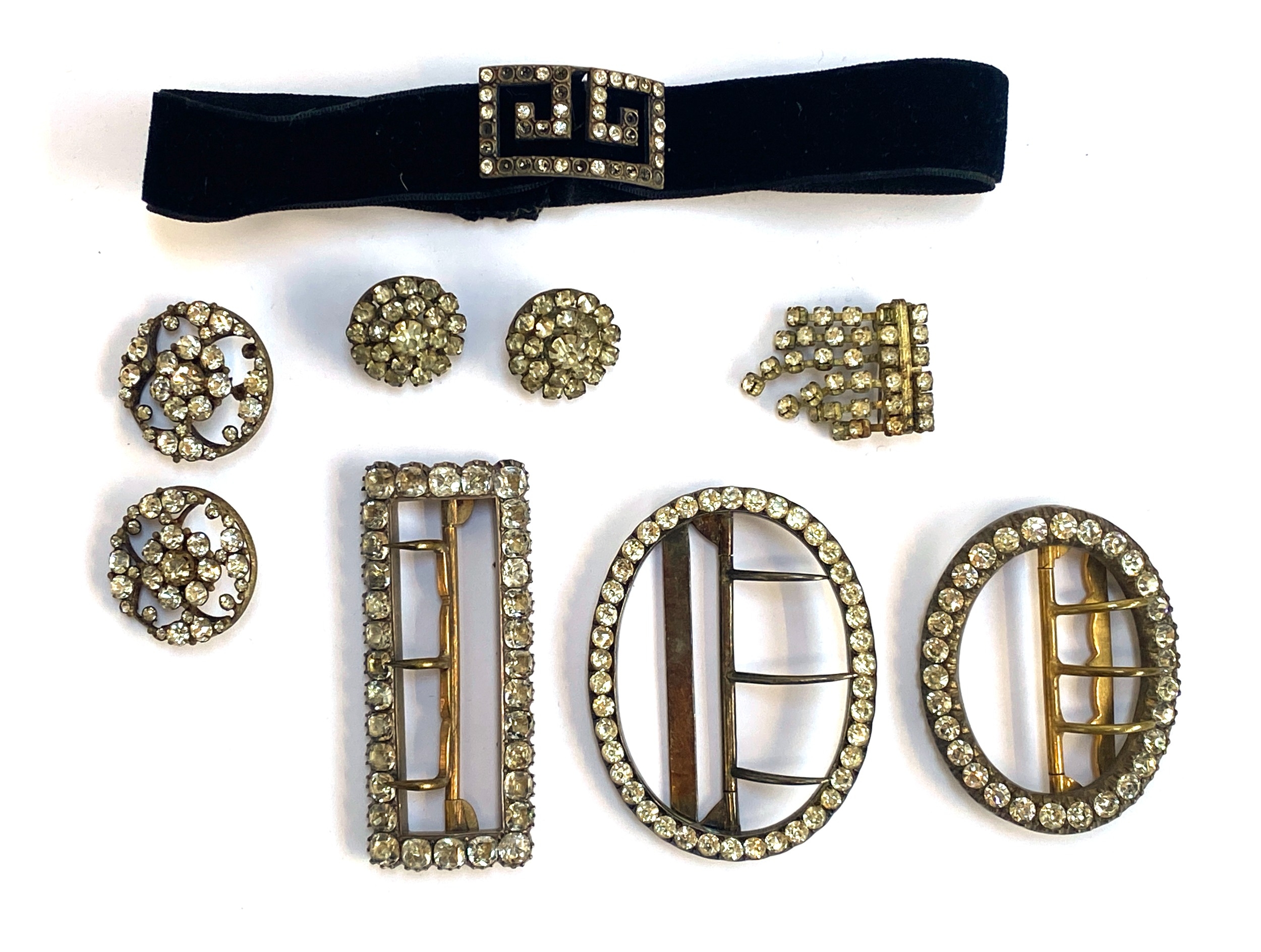 A collection of paste jewellery to include Georgian shoe buckle; Czech paste buttons etc