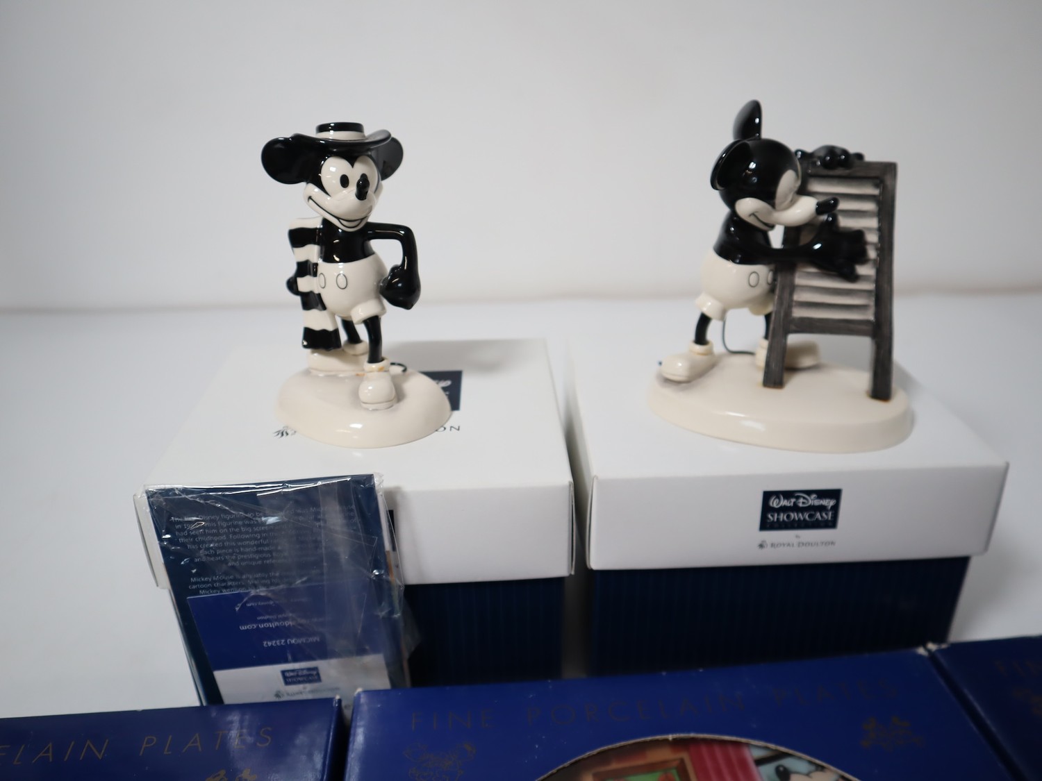 Five Fine Porcelain Walt Disney Plates by Kenleys Ltd + Royal Doulton Walt Disney Showcase ceramic figurines Gaucho Mickey & Washboard Melody - Boxed