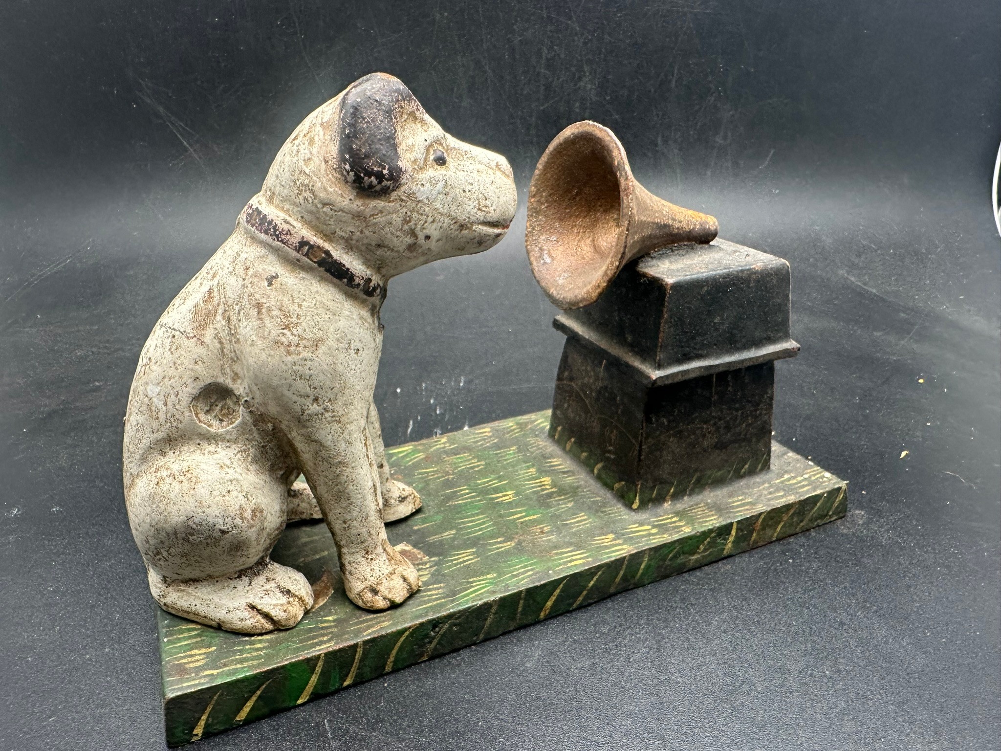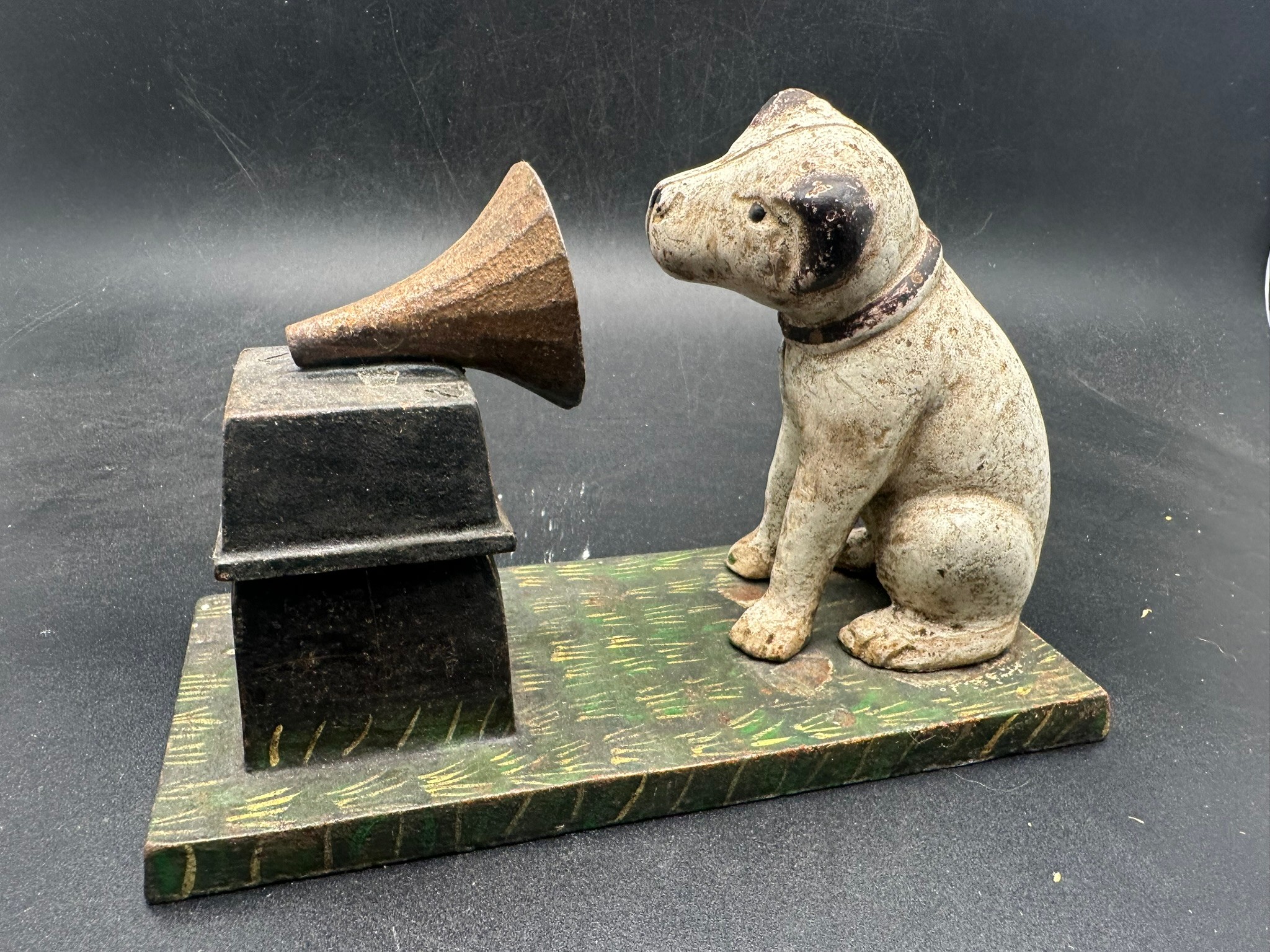 Vintage cast iron HMV model dog, Nipper, and gramophone