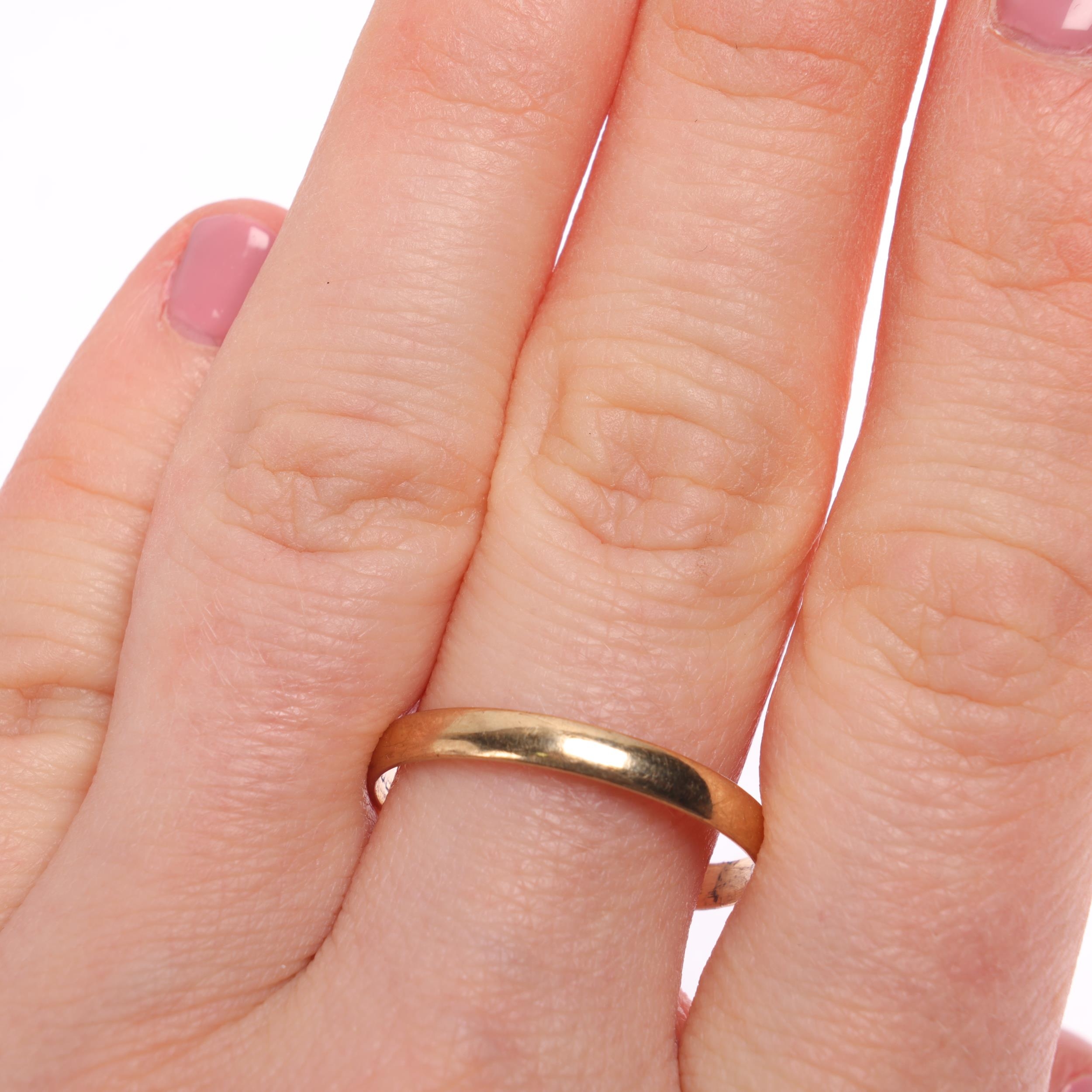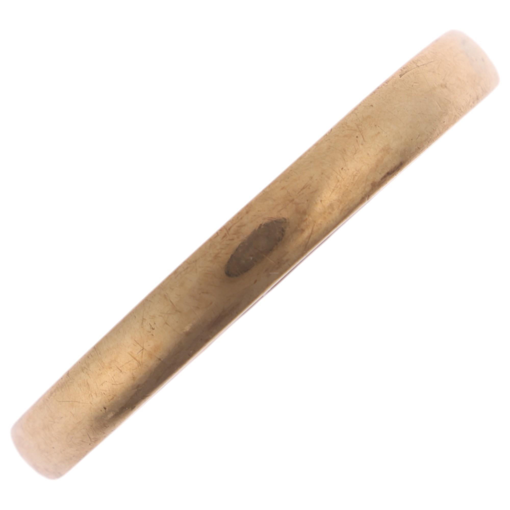 A 9ct gold wedding band ring, indistinct maker, London 1981, band width 2.8mm, size W, 1.3g