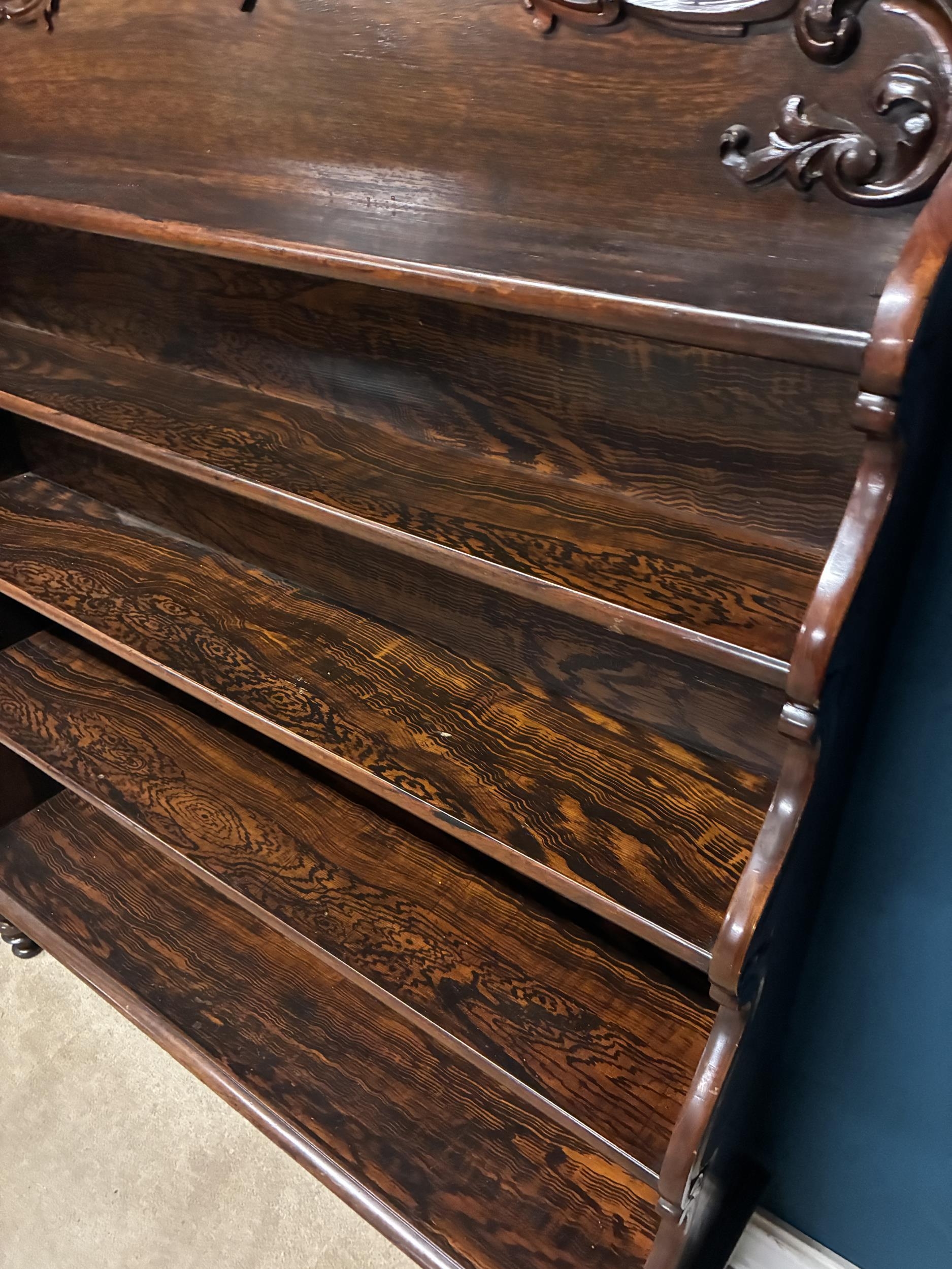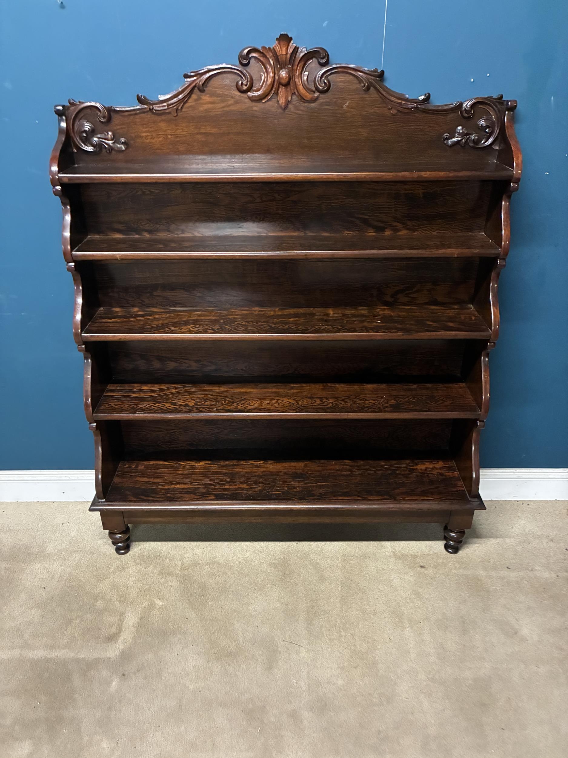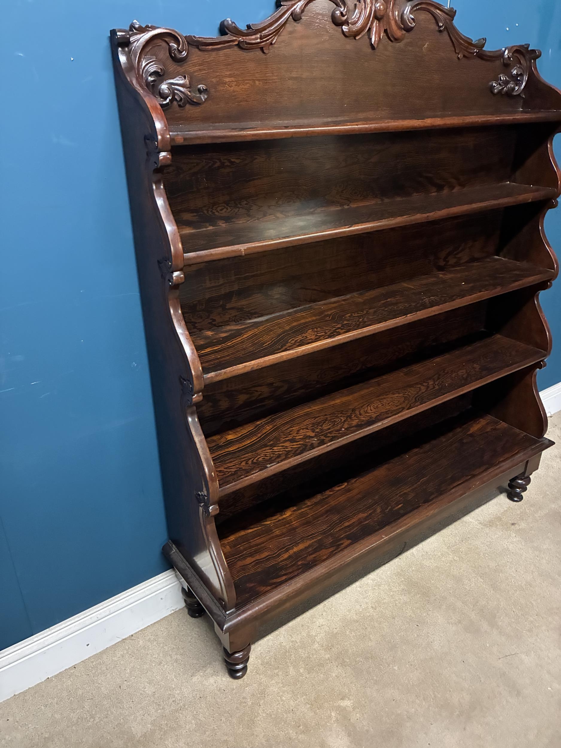 Irish William IV Rosewood waterfall bookcase with five graduated shelves and raised on turned feet {155cm H x 124cm W x 32cm D}