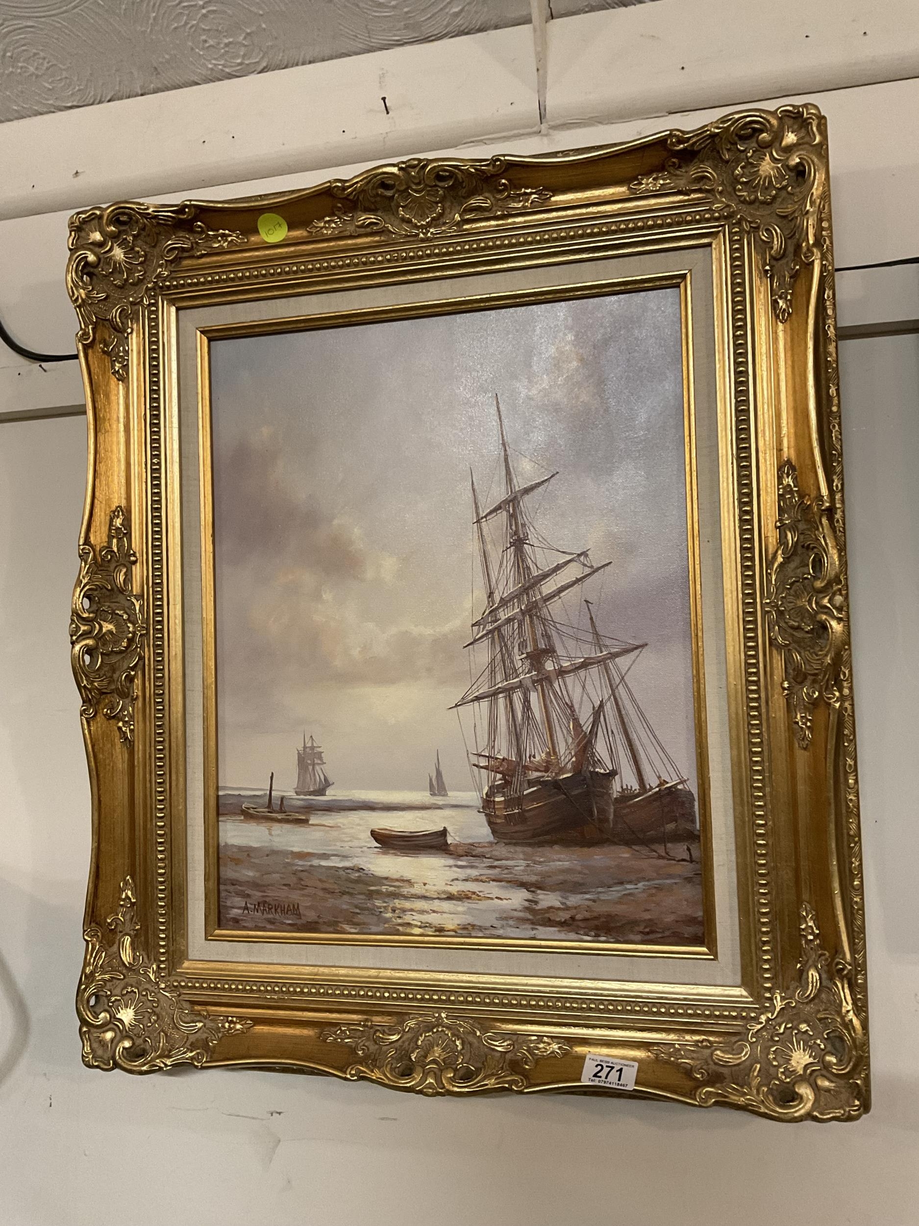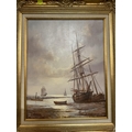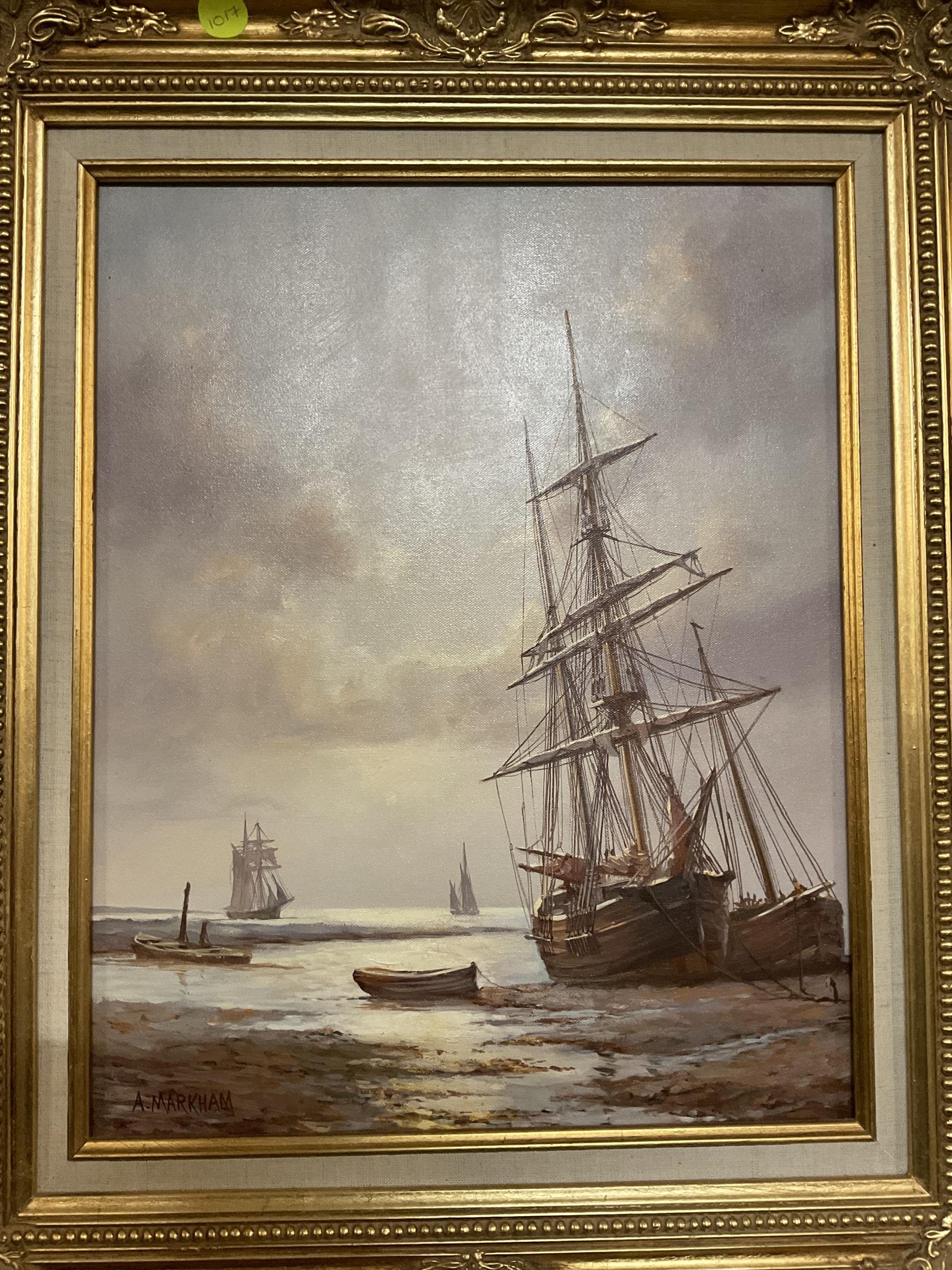 MODERN GILT FRAMED OILS ON CANVAS SIGNED A MARKHAM - COSTAL SCENE24 X 28"