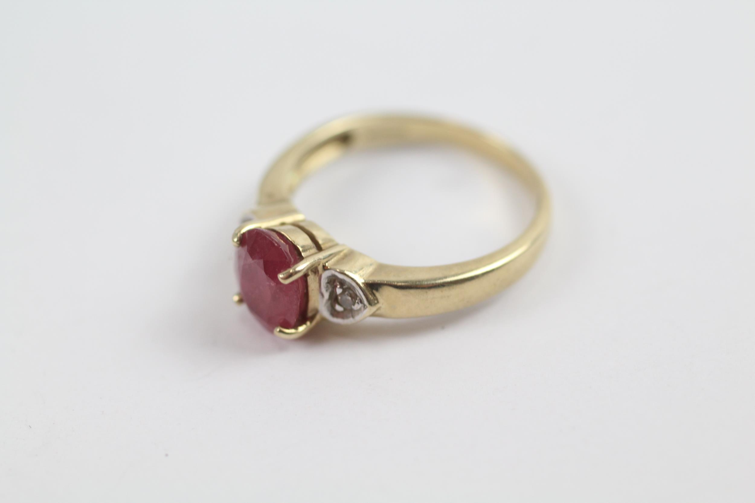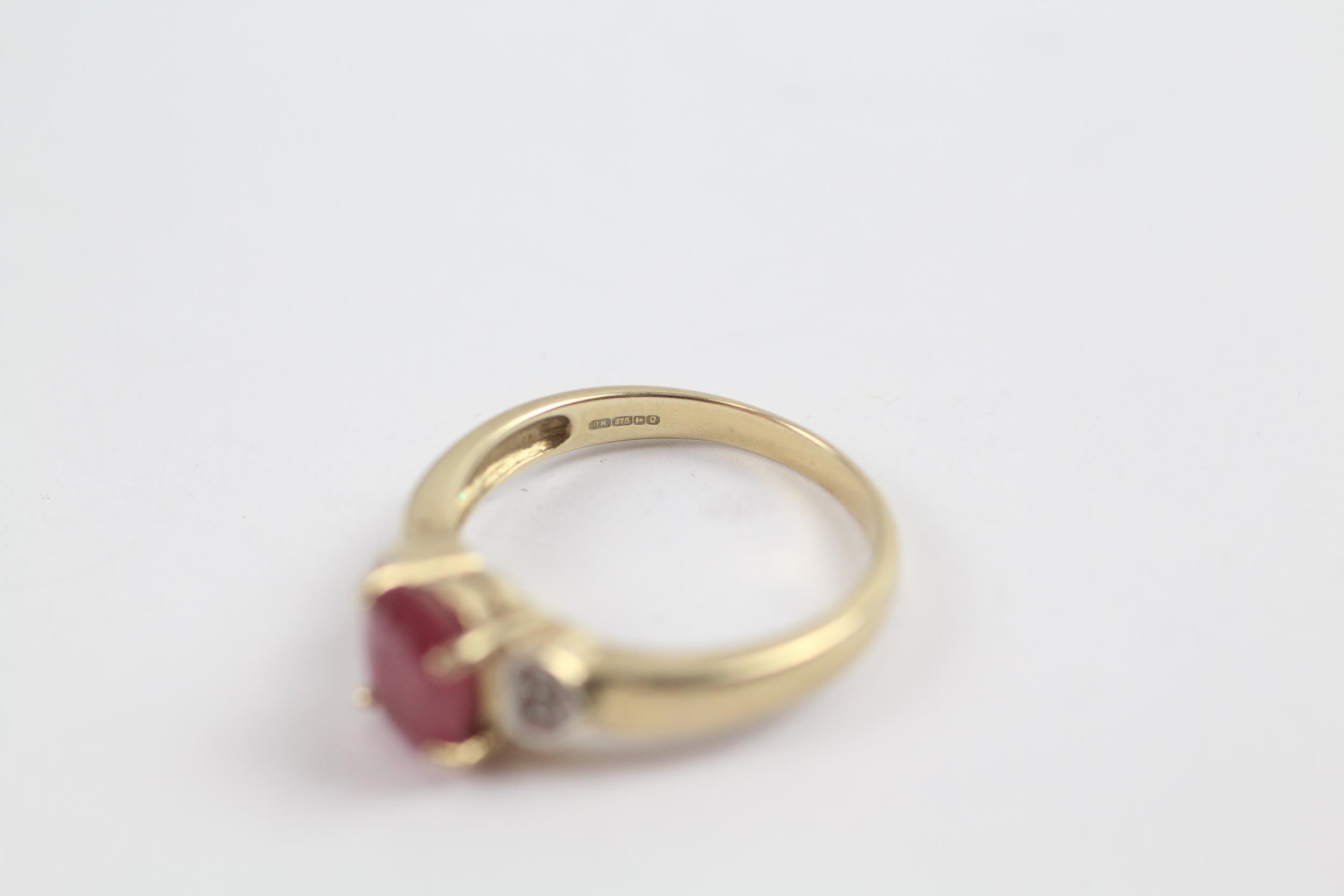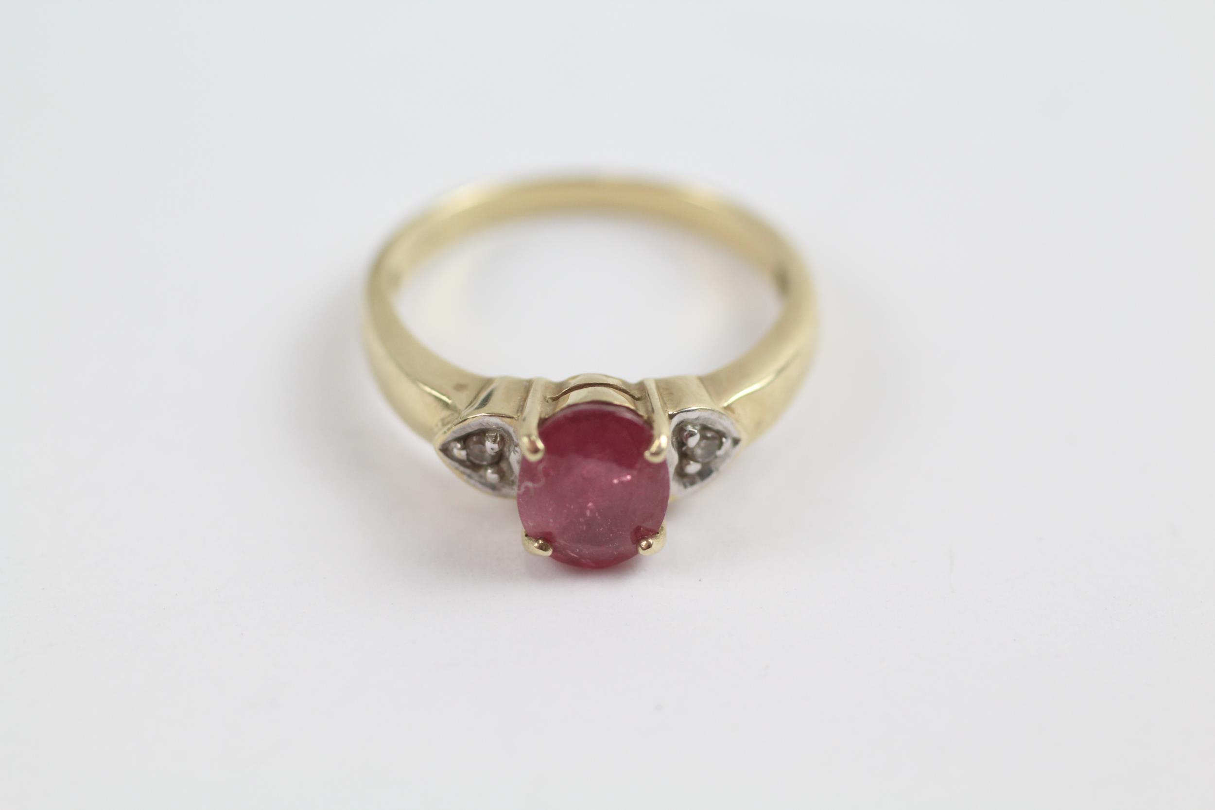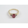 9ct Gold Ruby Single Stone Ring With Diamond Sides (3.3g) Size N