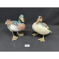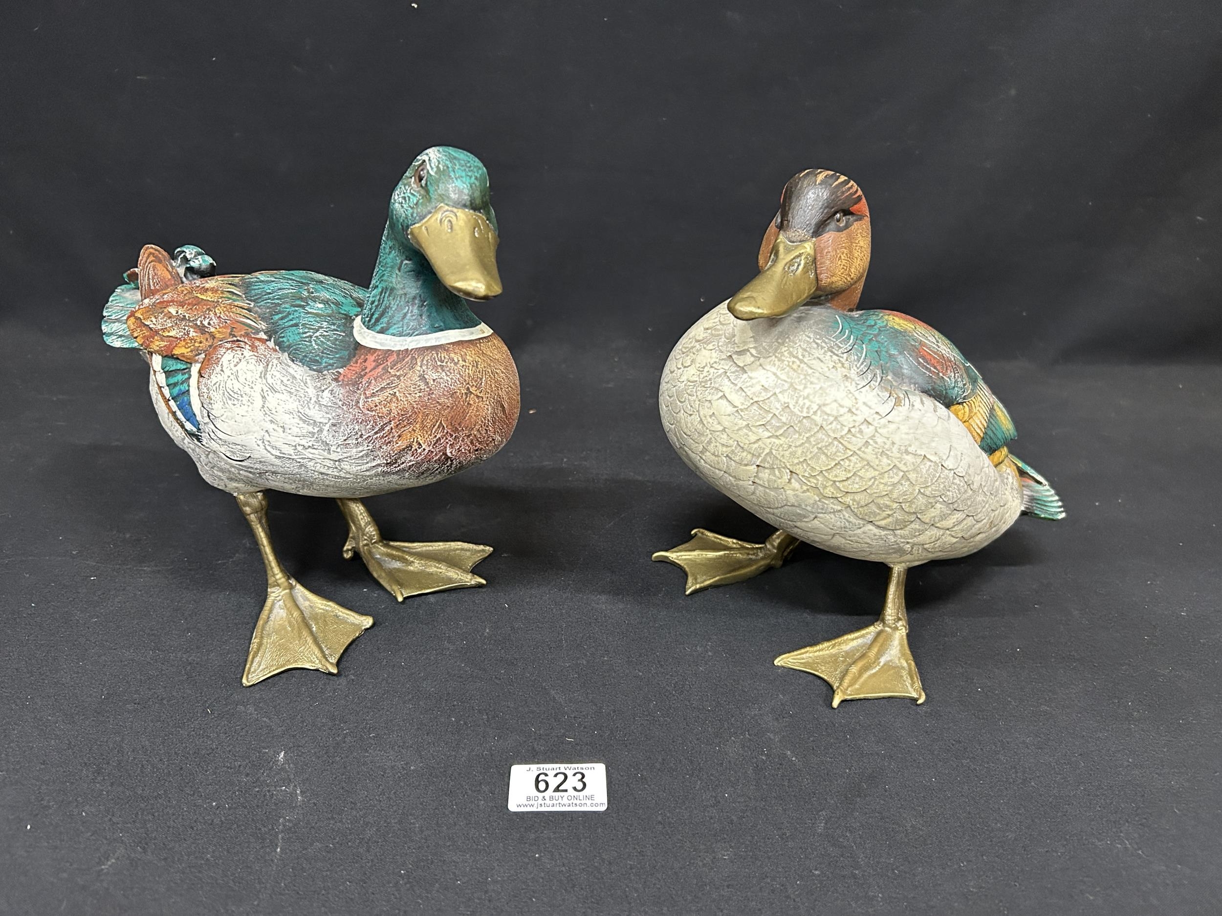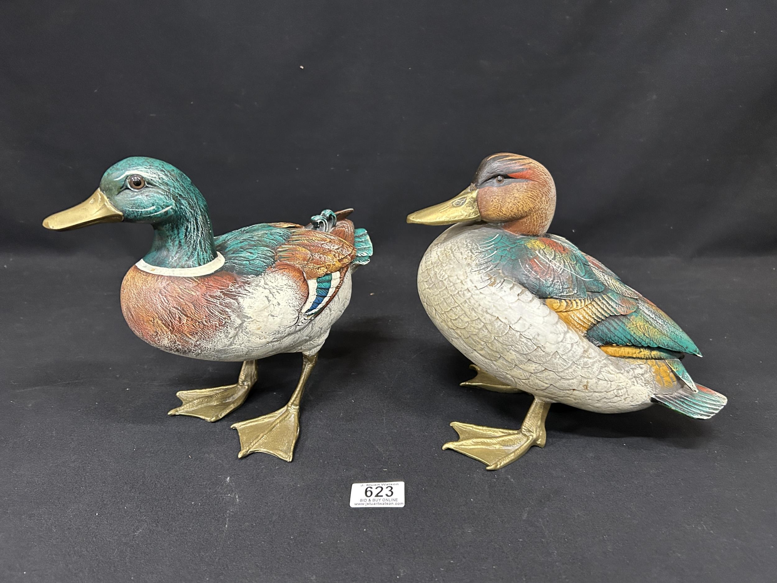 Pair of large painted heavy brass ducks
