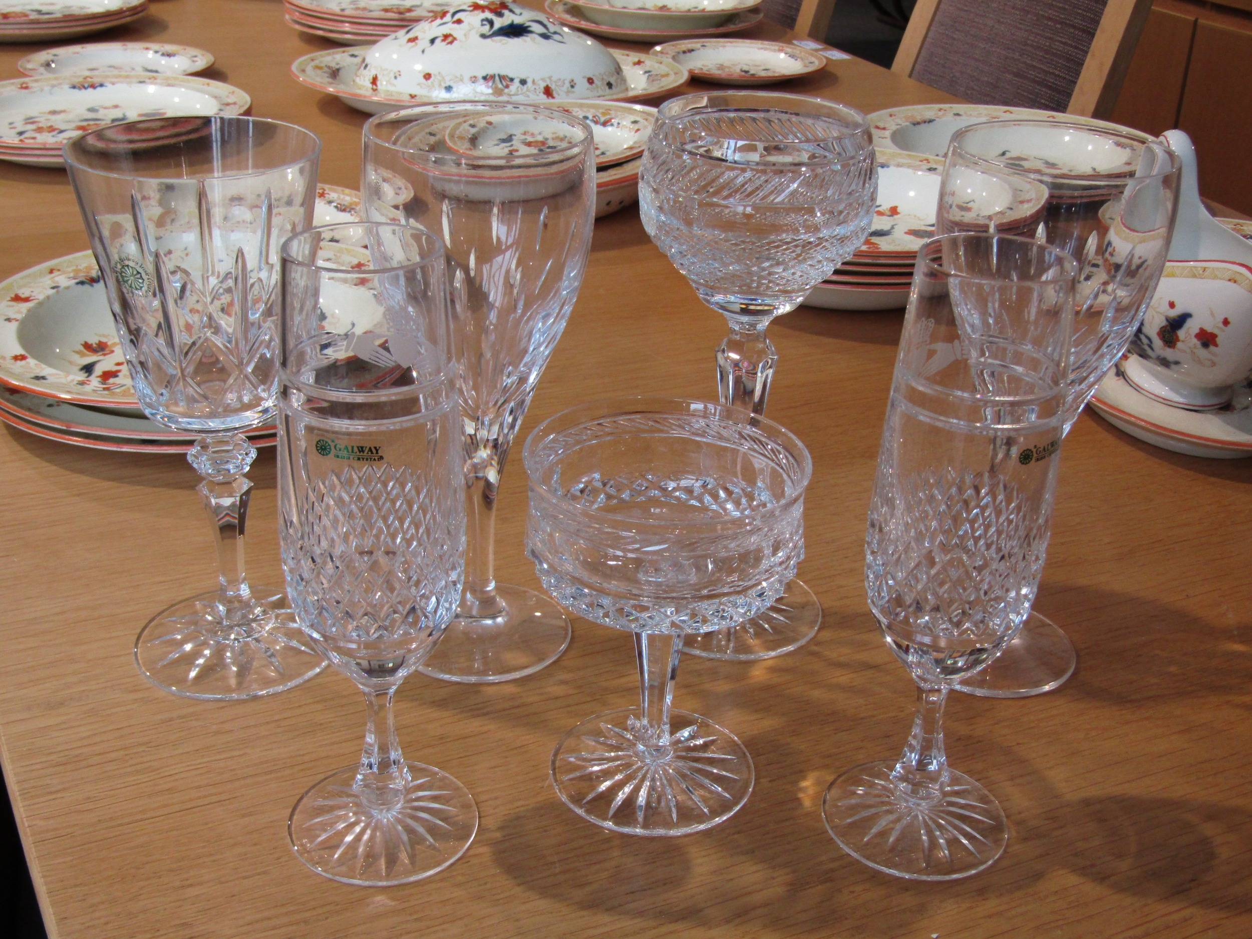 Four Galway large crystal wine glasses, two champagne flutes and champagne saucer (7)