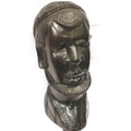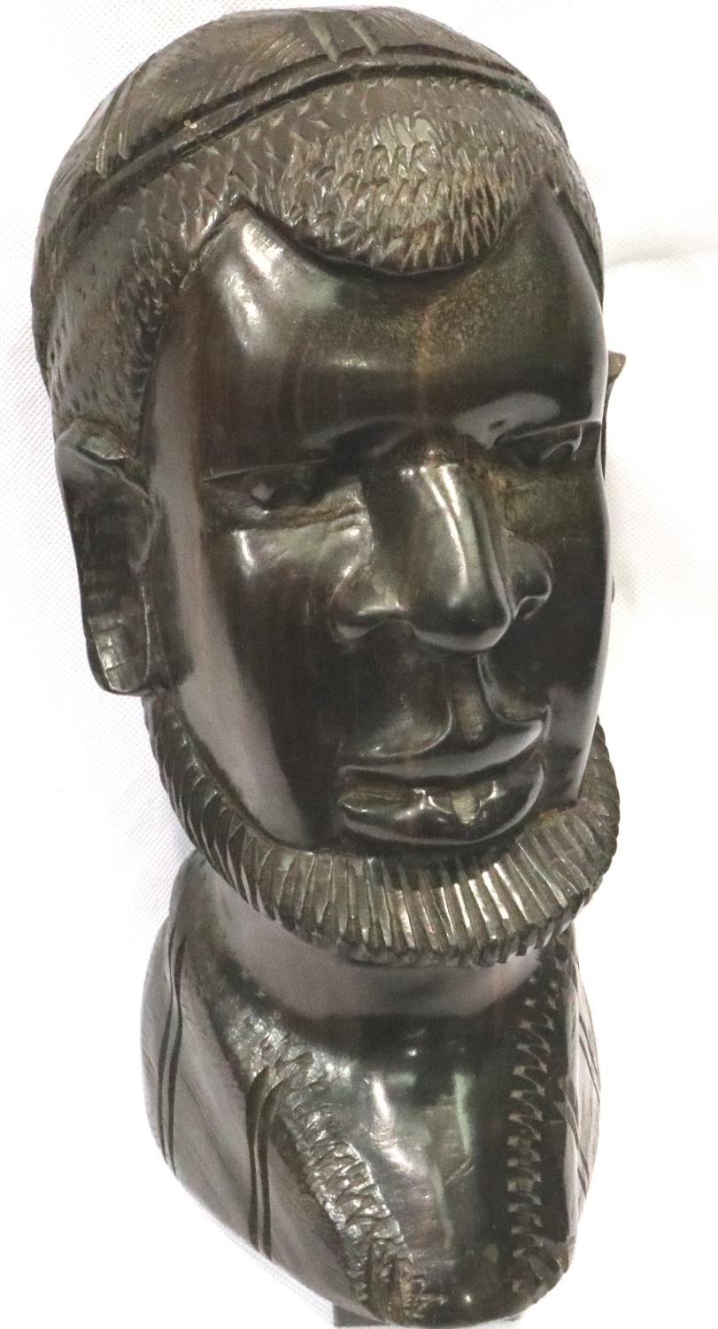 Large ebony Ethnic head, H: 30 cm. P&P Group 3 (£25+VAT for the first lot and £5+VAT for subsequent lots)