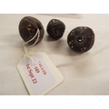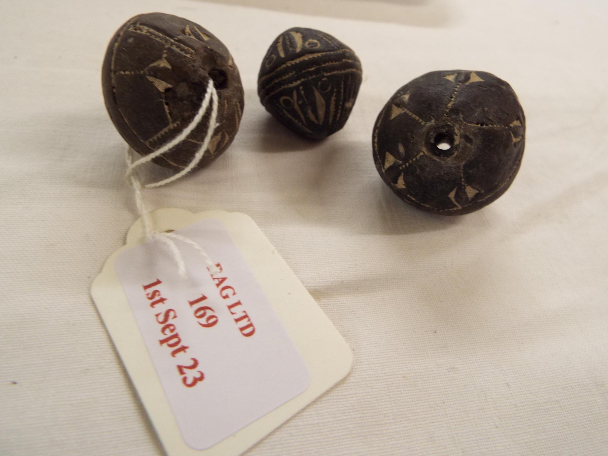 Three medieval Mali terracotta spindle whorls with etched decoration