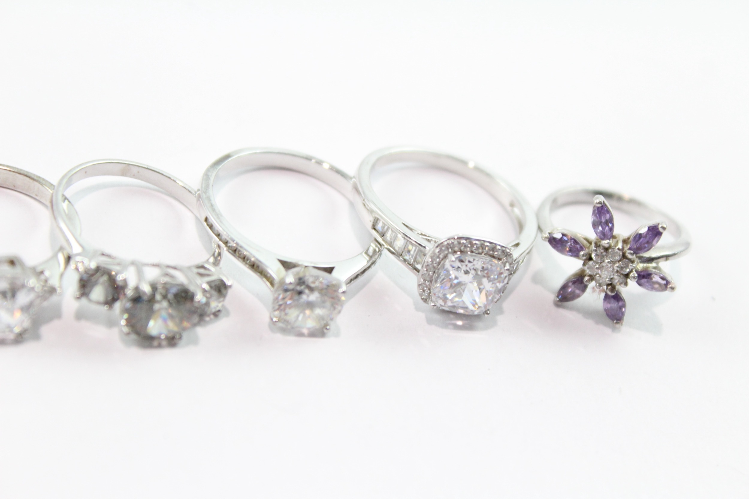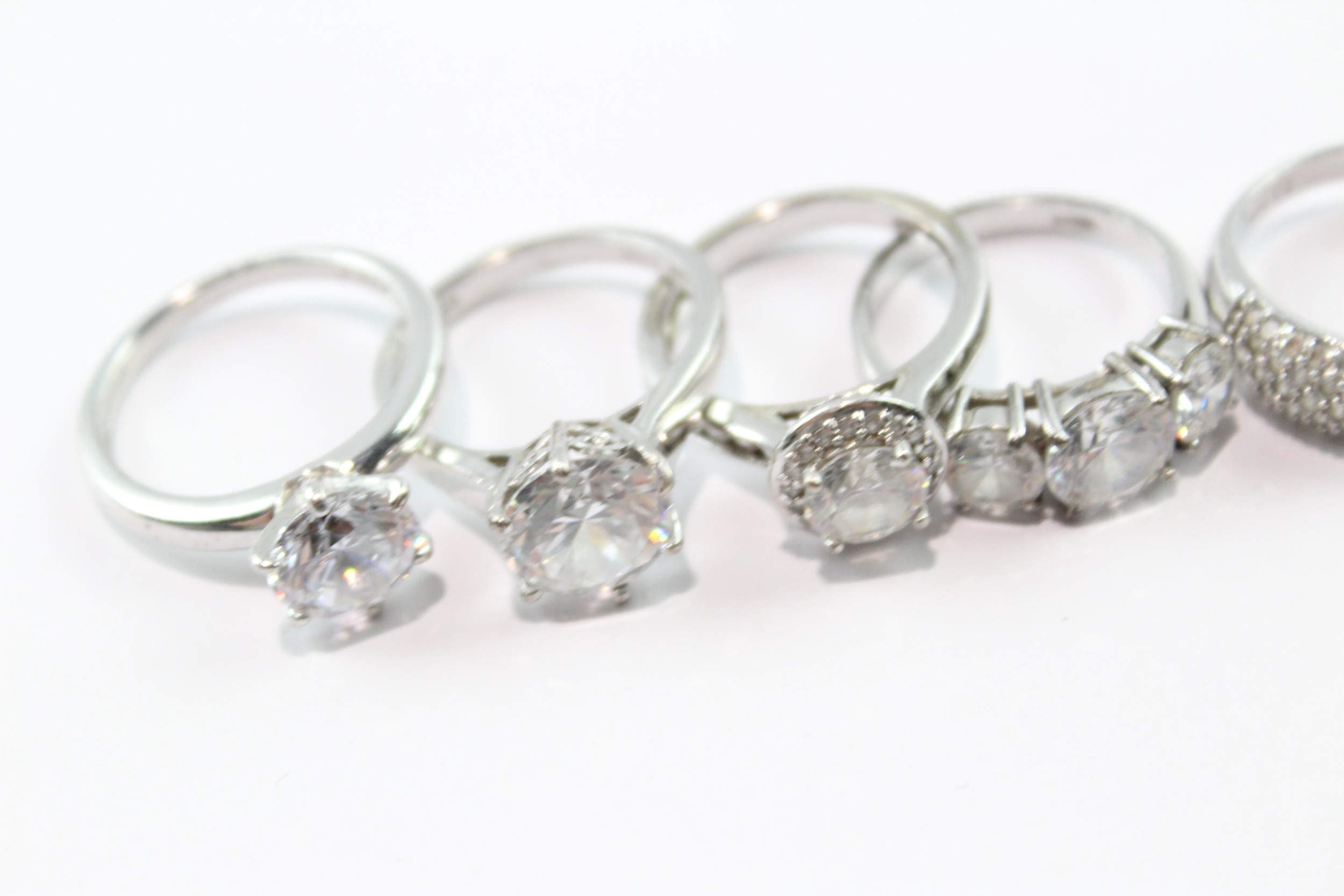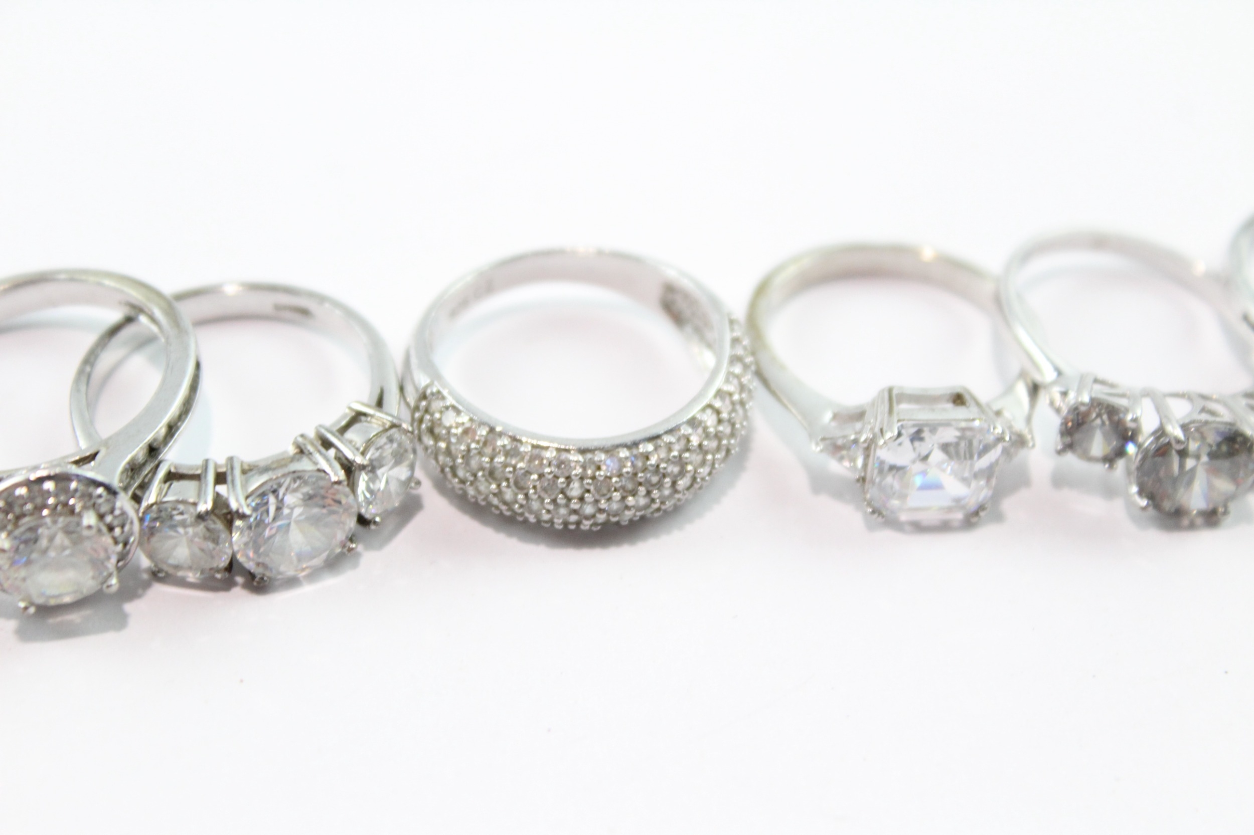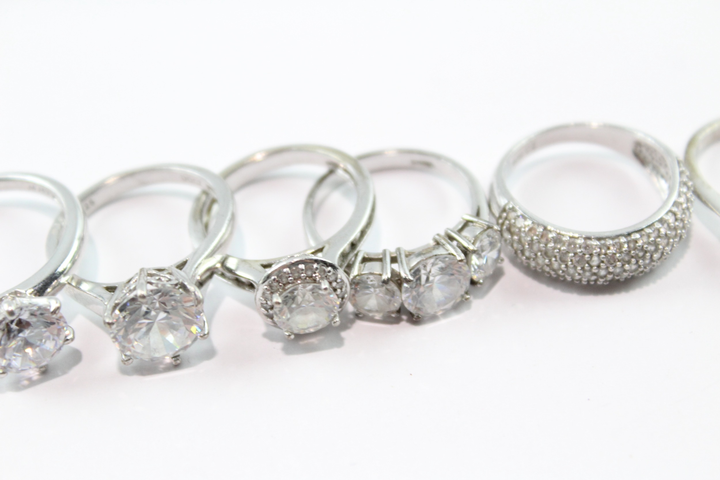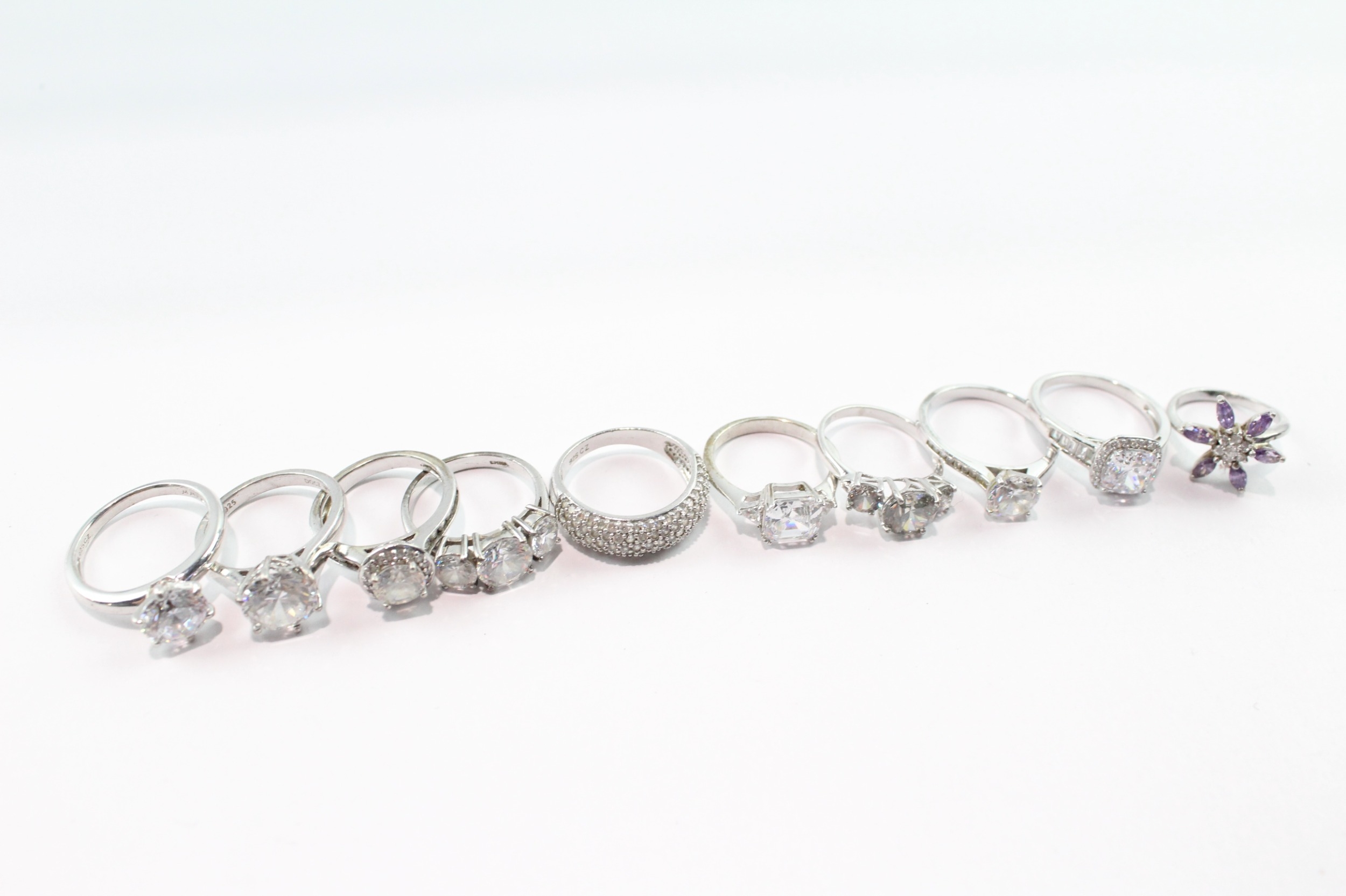 Collection of Sterling Silver Rings inc. Stone Set, Clear Gemstone x 10 37g