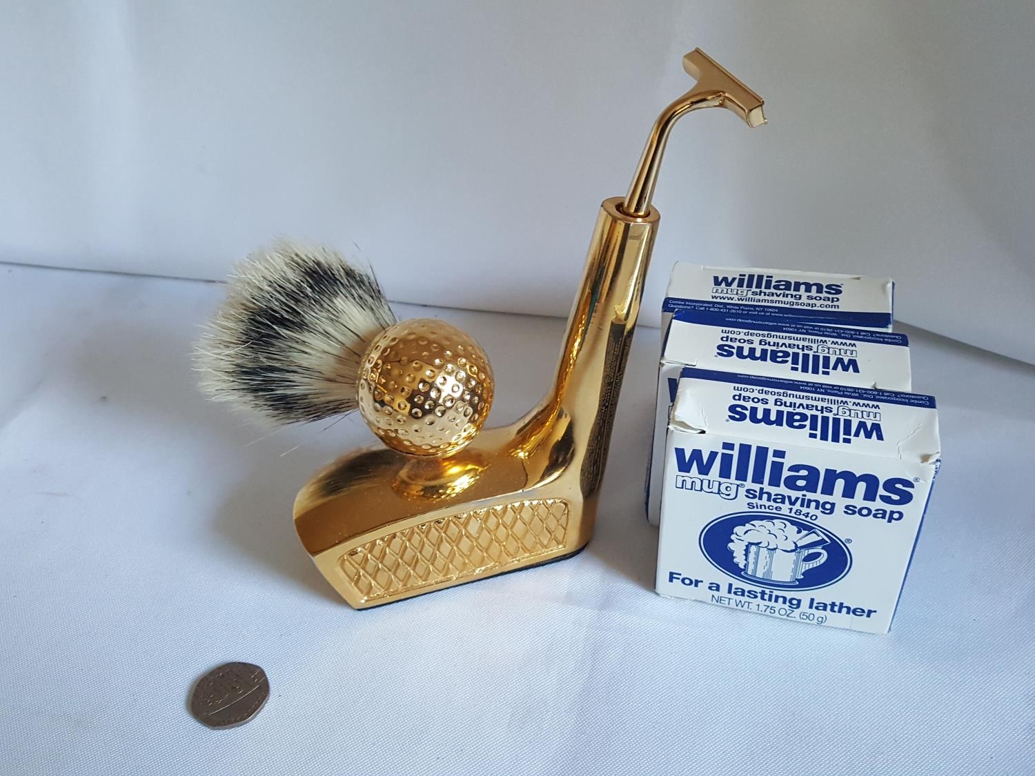 solid brass golf themed shaving set with soap