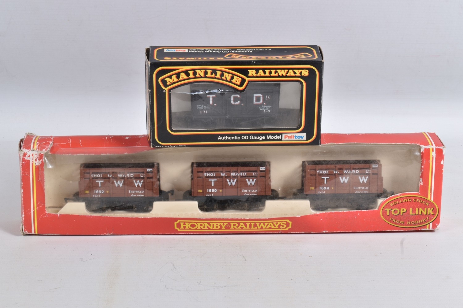 A QUANTITY OF BOXED AND UNBOXED OO GAUGE FREIGHT ROLLING STOCK, majority are open wagons, coke wagons and box vans, to include boxed Hornby Top Link 3 Coke Wagons - Thomas Ward (R6037), other boxed items by Bachmann and Mainline, unboxed items by Hornby, Tri-ang, Bachmann, Mainline & Dapol etc., majority in very good condition, small number with minor damage and wear, boxes all with minor damage and wear