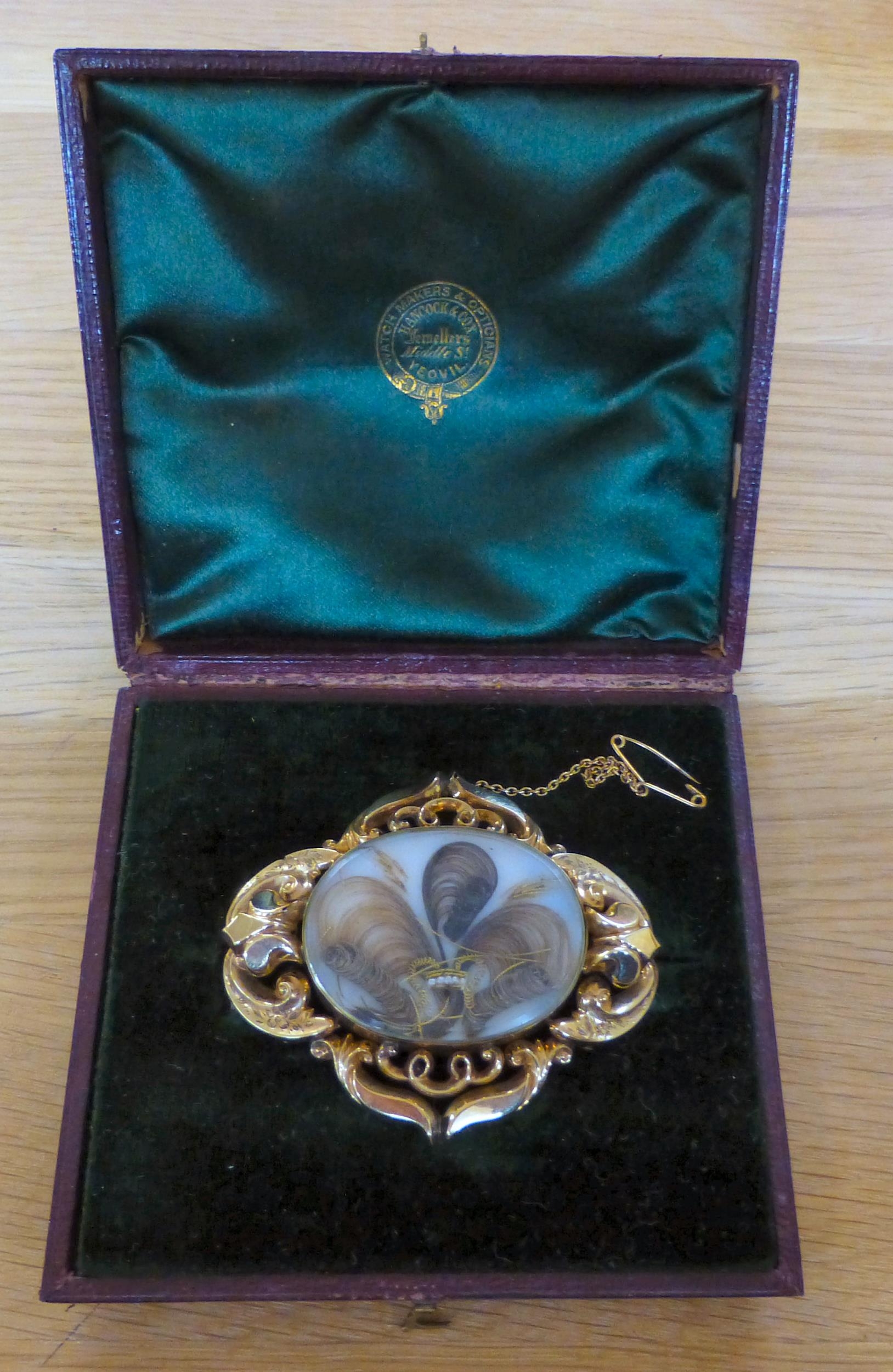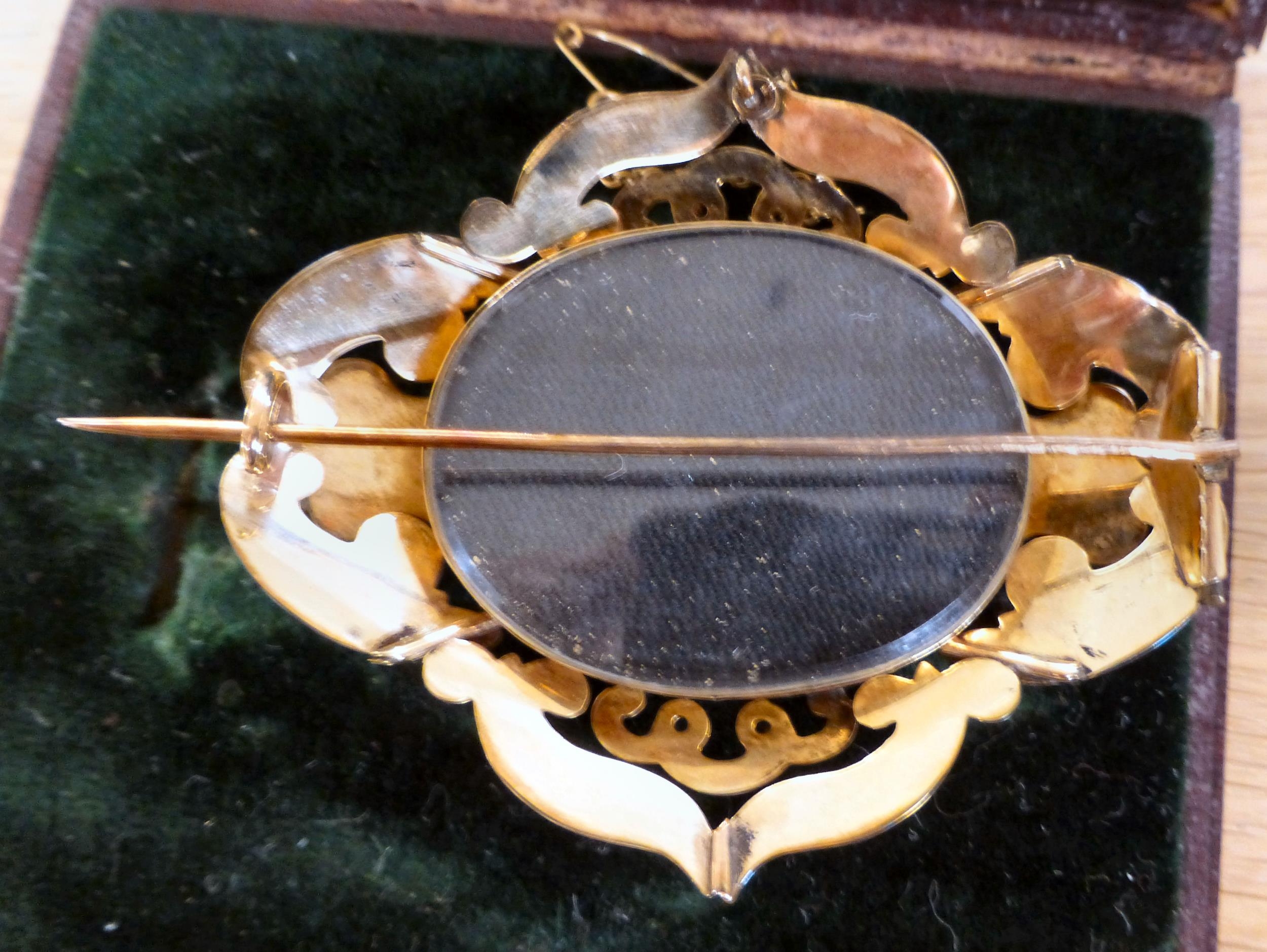 A yellow metal mourning brooch boxed (approx. gross weight 23 grams)
