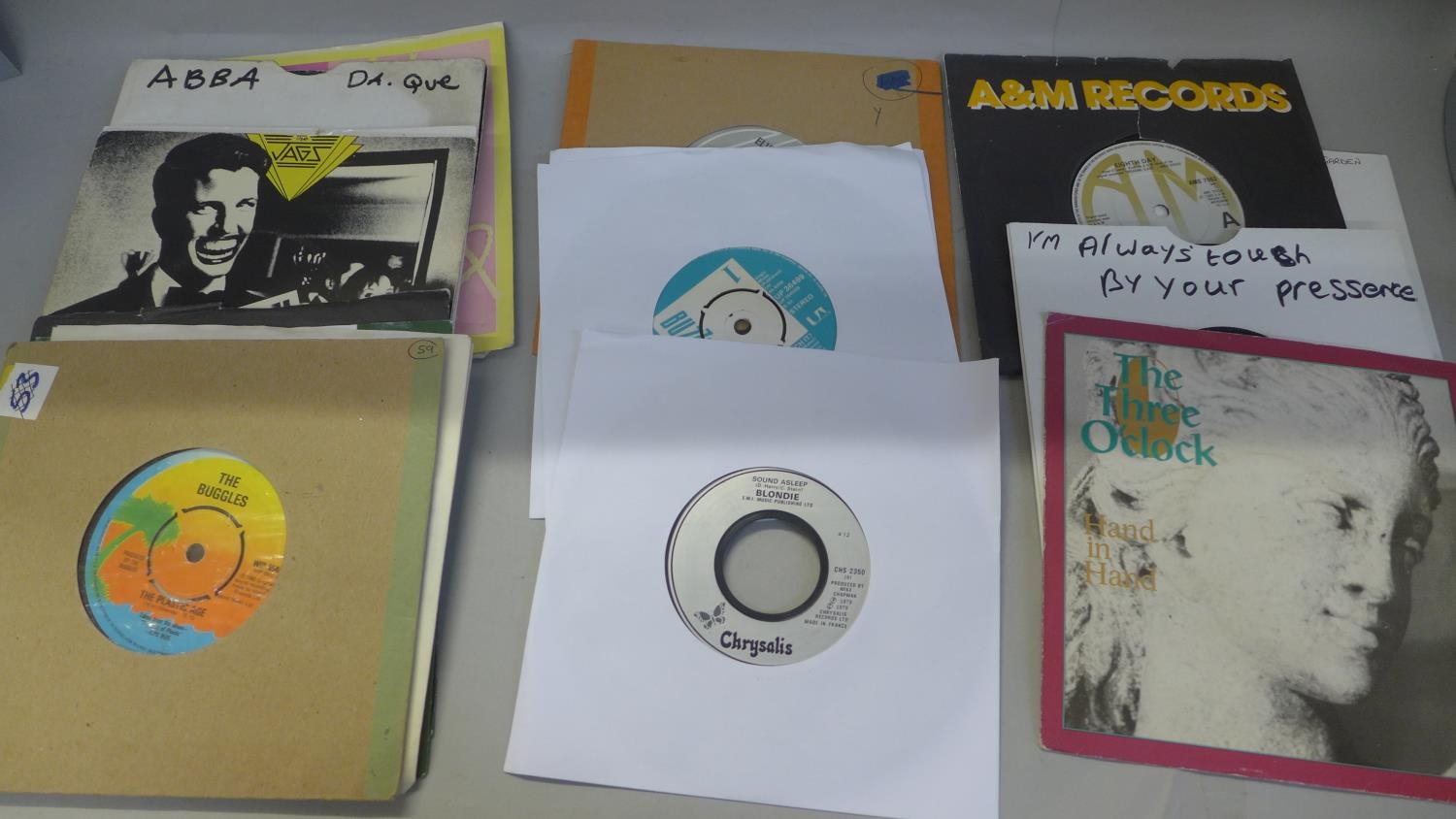 Forty punk and new wave 7" vinyl singles
