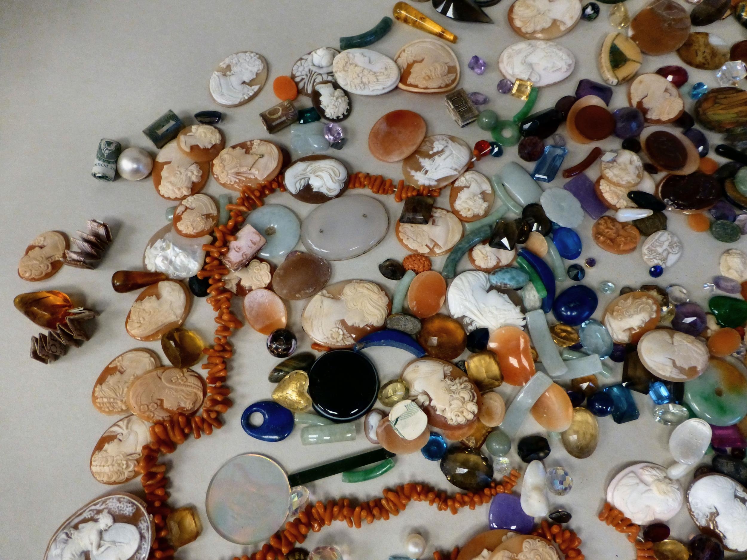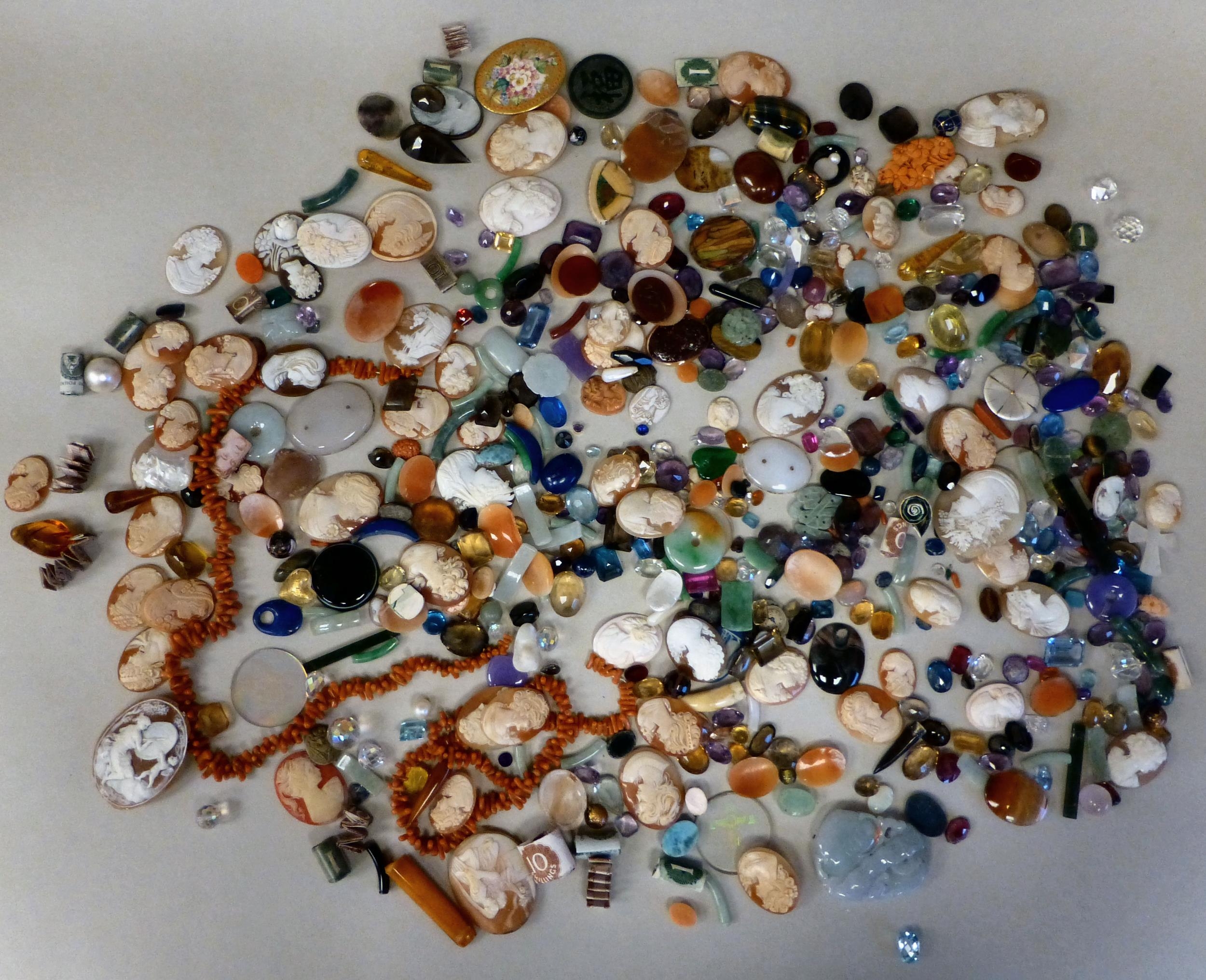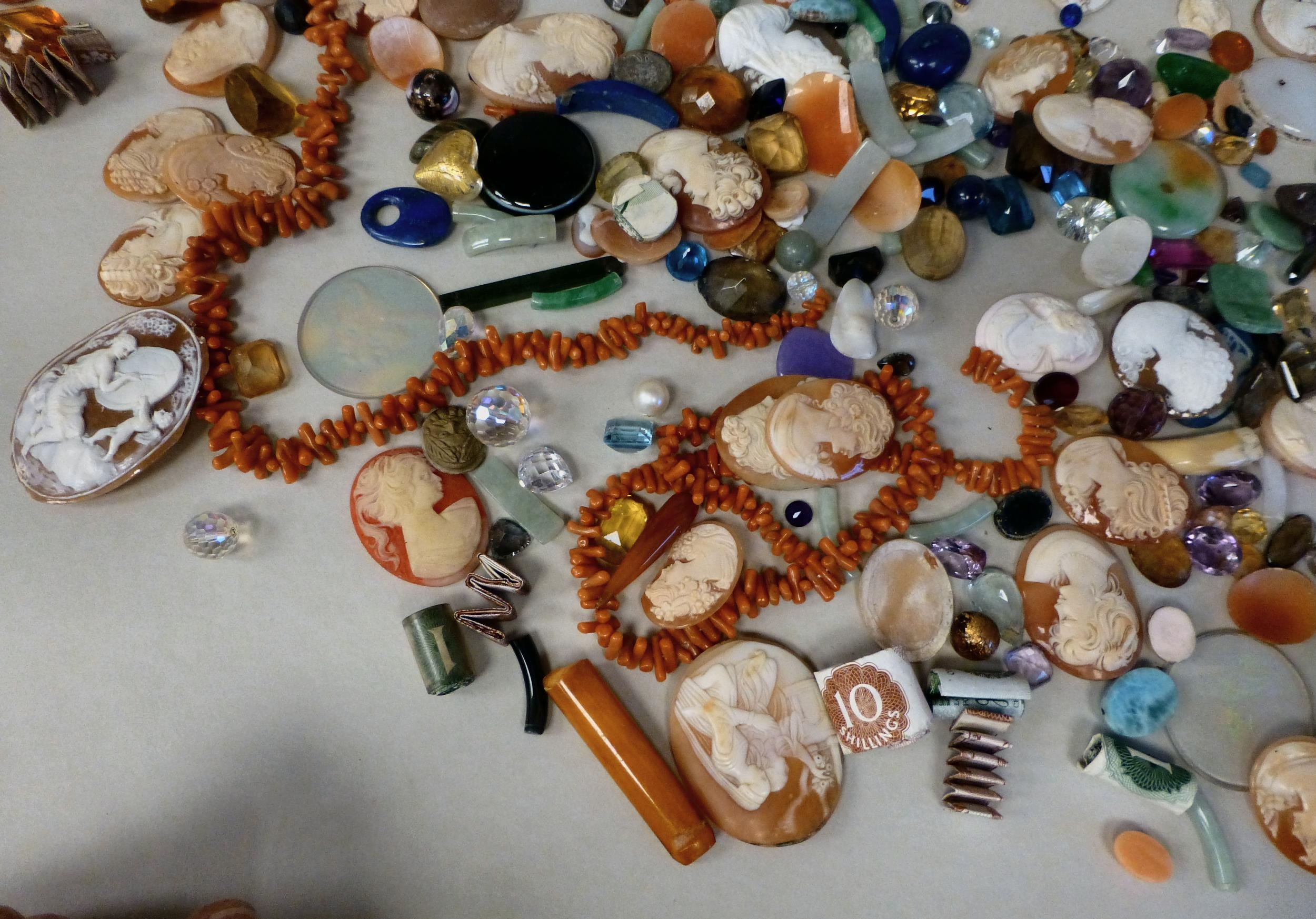 Items of personal ornament: to include loose coloured stones; coral fragments; and unmounted cameos