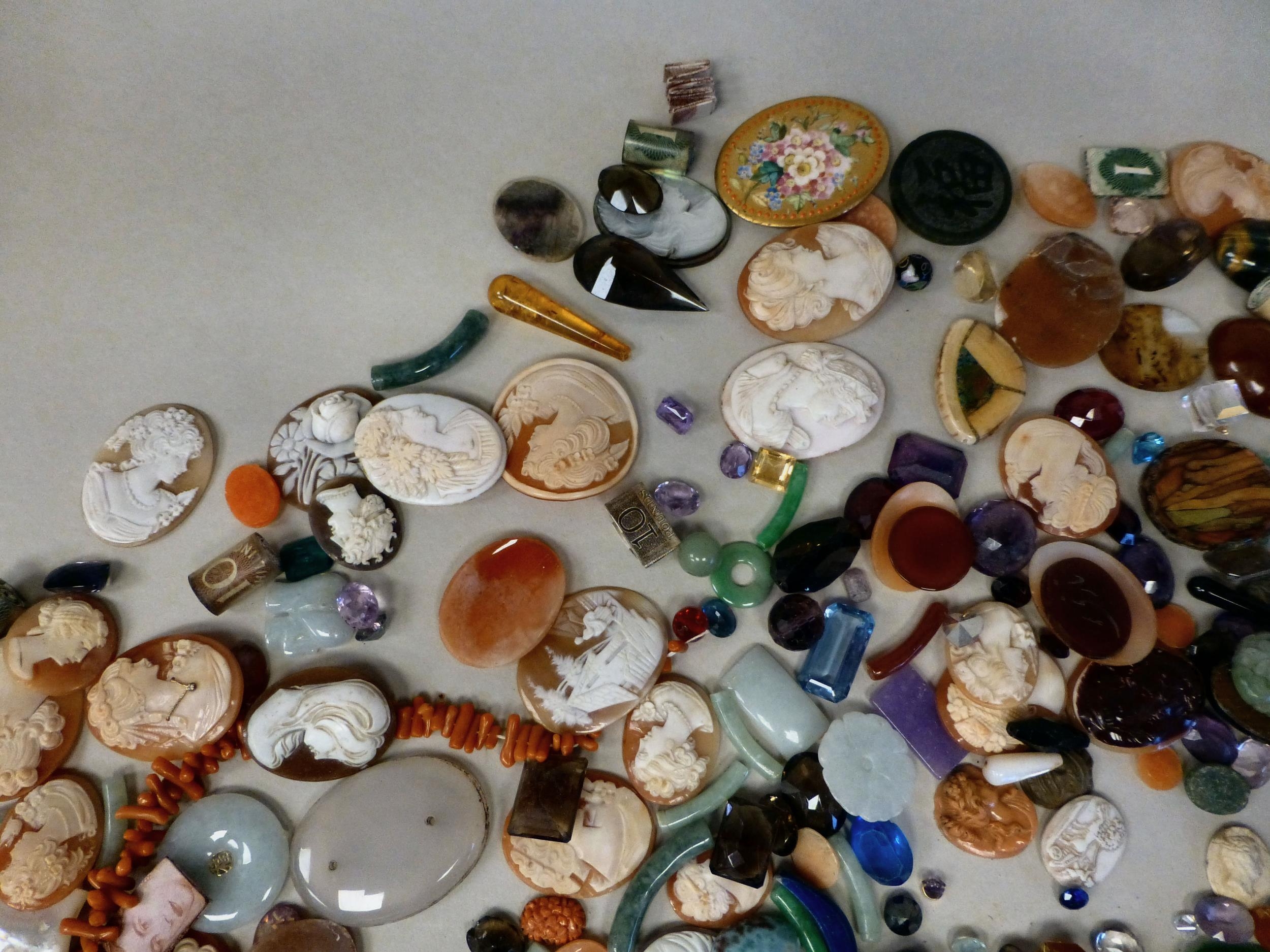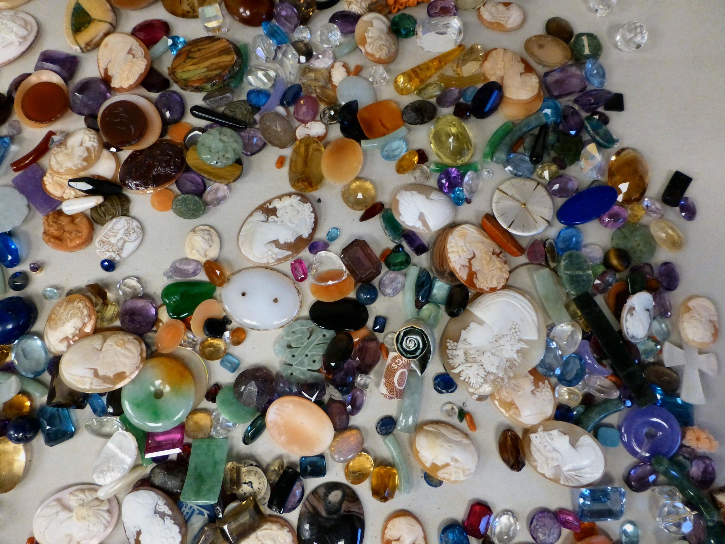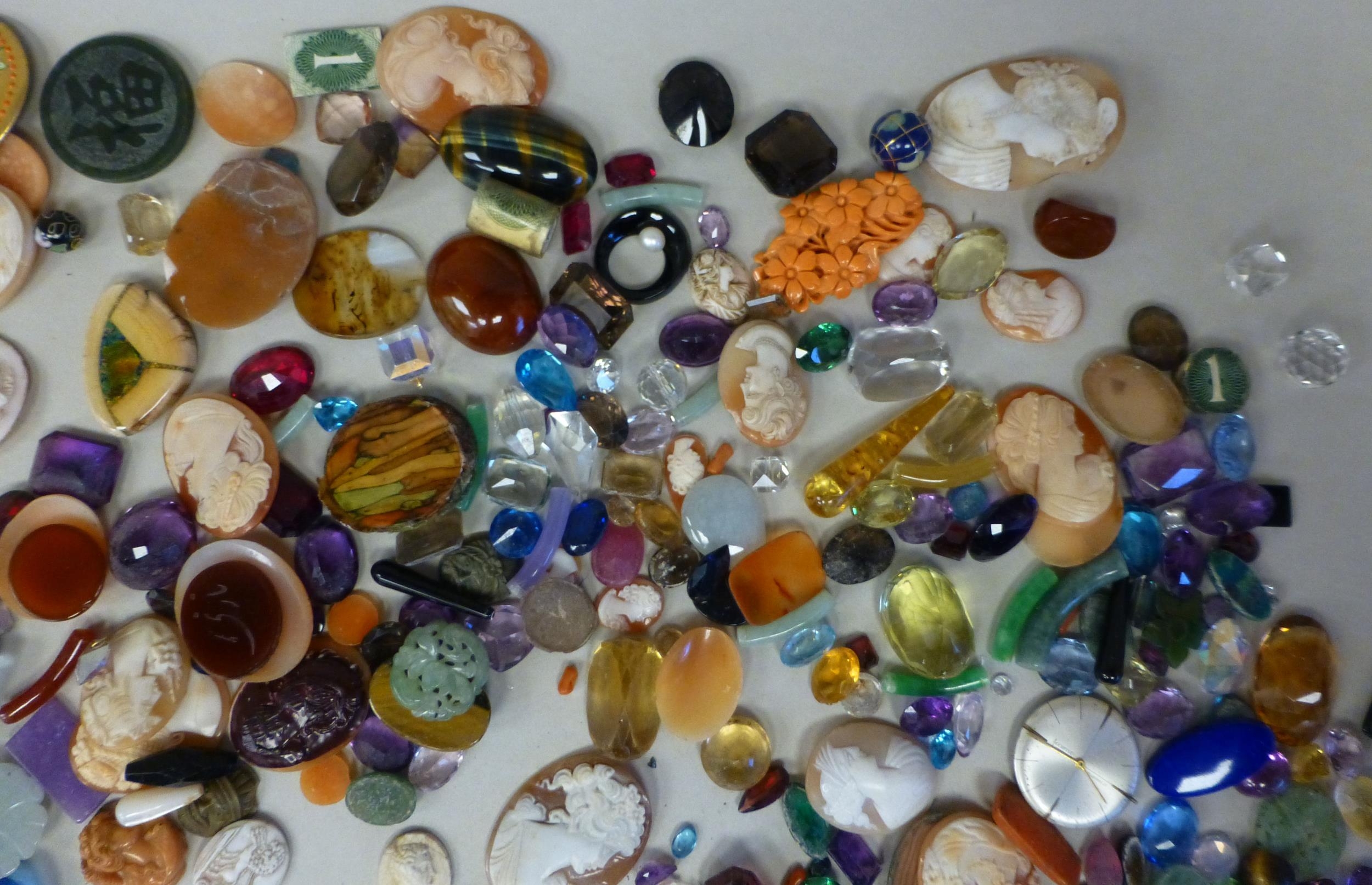 Items of personal ornament: to include loose coloured stones; coral fragments; and unmounted cameos