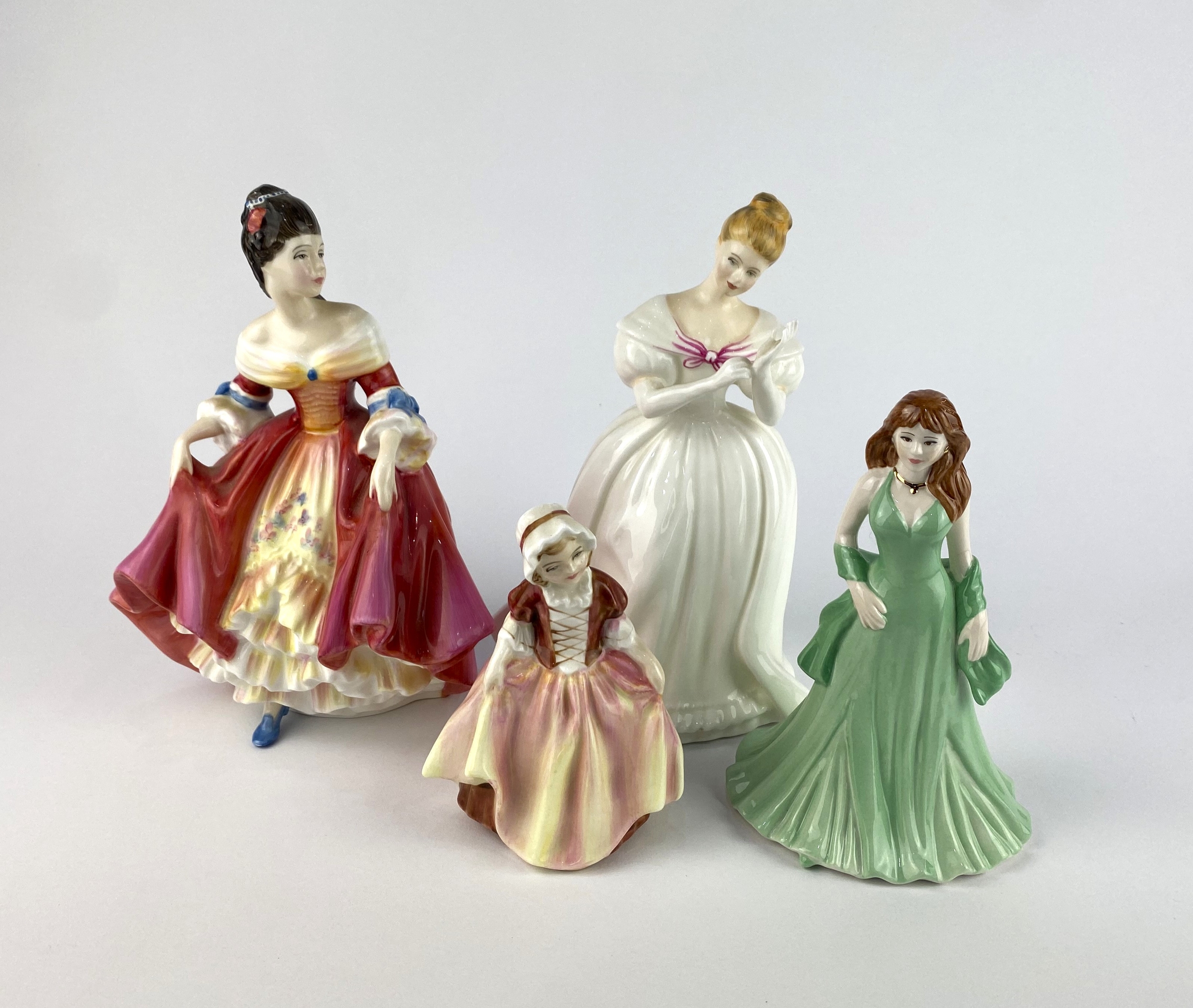 Three Royal Doulton porcelain models of ladies comprising Southern Belle, Denise and Dinky Do, together with a Coalport porcelain model 'My Sister My Friend', tallest 21cm high (4)