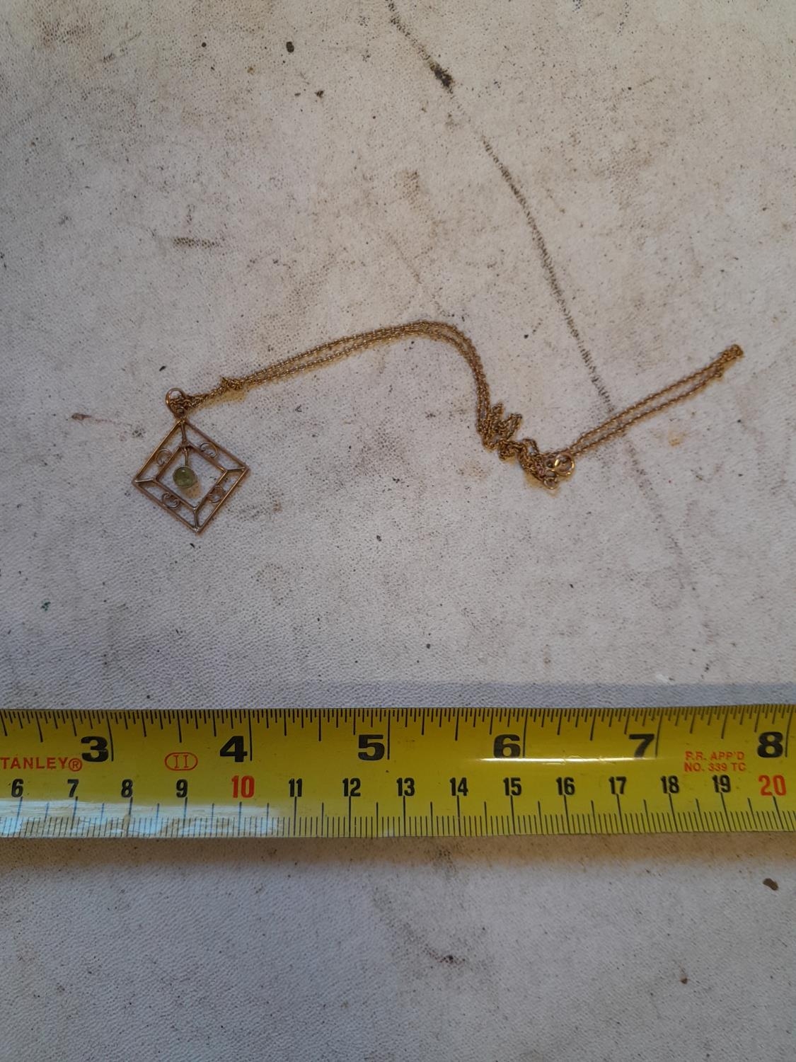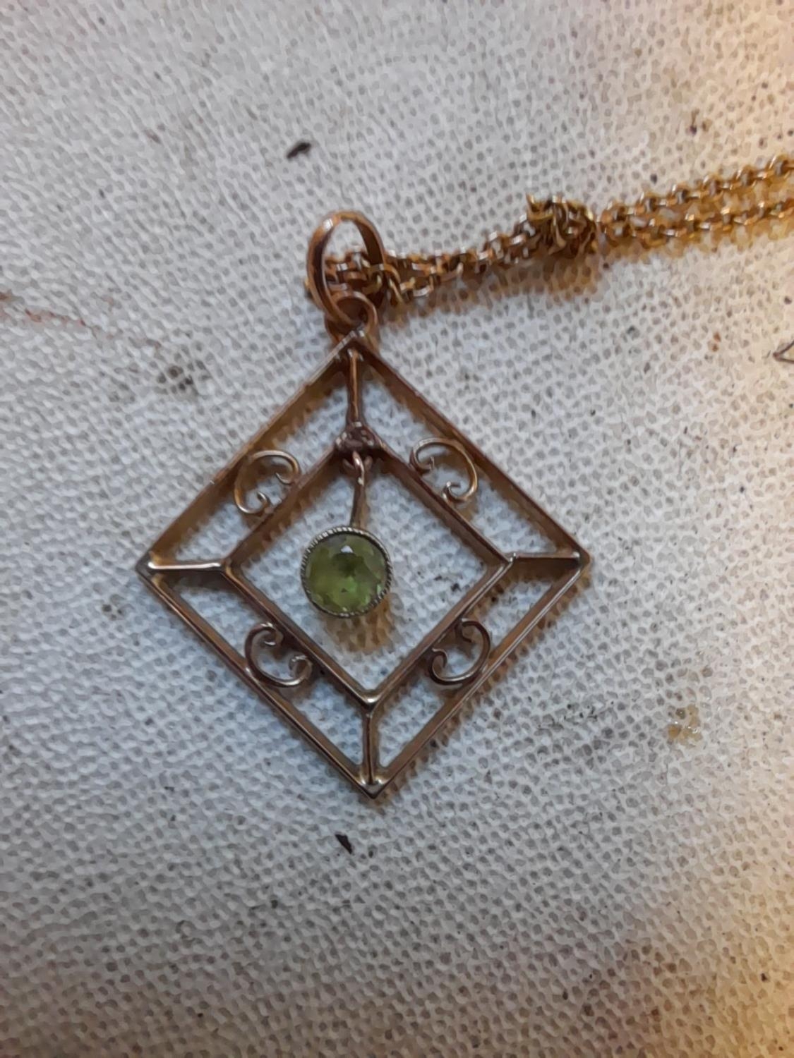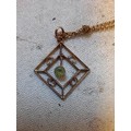 Unmarked but tested 9 ct gold pendant set with peridot on chain, 3.3 g