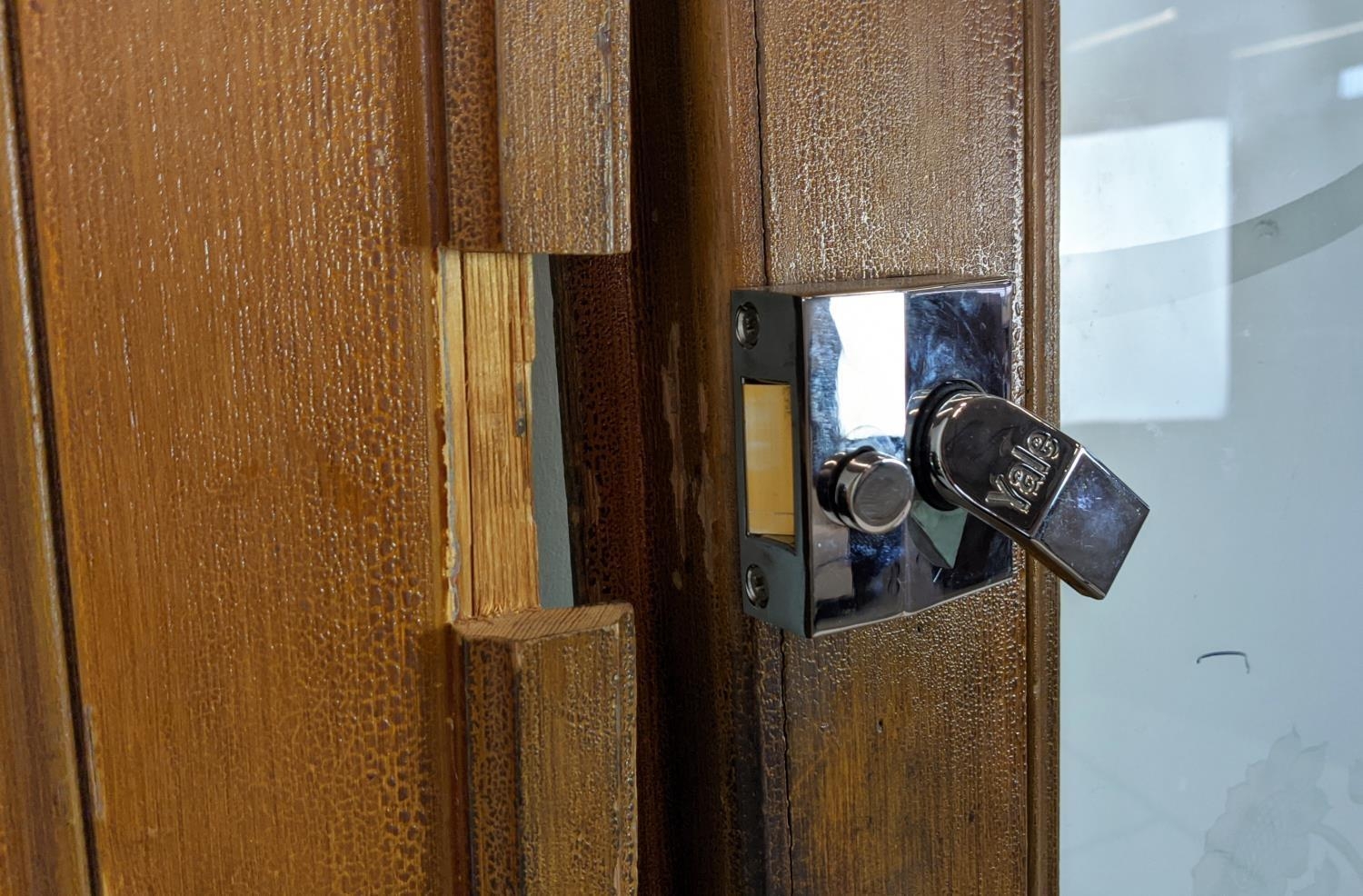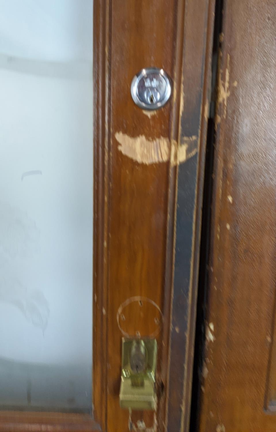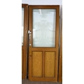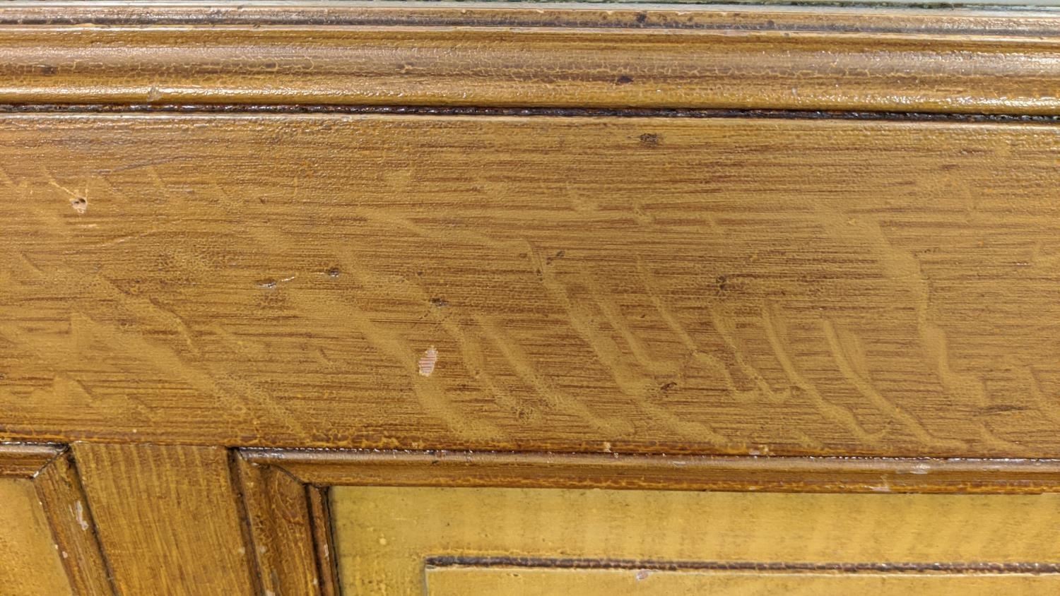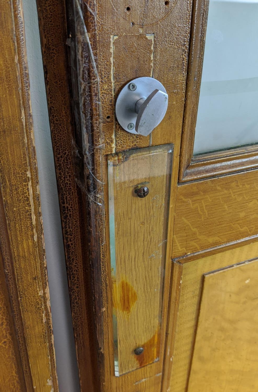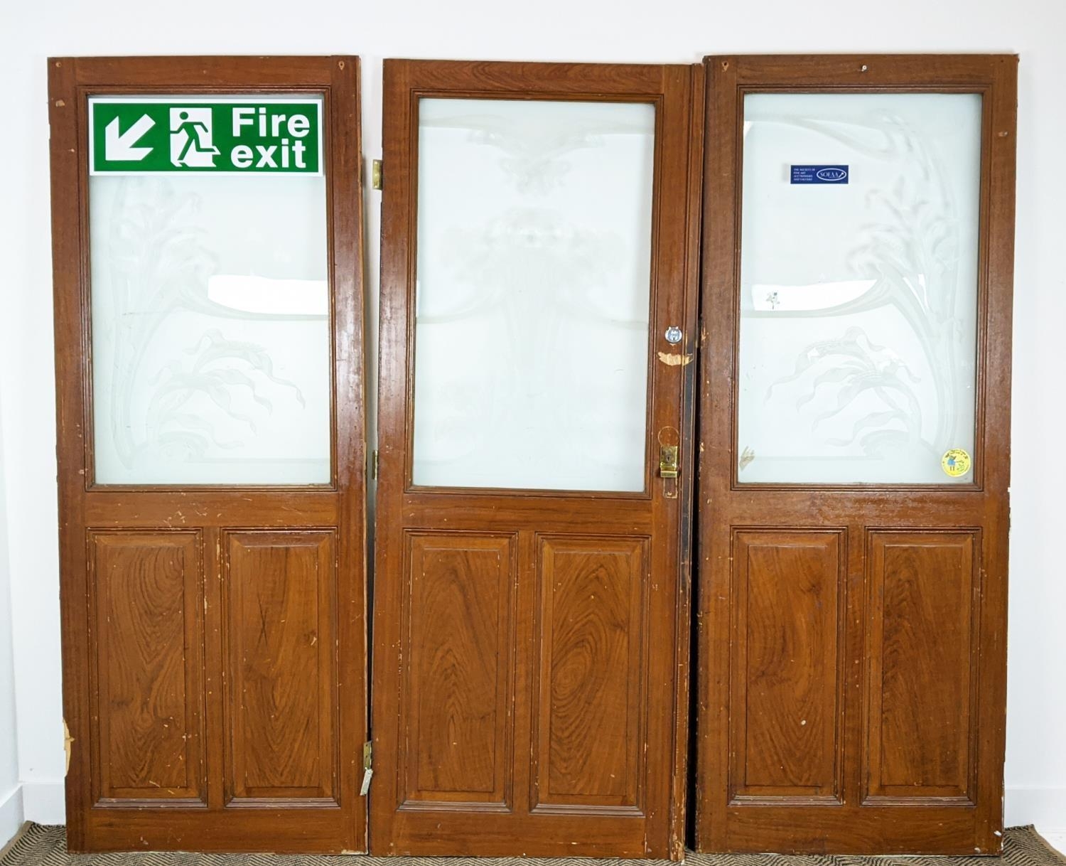 DOOR PANELS, a set of three late 19th century Dutch, grain painted with Art Nouveau etched glass, each 207cm H x 80cm W. (3)