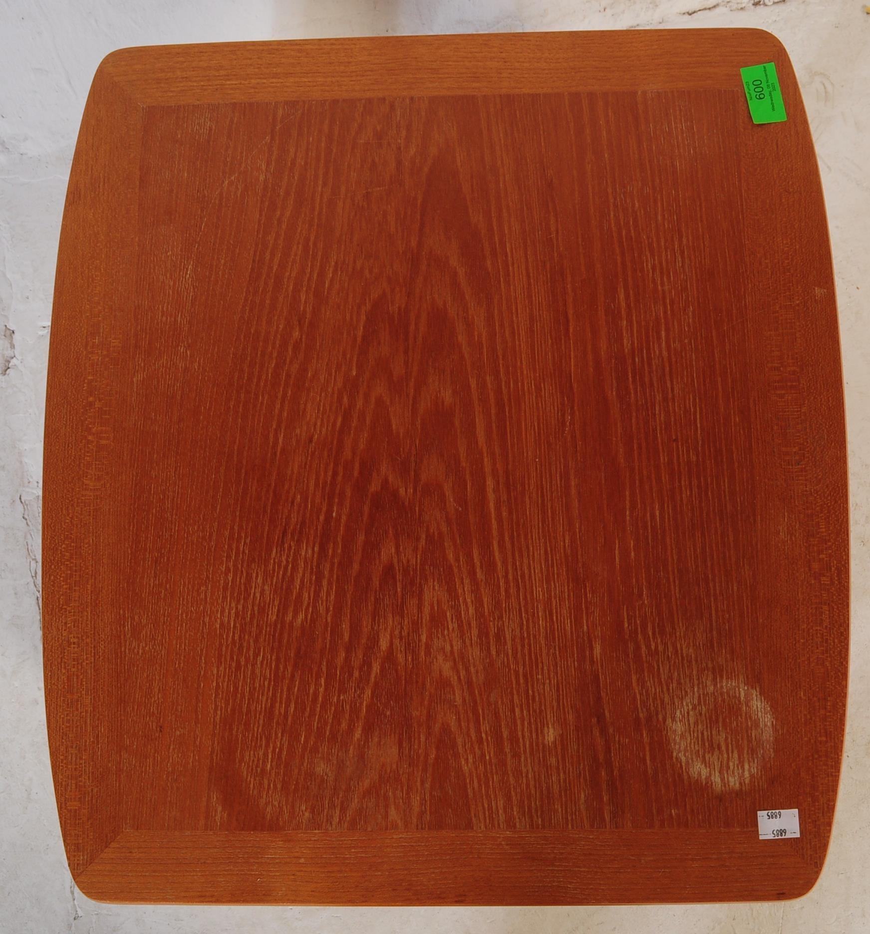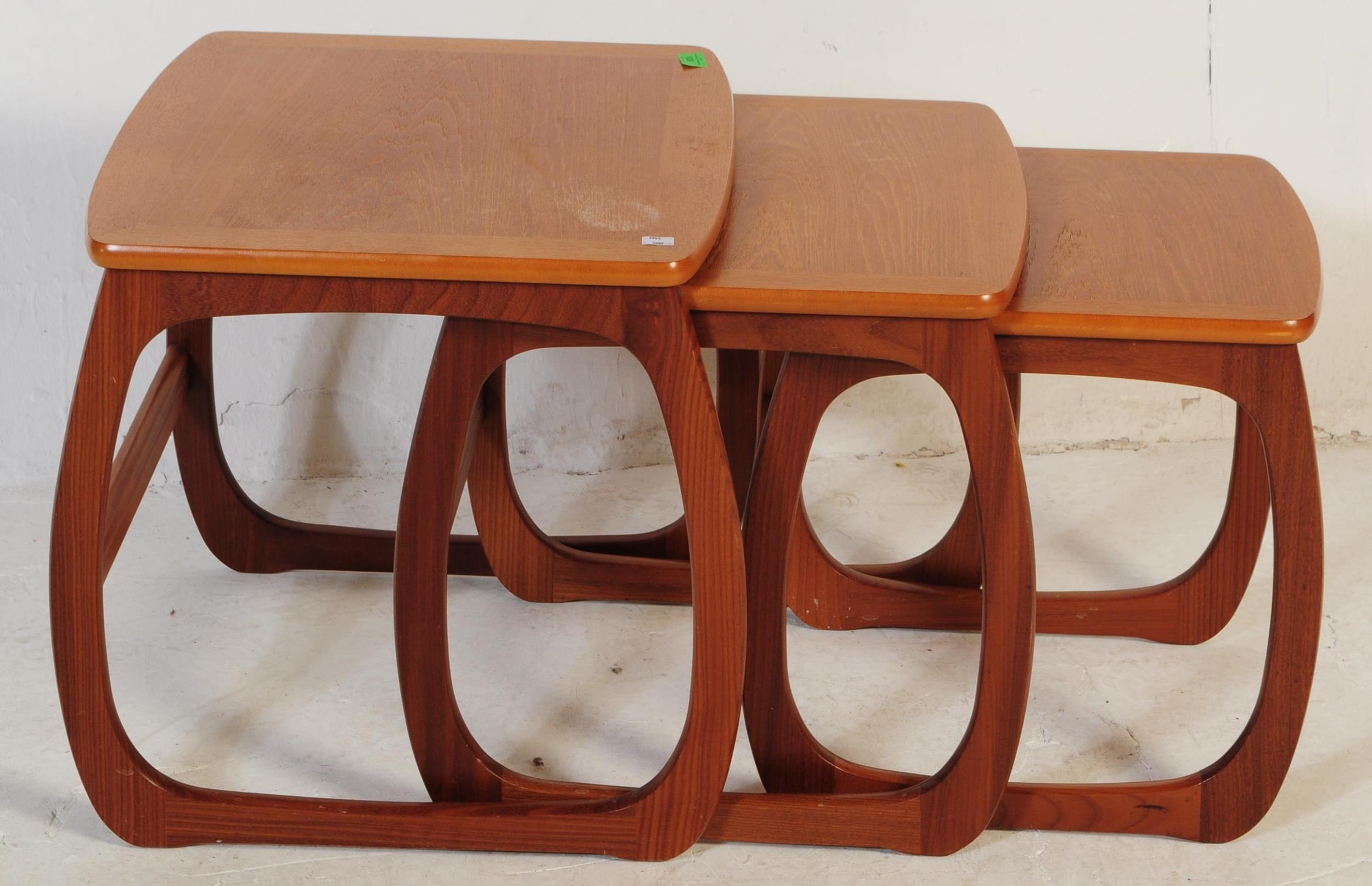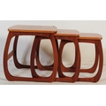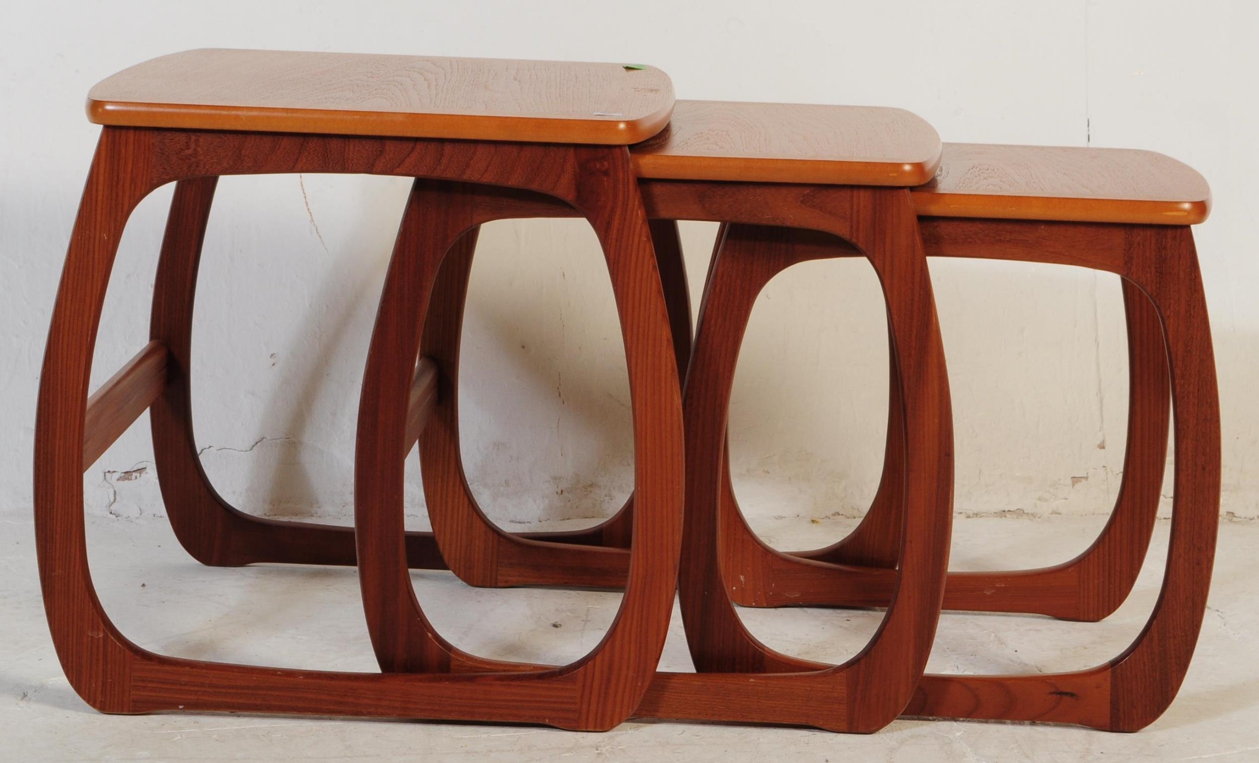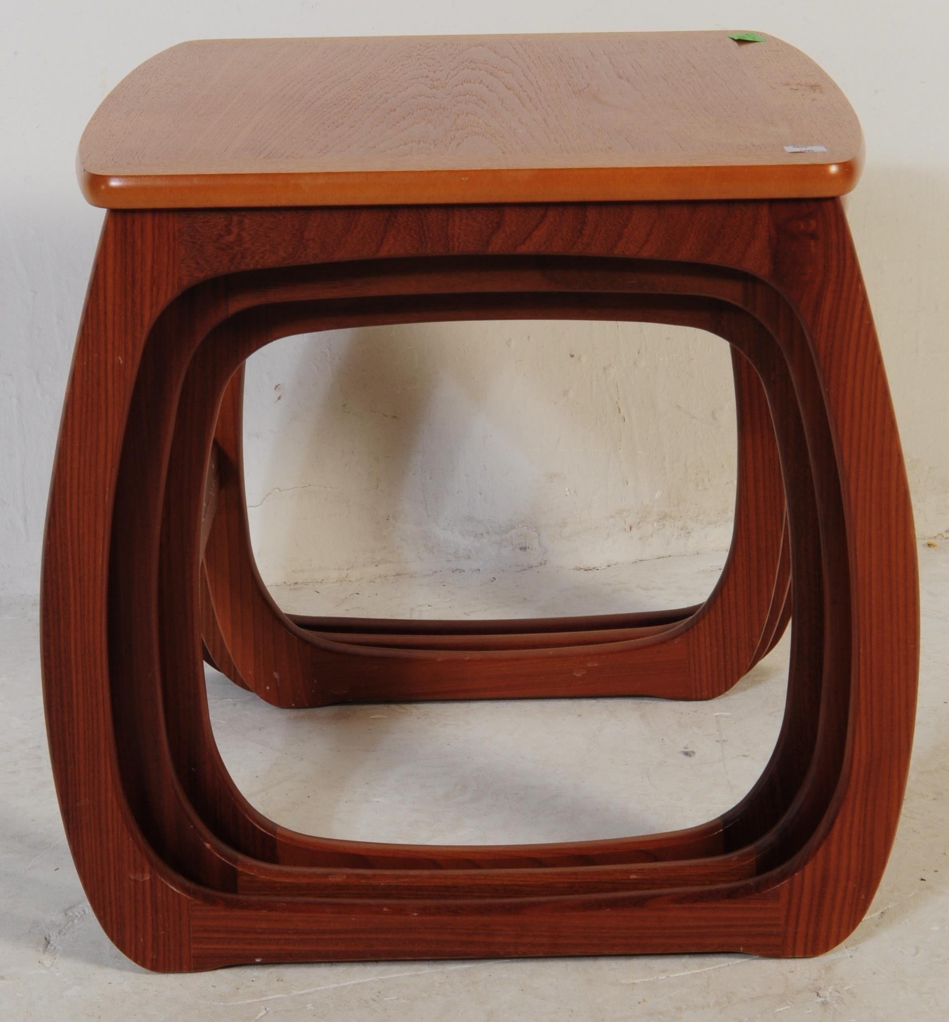 Nathan Furniture for Parker Knoll - A vintage late 20th century circa 1980s nest of teak tables. Rectangular form with quadrille style legs. Makers mark to underside. Measures approx. 51x48x53cm