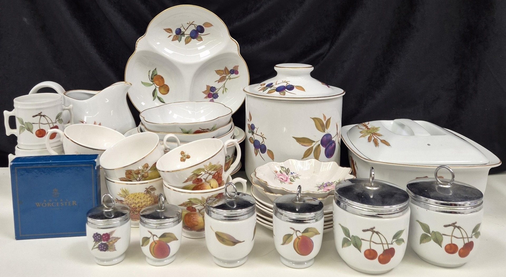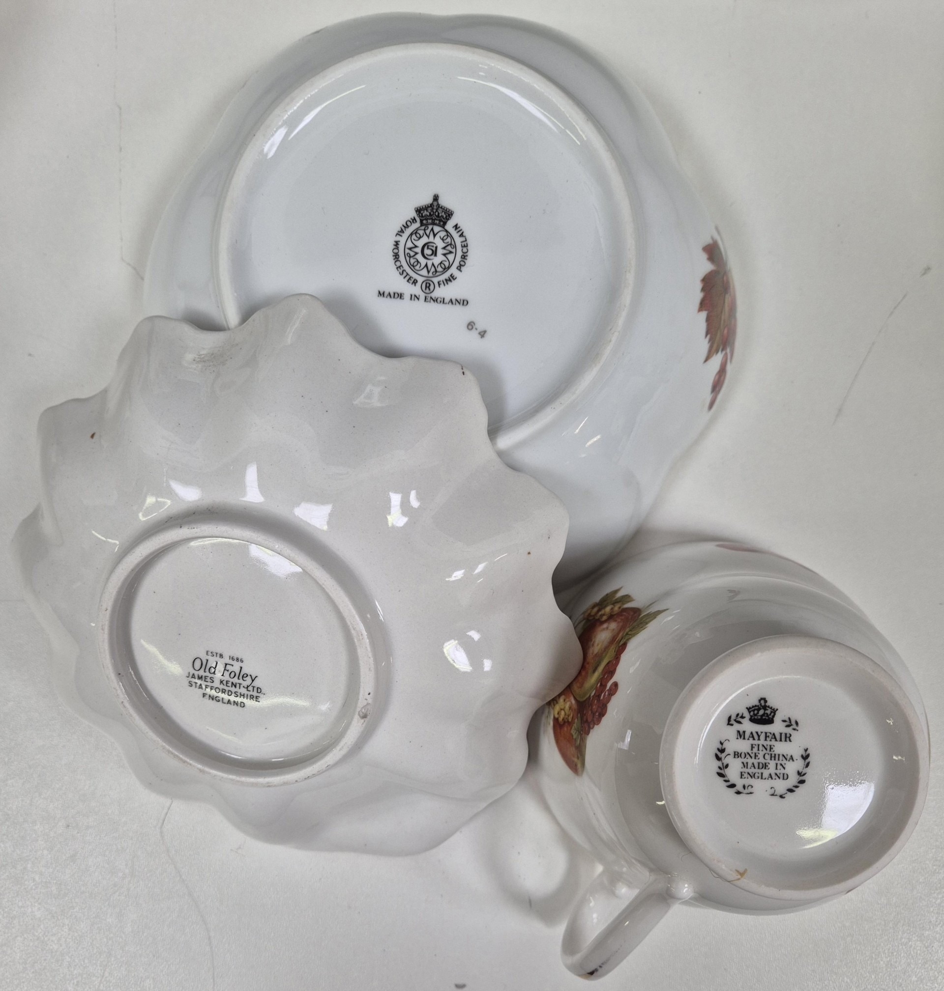 Collection of similar-patterned tableware. Makers include Royal Worcester, Mayfair, James Kent Old Foley, etc. Approx. 32 pieces in total.