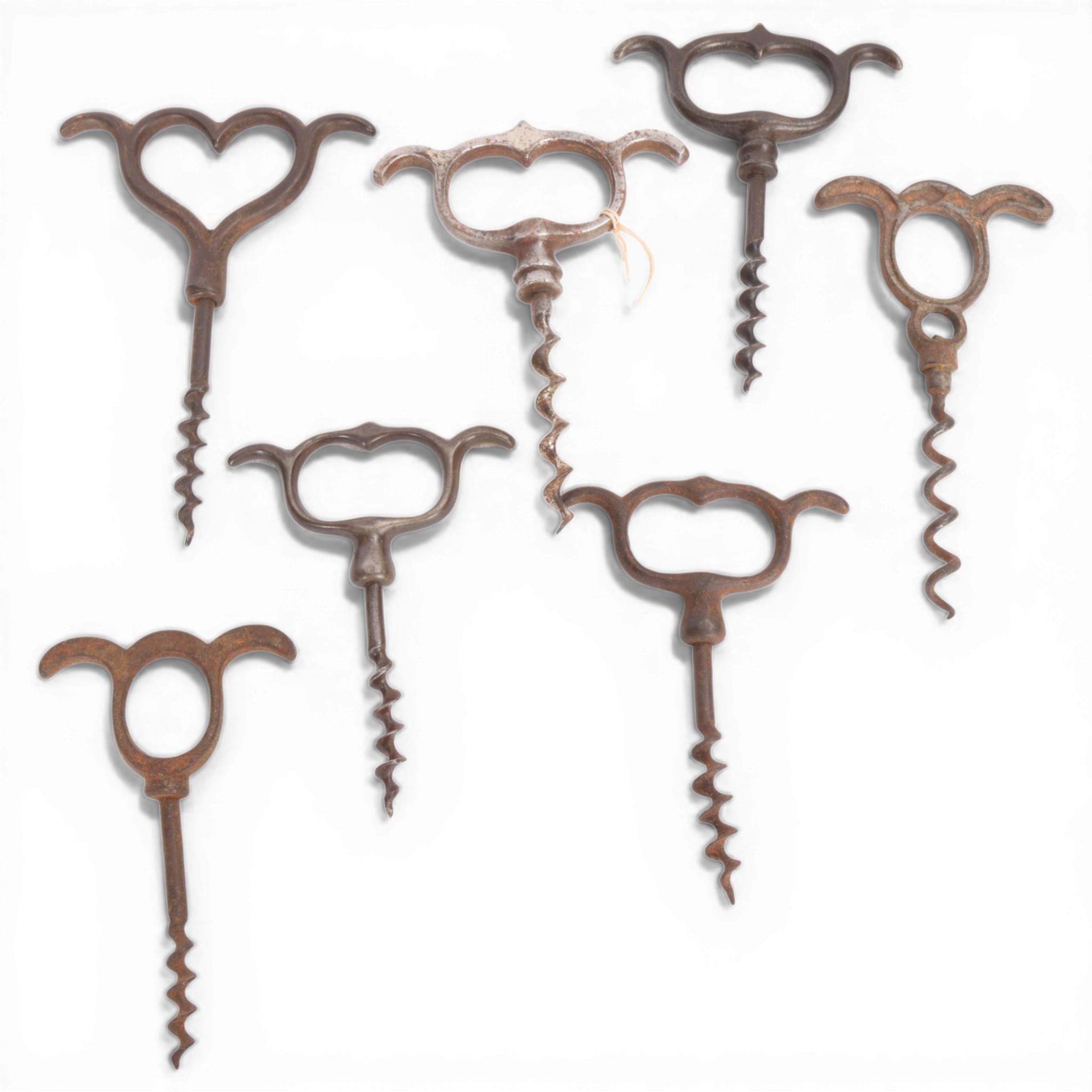 7 x 19th century 4 finger eyebrow type corkscrews, longest 13cm
