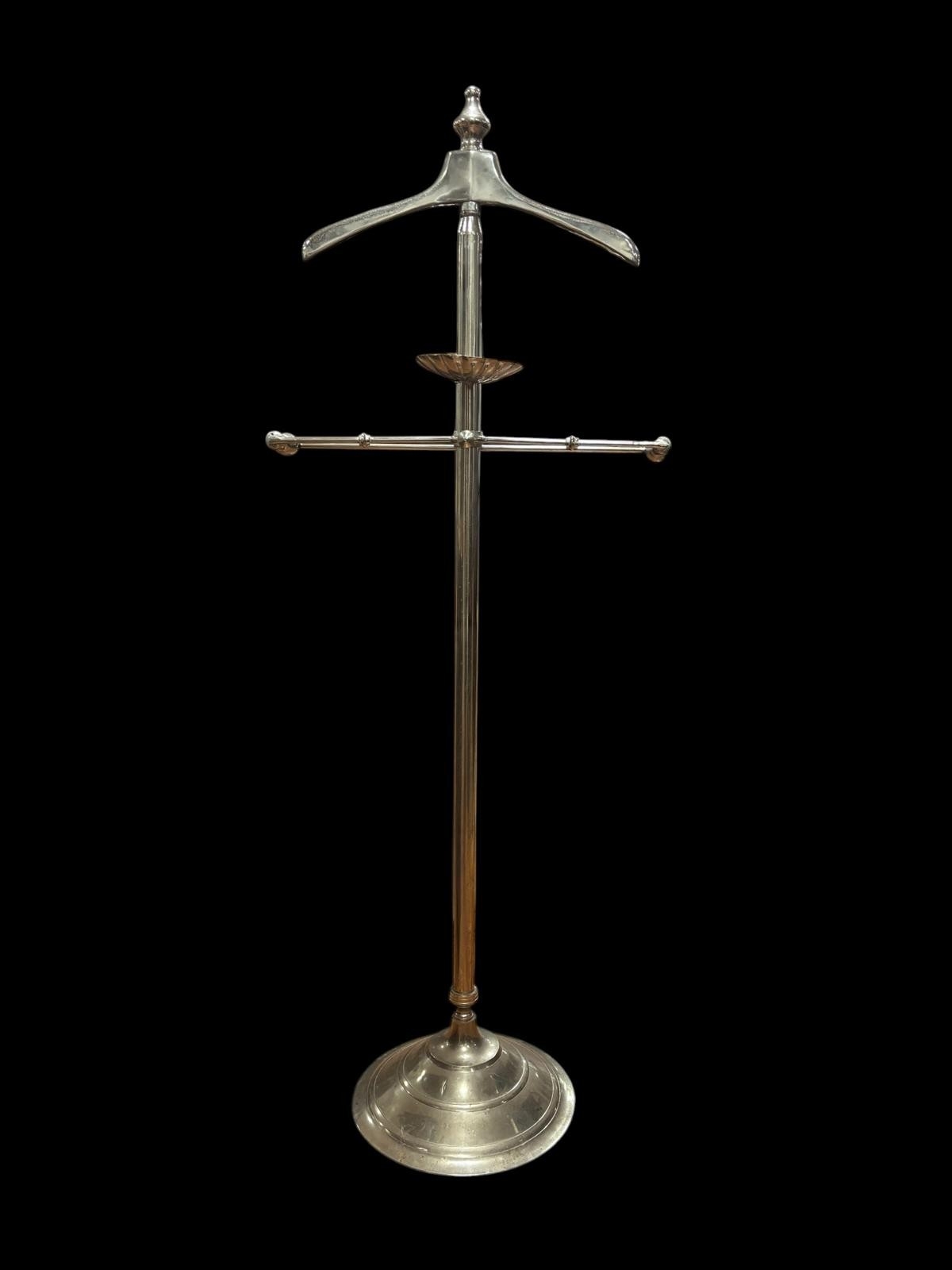 A VINTAGE CHROME VALET of typical form the cylindrical column raised on a circular spreading foot 138cm (h) x 53cm (w)