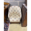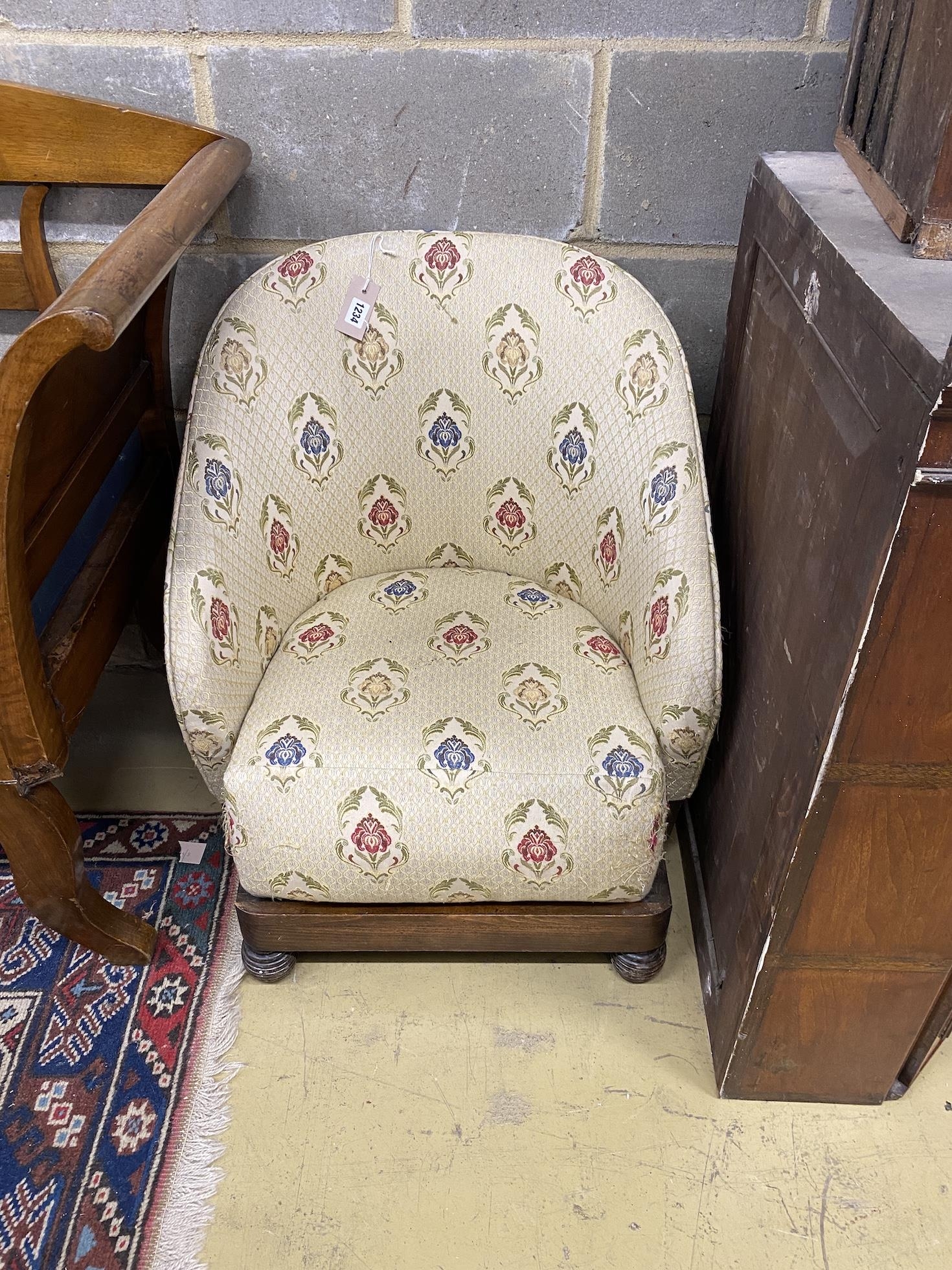 A 1920's tub framed upholstered child's chair, width 58cm, depth 60cm, height 70cm