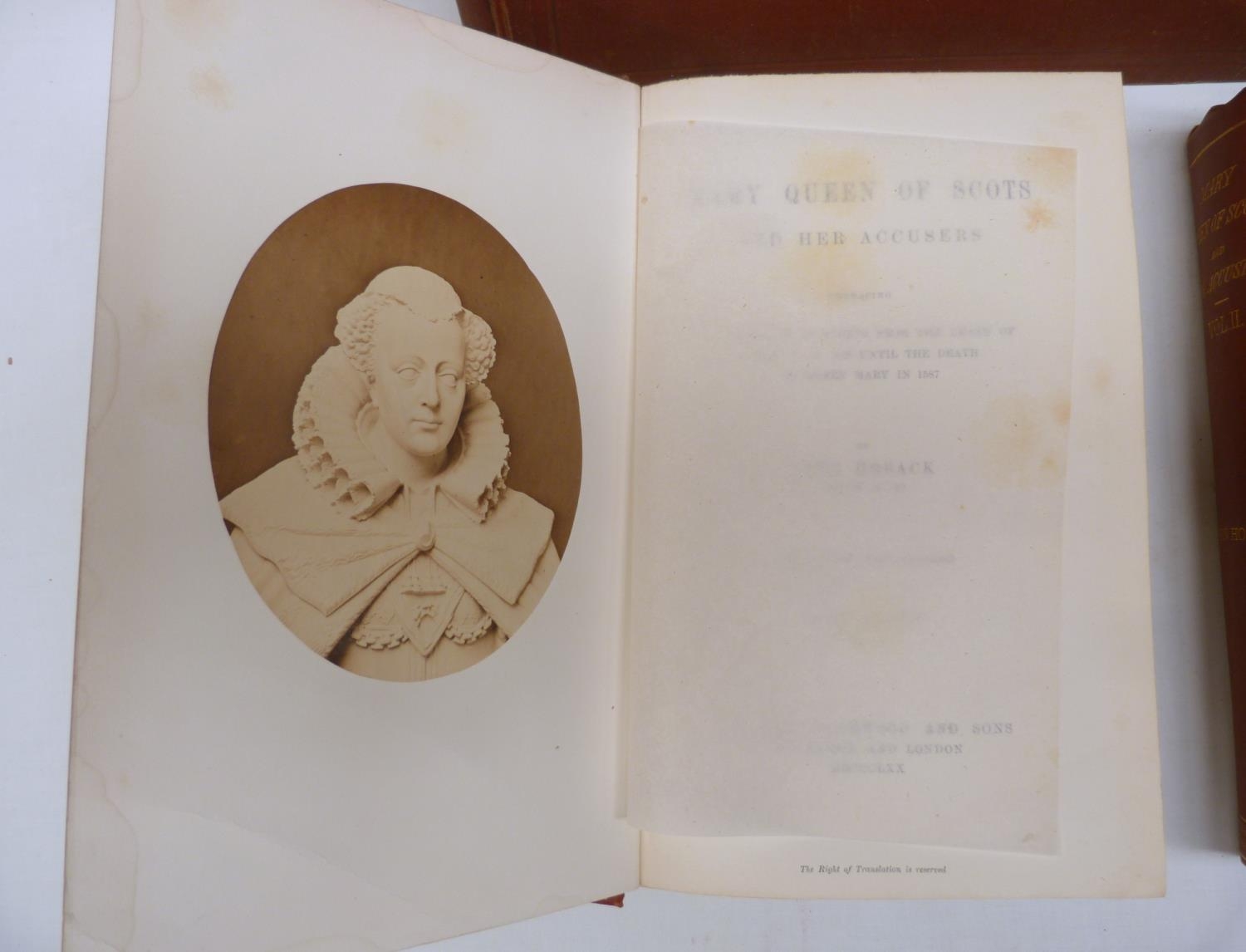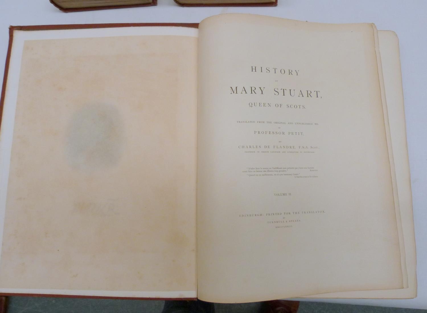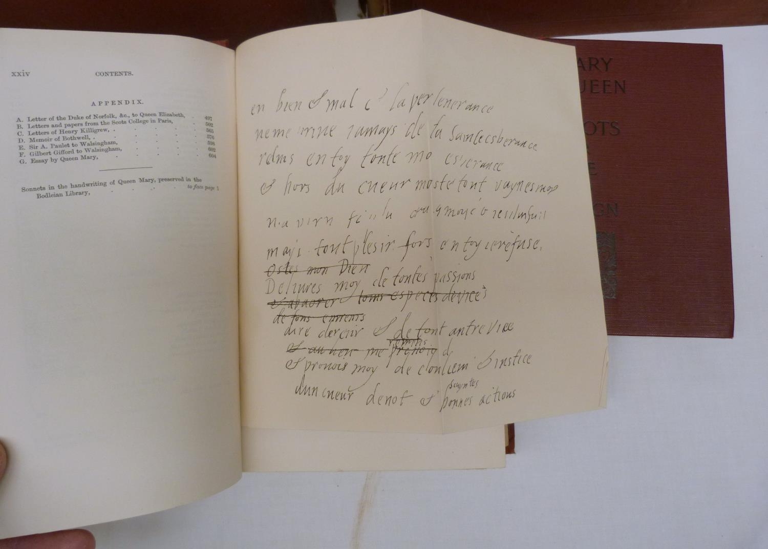DE FLANDRE C. History of Mary Stuart, Queen of Scots. 2 vols. Large paper copy no. 16. Port. frontis. Quarto. Poor bdgs. Edinburgh, 1873; also John Hosack, Mary Queen of Scots & Her Accusers, 2 vols., orig. cloth, 1870 & 1 other re. Mary Queen of Scots. (5).