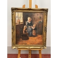 Interior Scene, with mother and two children, oil on canvas, signed indistinctly lower right,