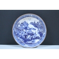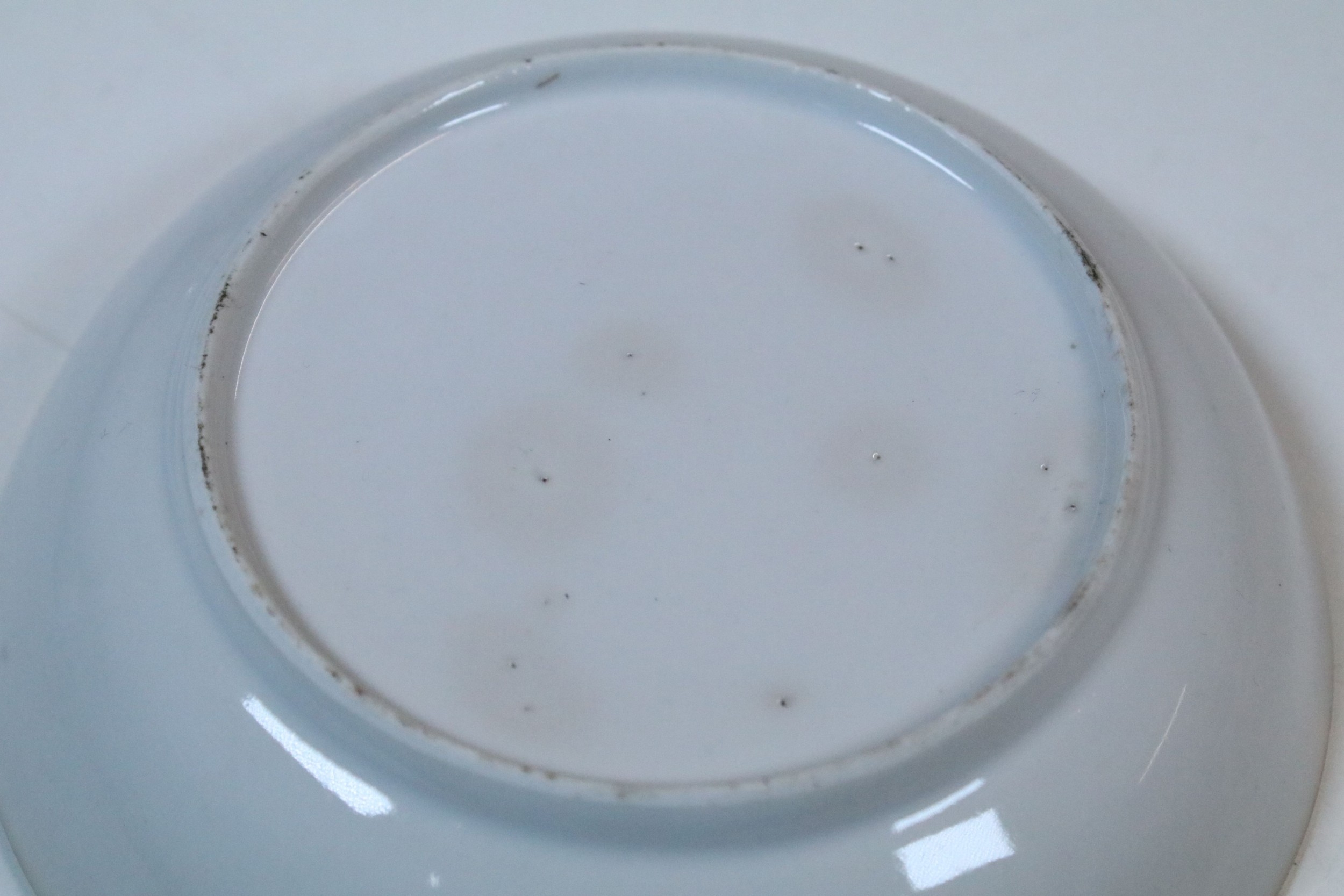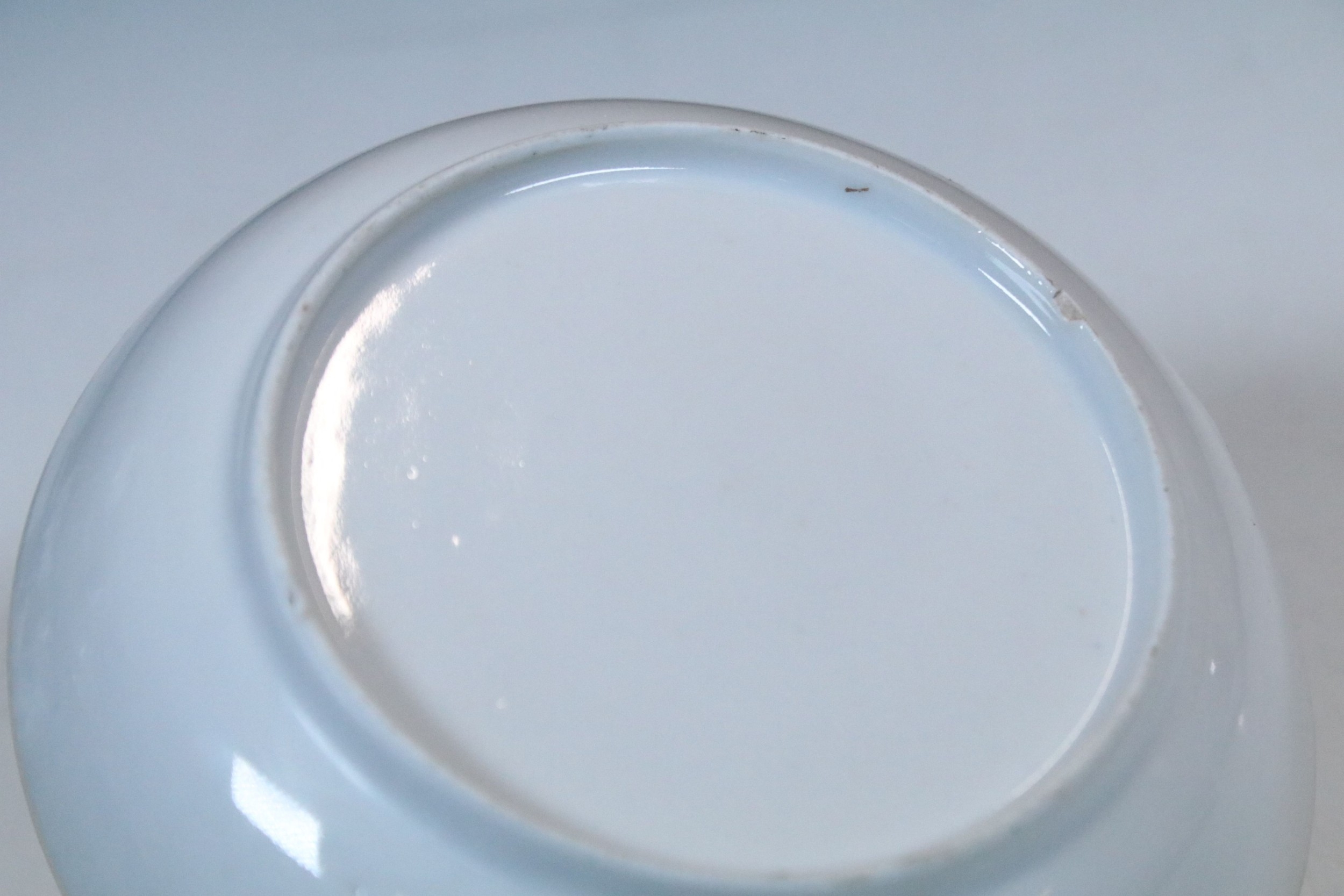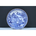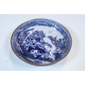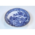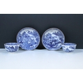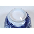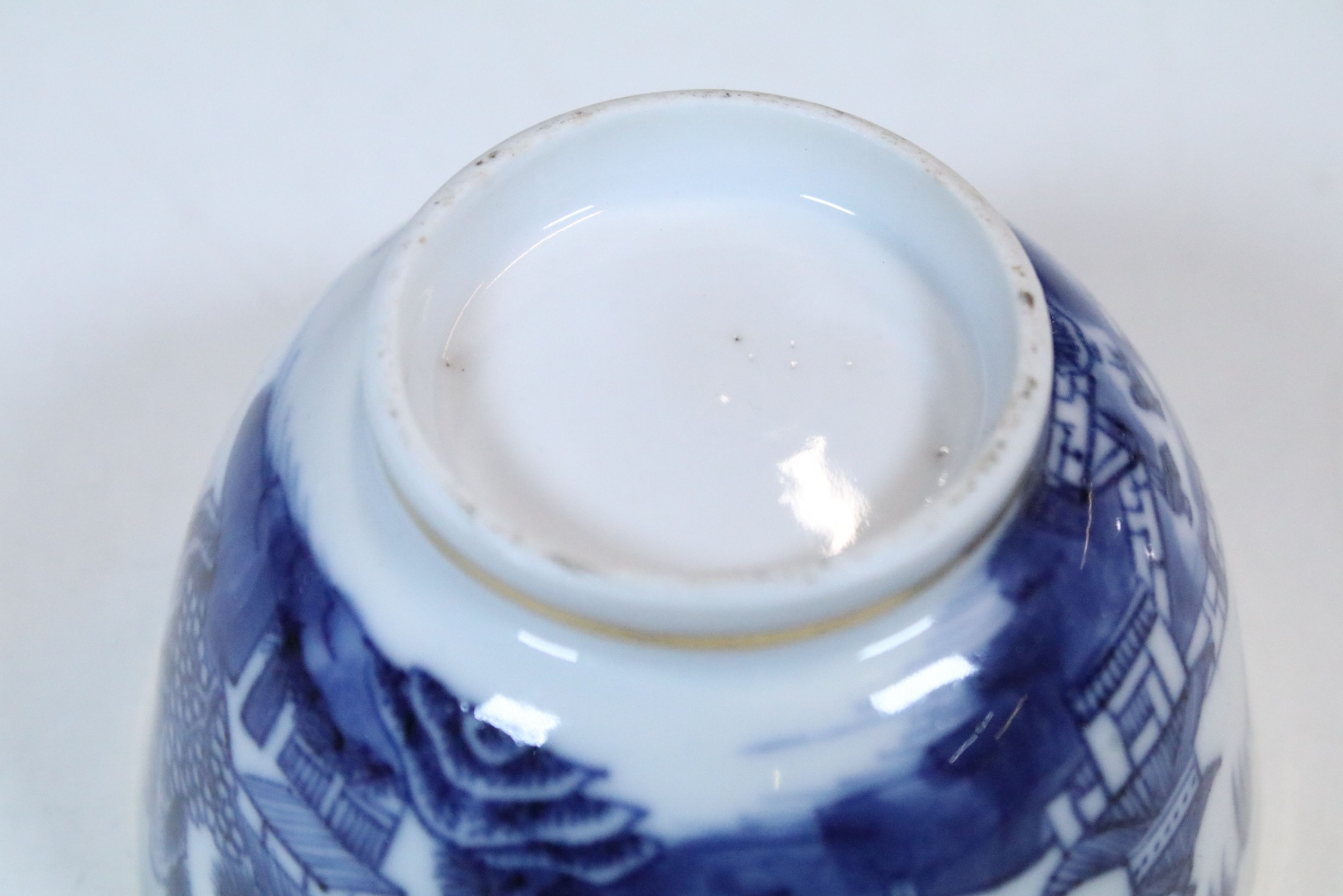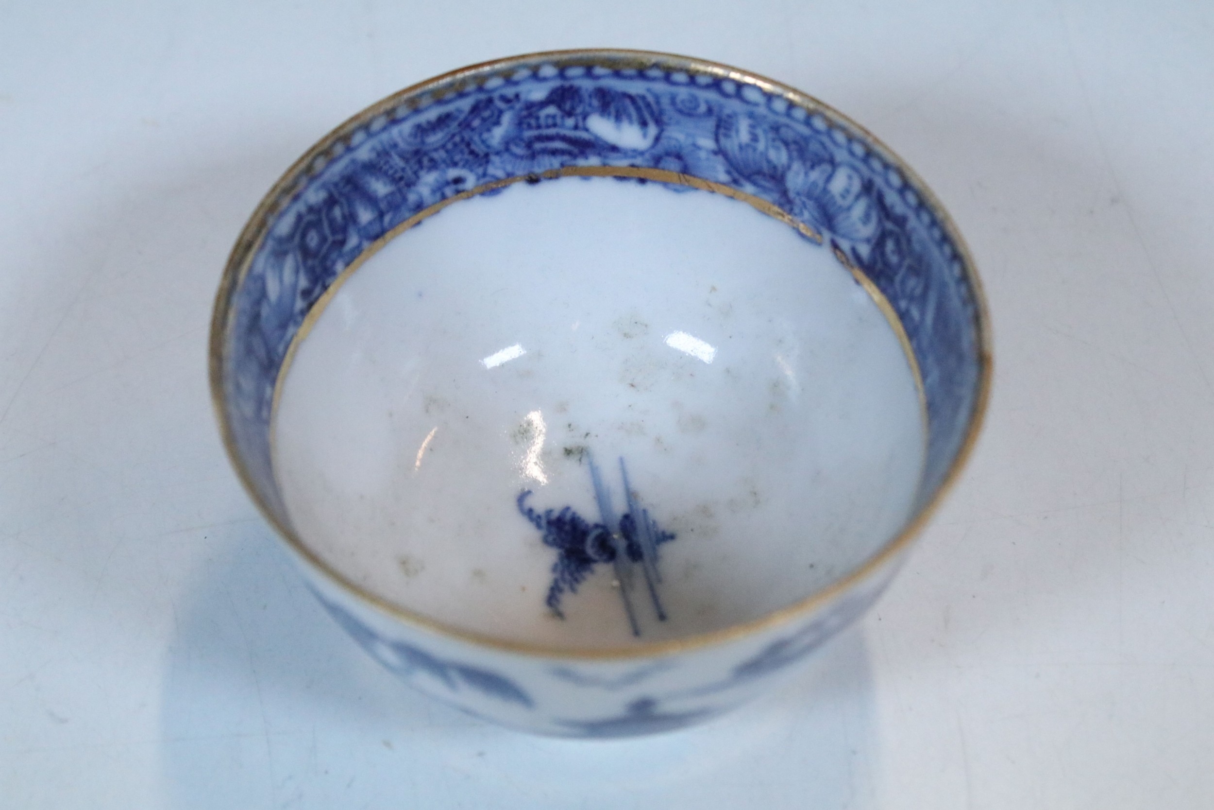 Pair of Chinese blue and white tea bowls and saucers, decorated finely with pagodas and willows, gilded to the rim, the saucer D 12.5cm (4)