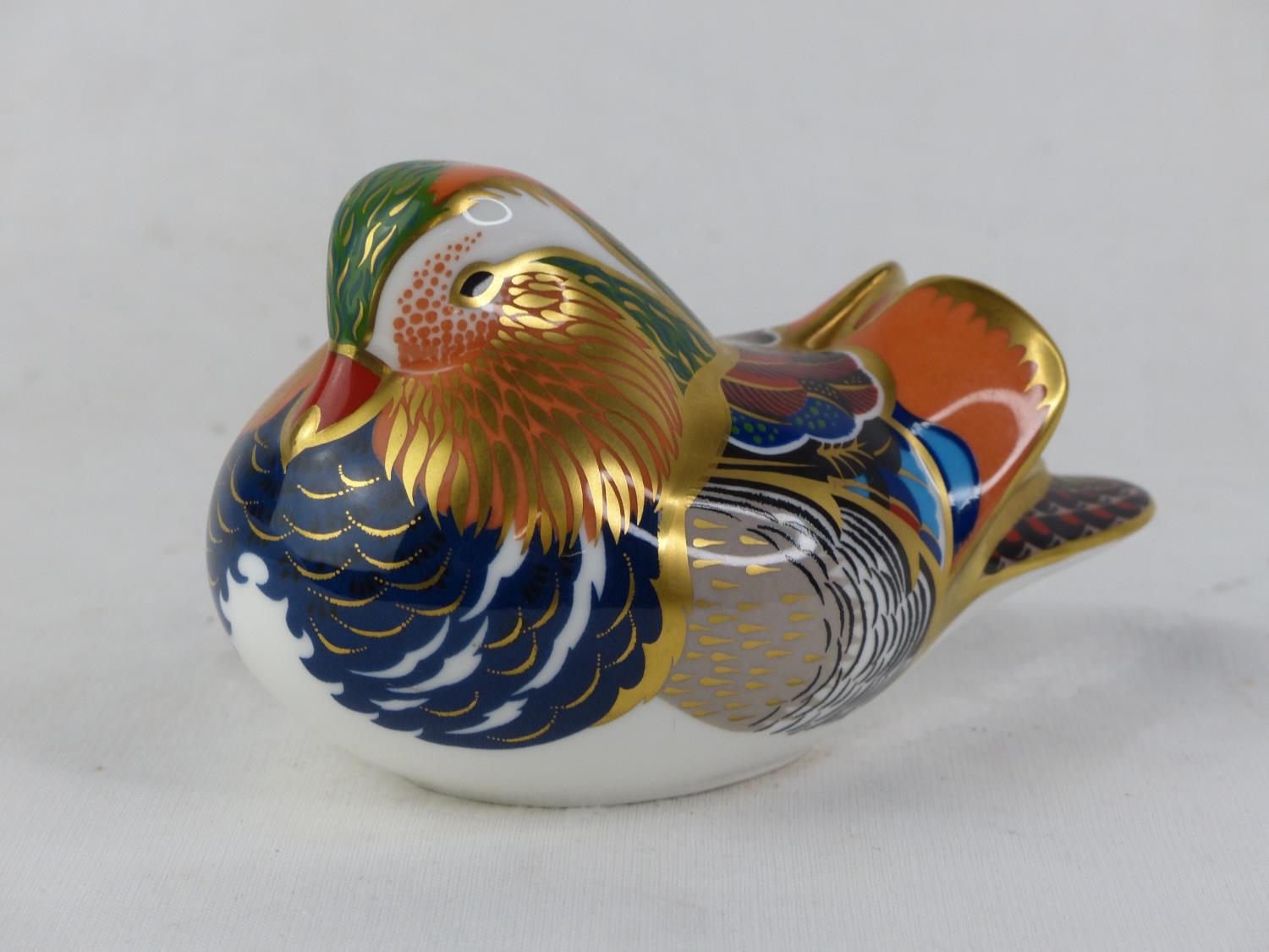 A Royal Crown Derby 'Mandarin Duck' paperweight, with silver stopper.