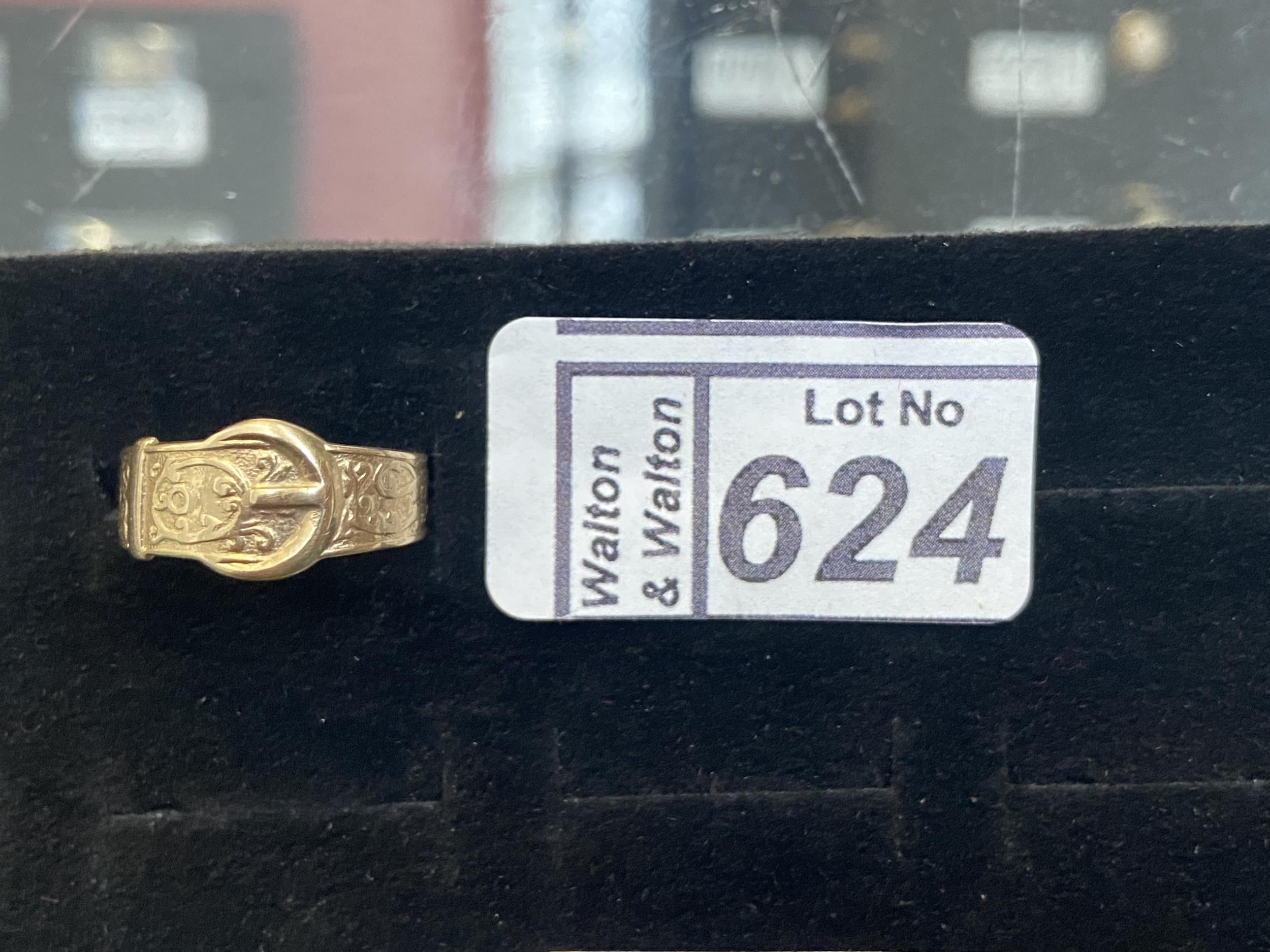 9ct Gold belt buckle ring, size P, over 3g - Only 10% buyer's premium
