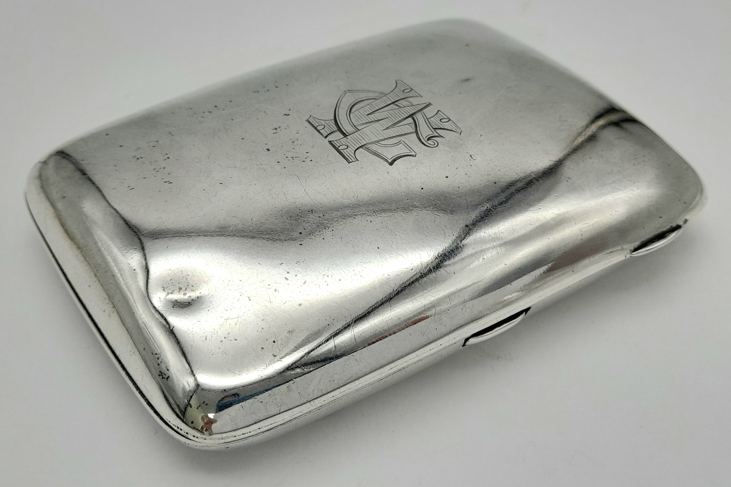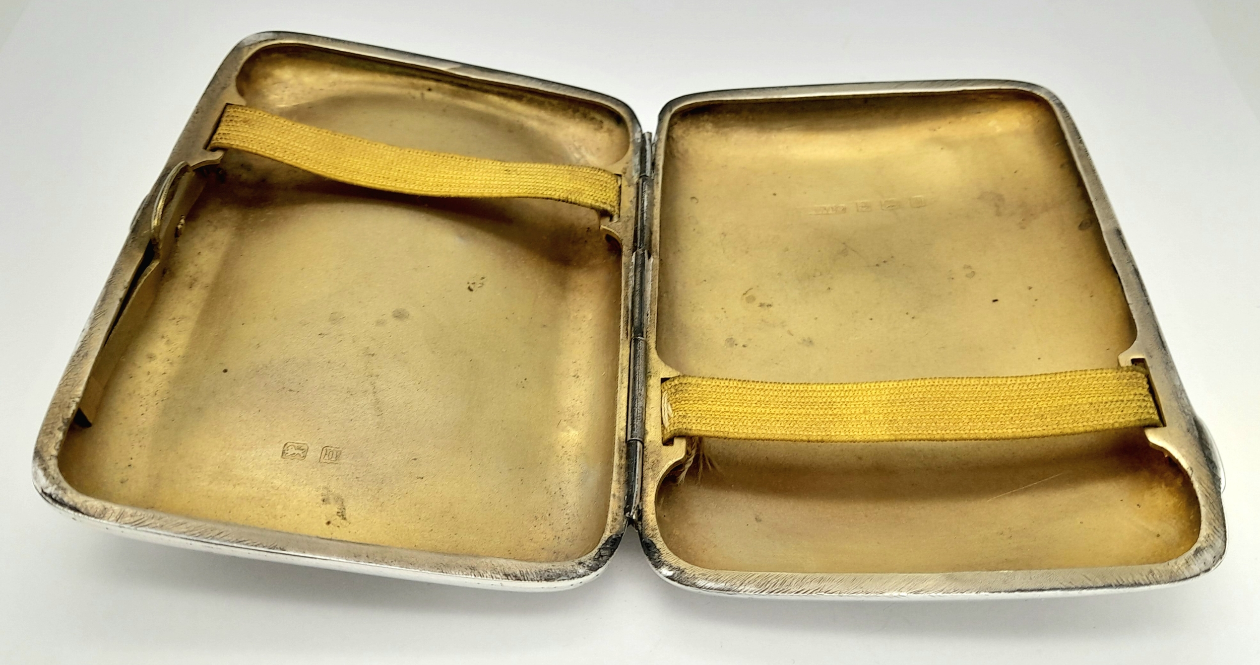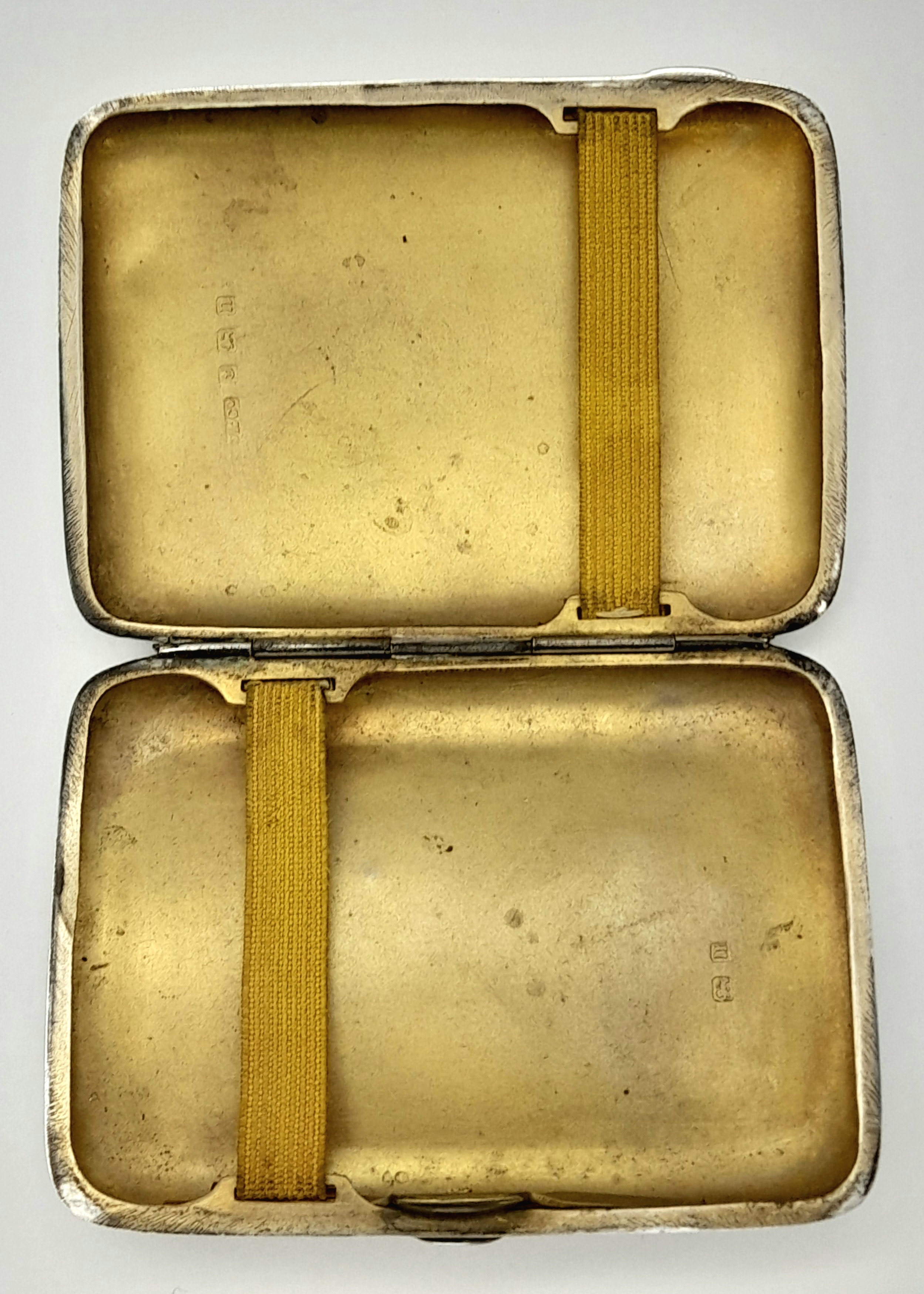 An antique sterling silver cigarette case. Full Birmingham hallmarks, 1912. Total weight 75.6G. 9.5 X 7.5 cm.