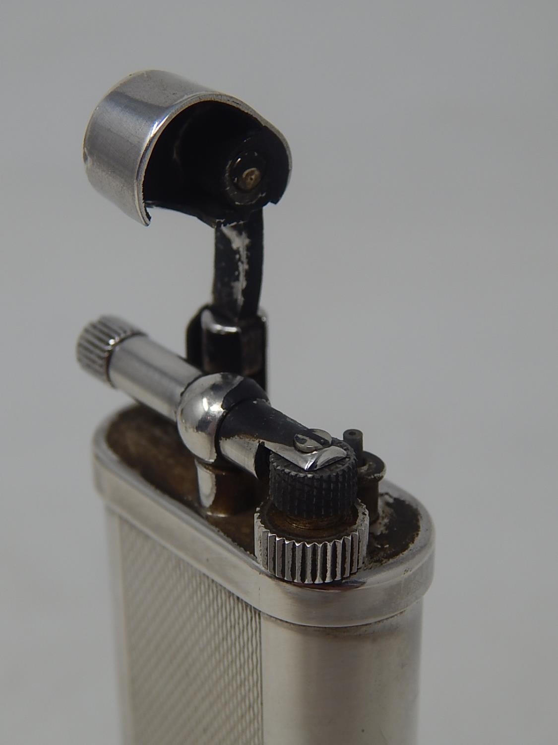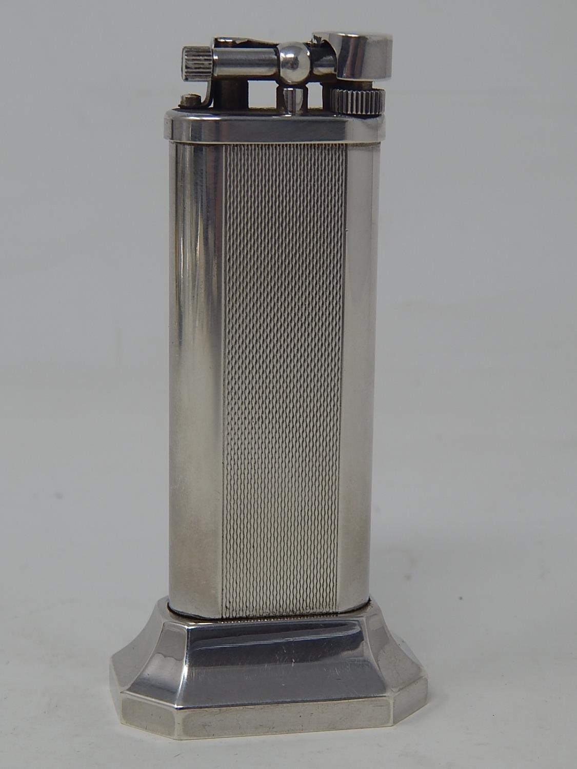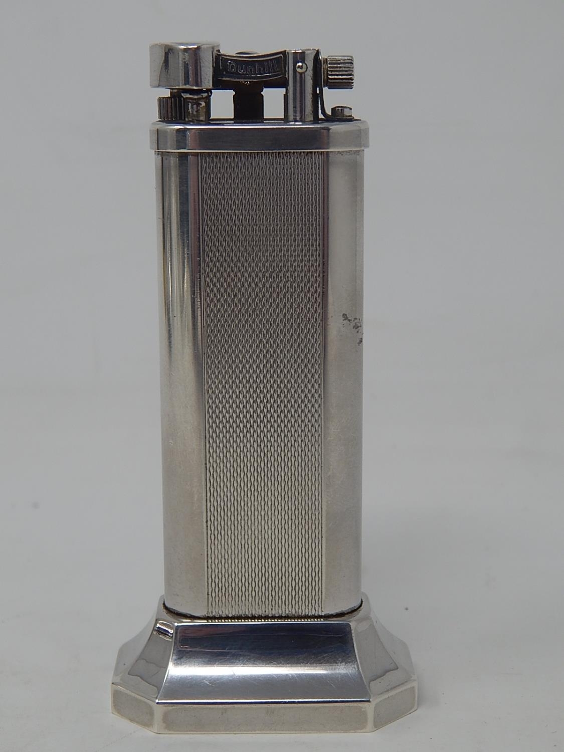 Dunhill Silver Plated Desk Lighter. Measures 15cm high: From a Private Collection.