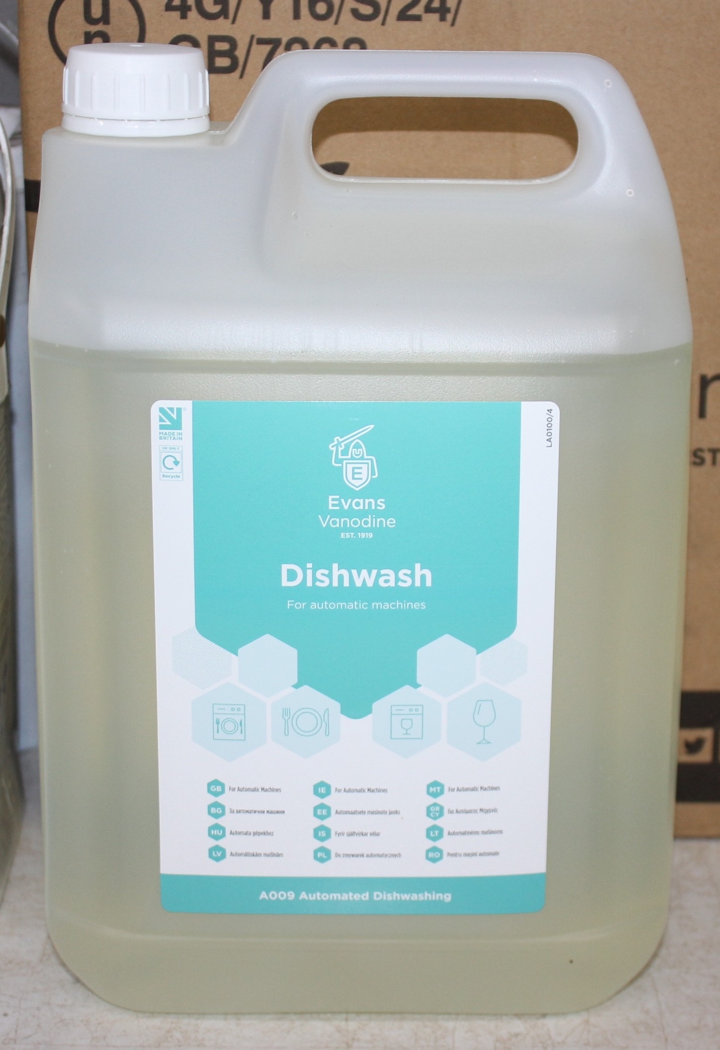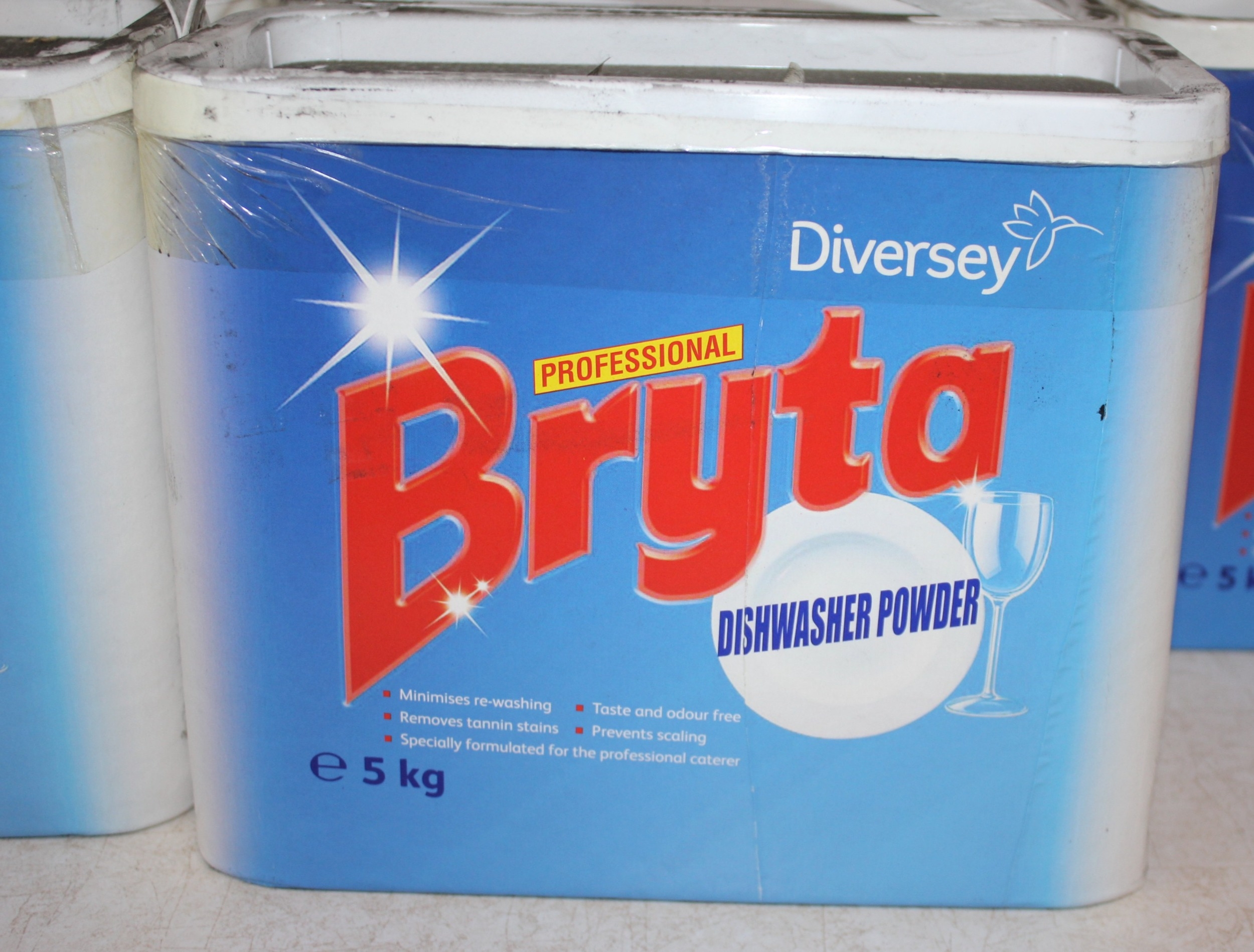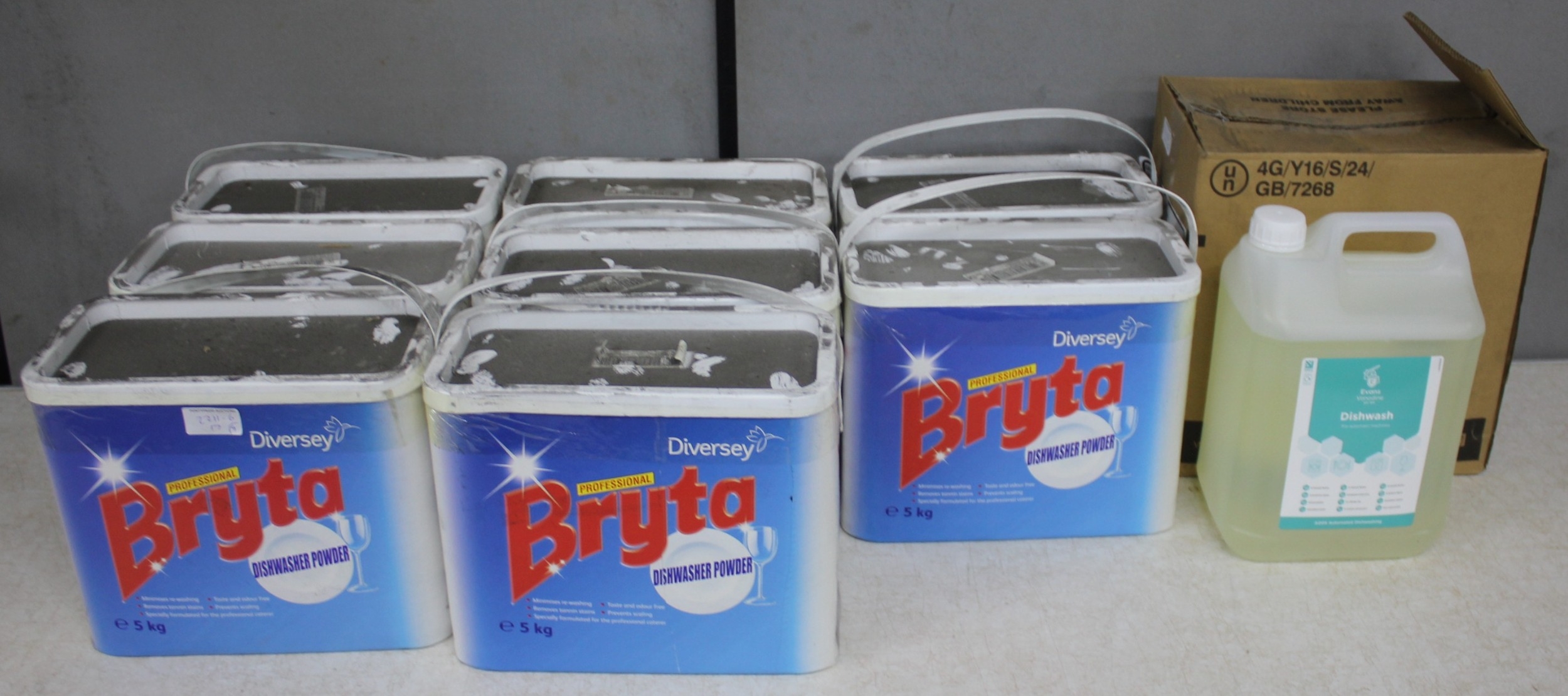 8 x 5K DIVERSEY BRYTA DISHWASHER POWDER AND 2 x 5L EVANS VANODINE DISHWASH