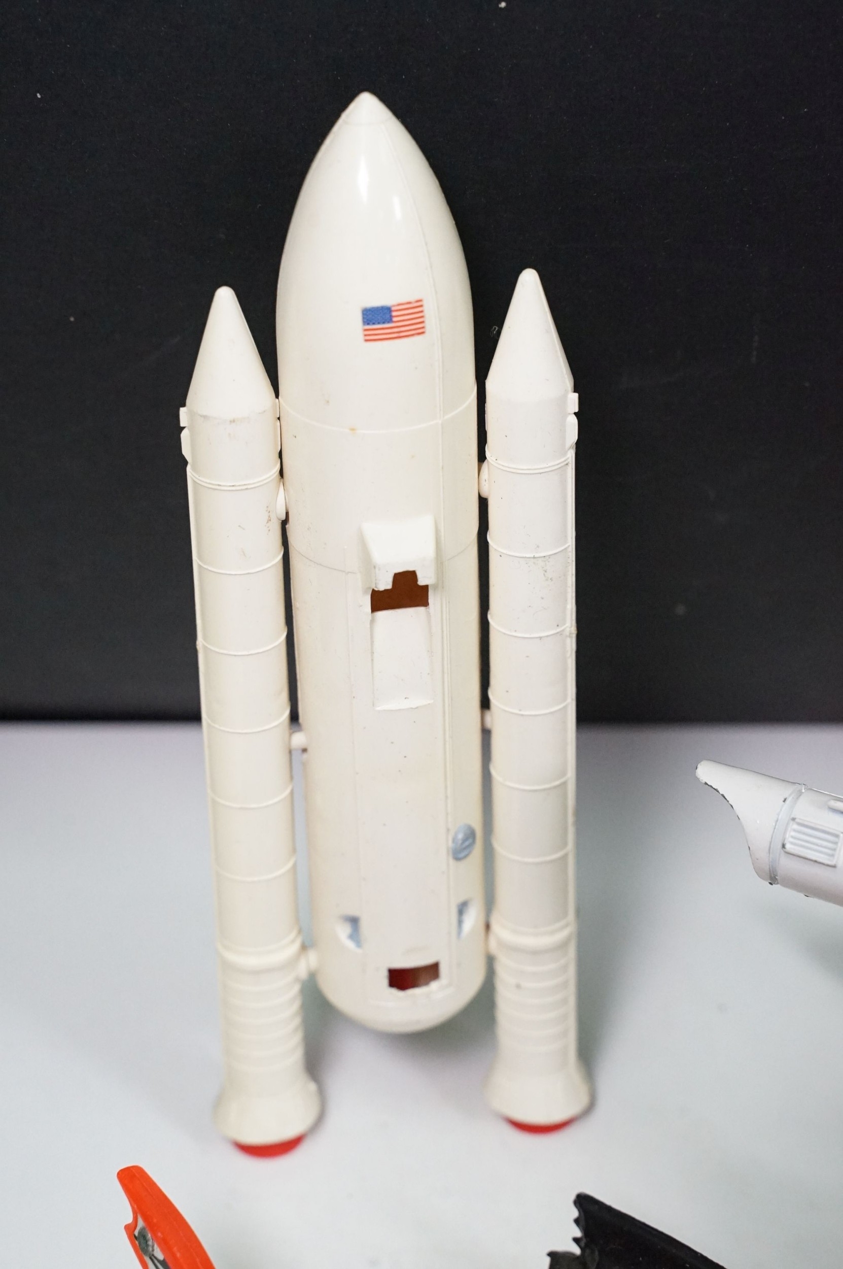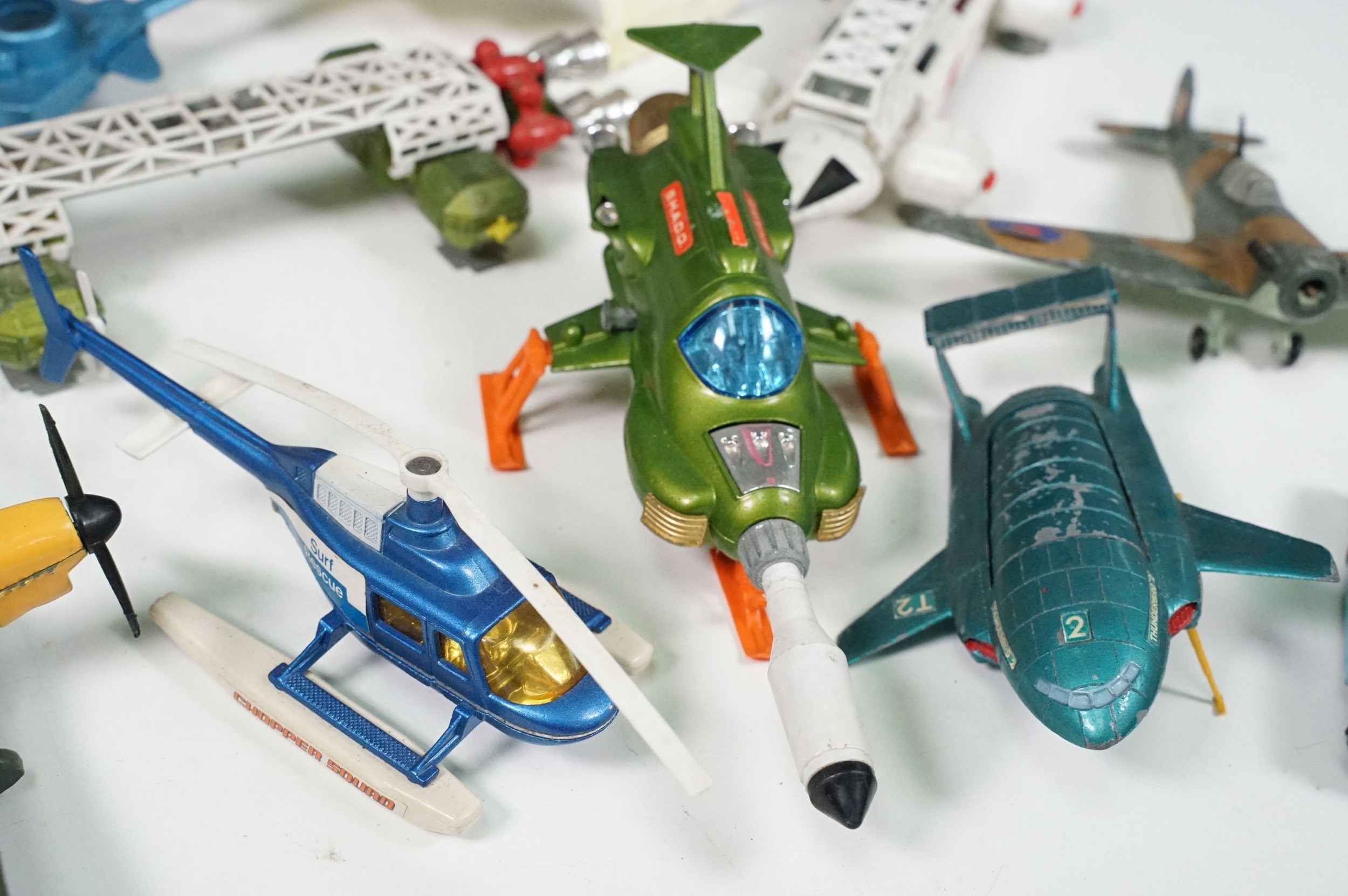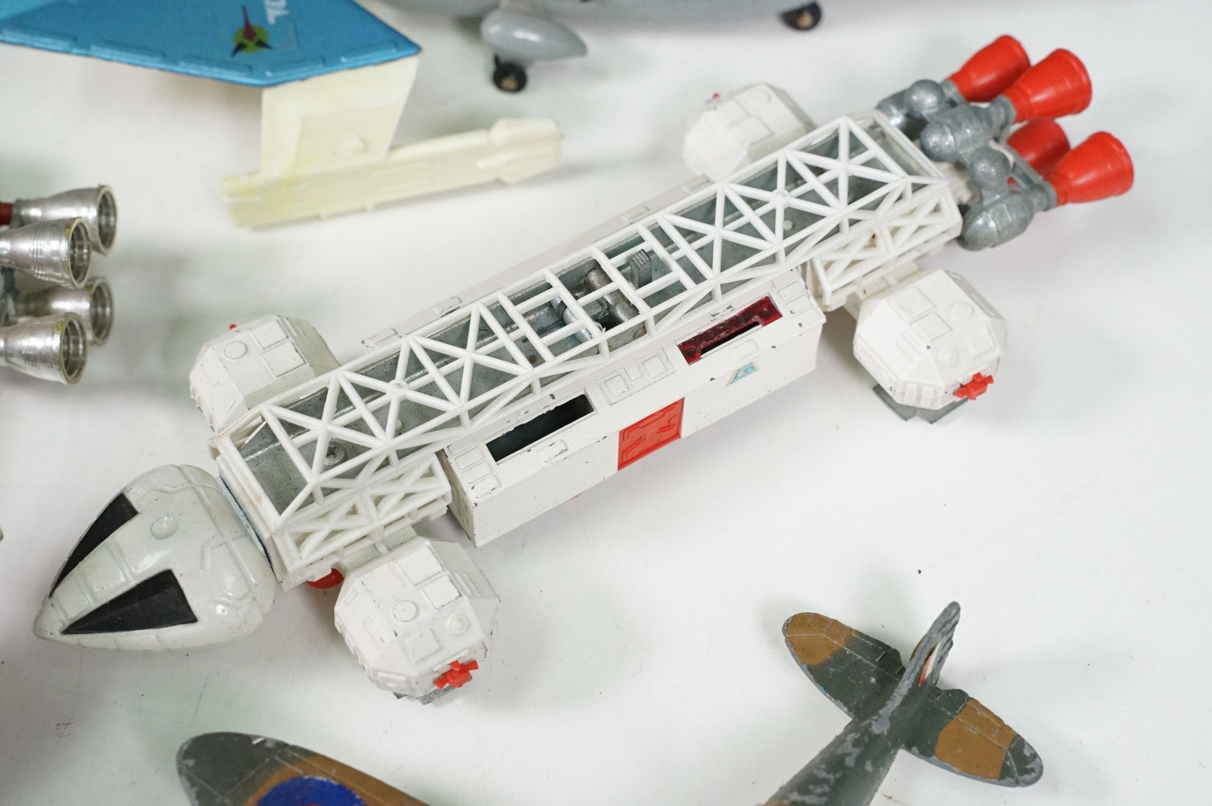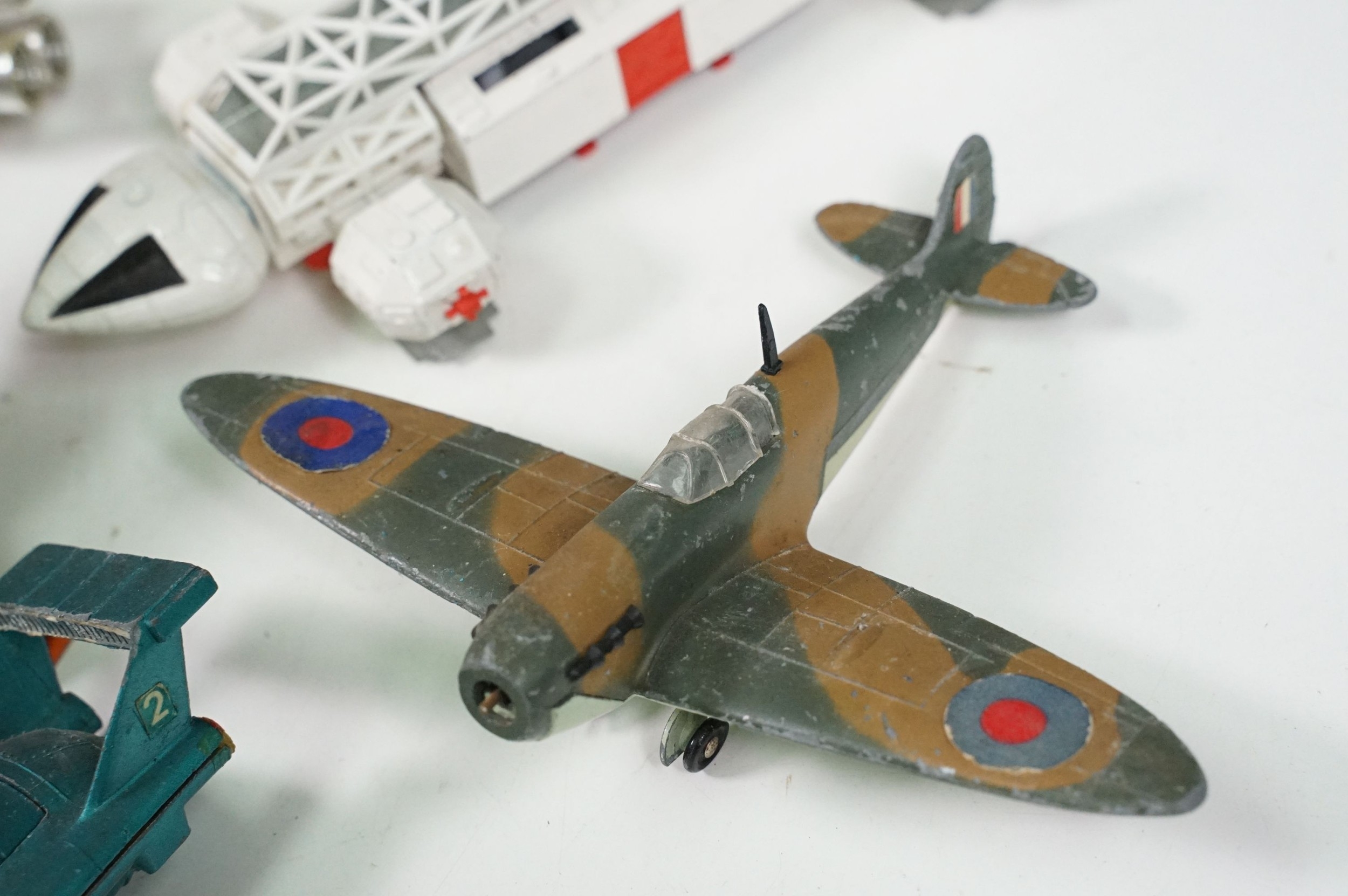 20 Mid 20th C playworn diecast models to include mainly TV / Film related examples featuring Corgi and Dinky including Corgi Batman Batmobile and Batboat, Dinky Klingon Battle Cruiser, Dinky UFO SHADO 2, etc