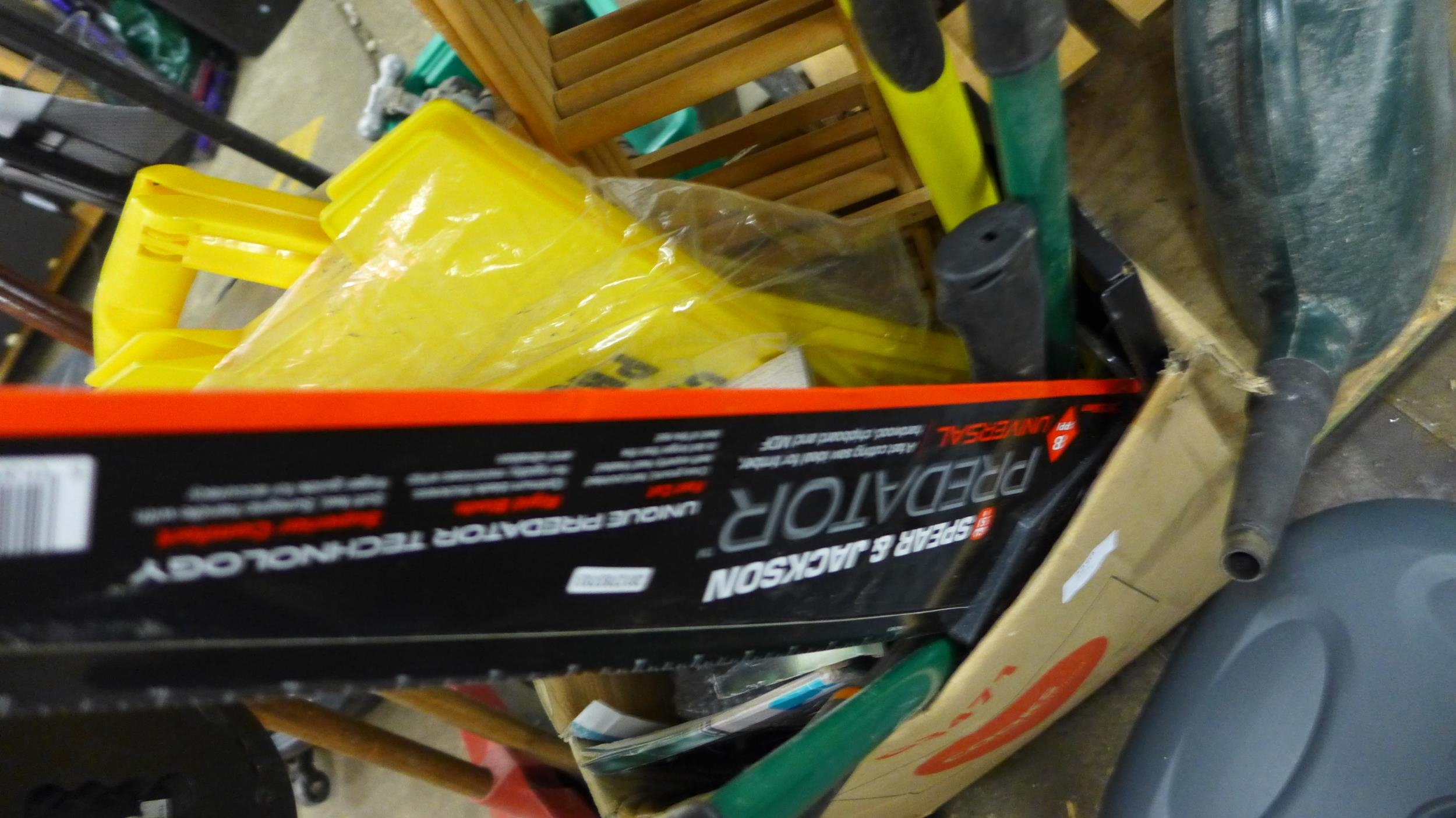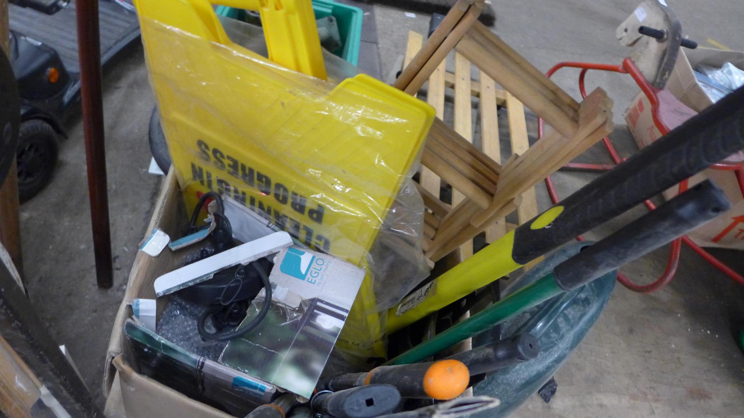 Parasol stand & qty. of garden tools